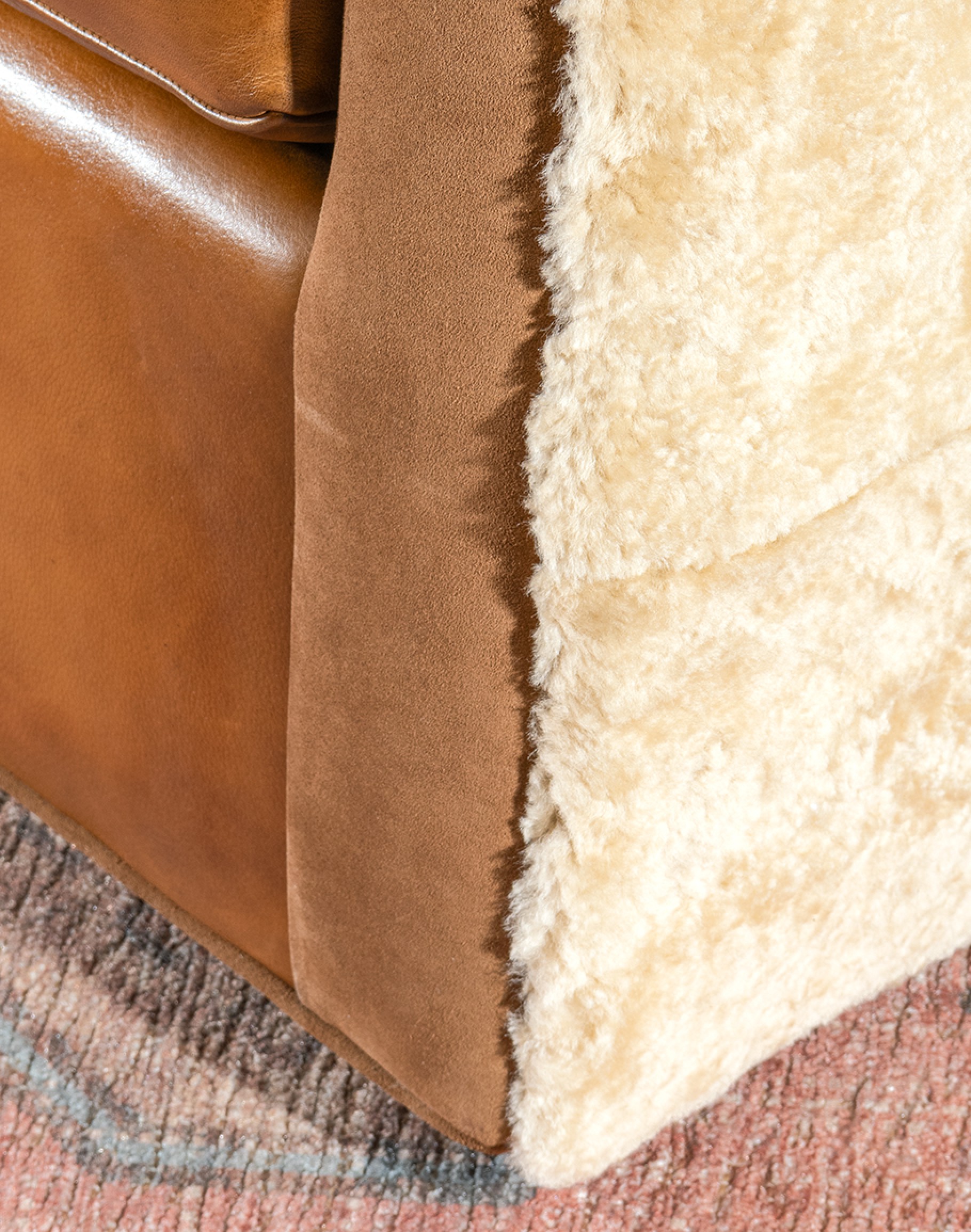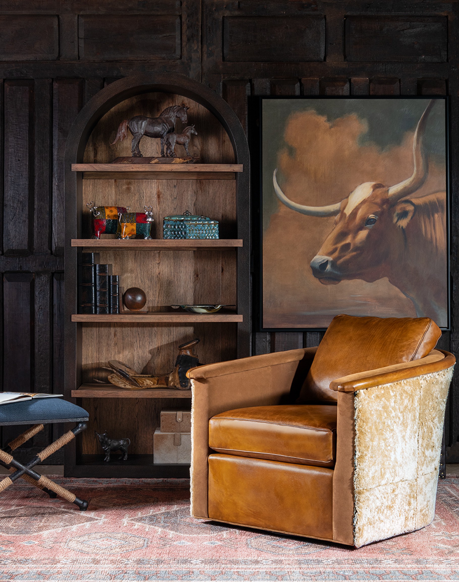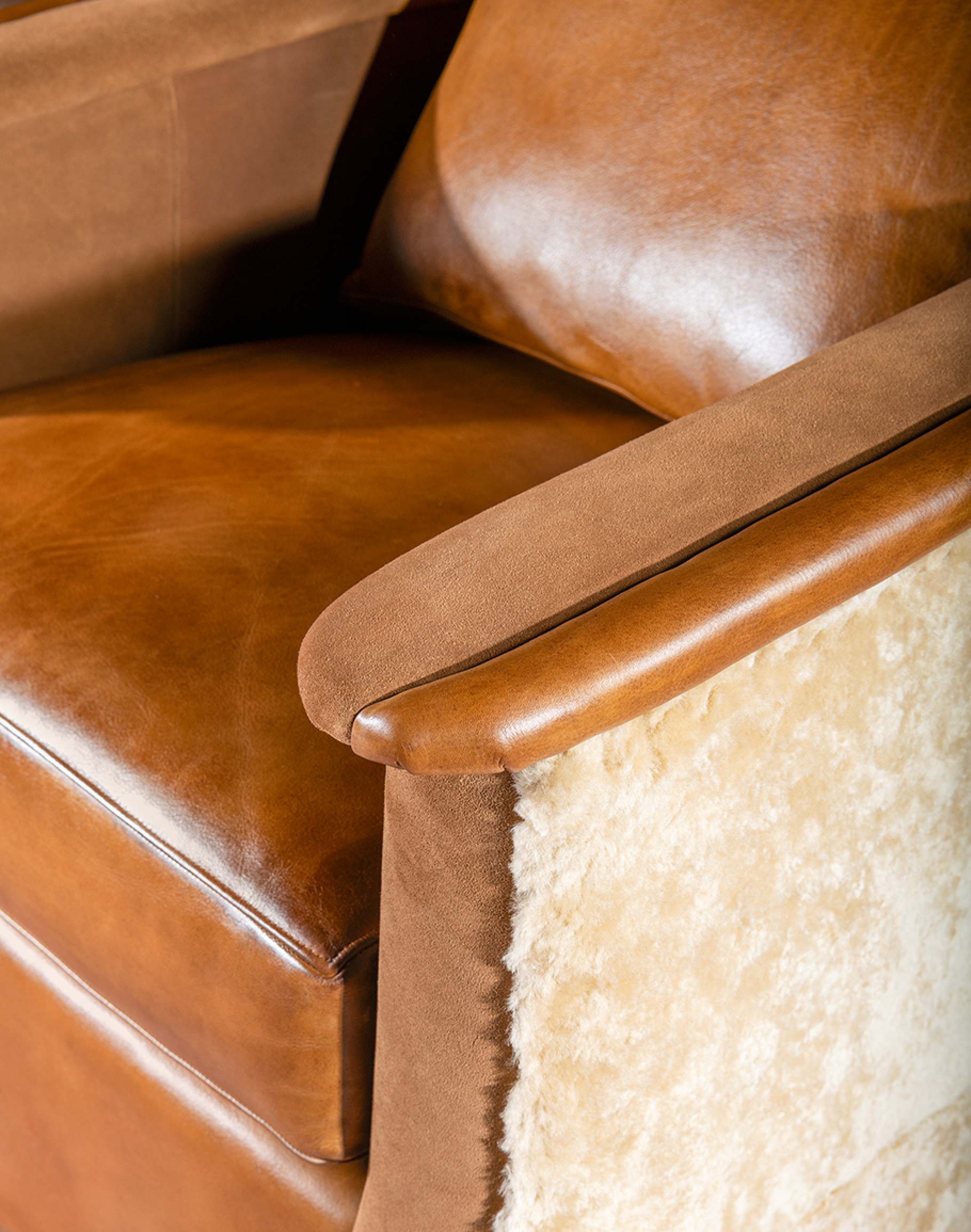 Shearling Hide Accents: What sets this chair apart is the authentic upholstery-grade shearling hide that wraps the exterior. This exquisite material not only adds a sumptuous touch but also creates a stunning visual contrast.