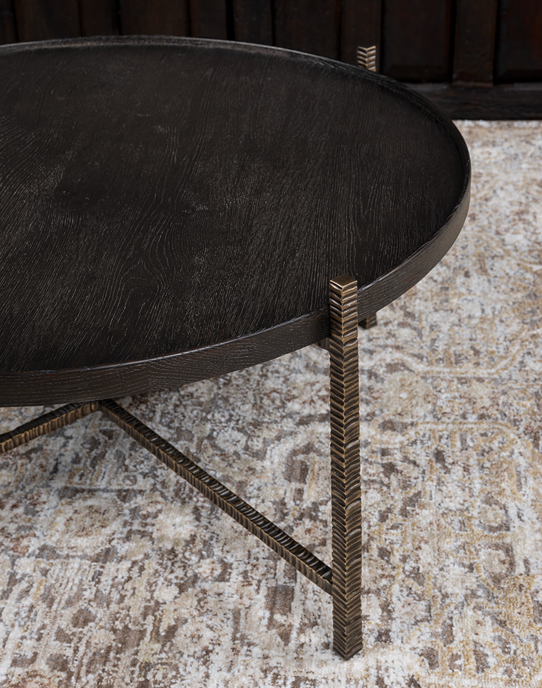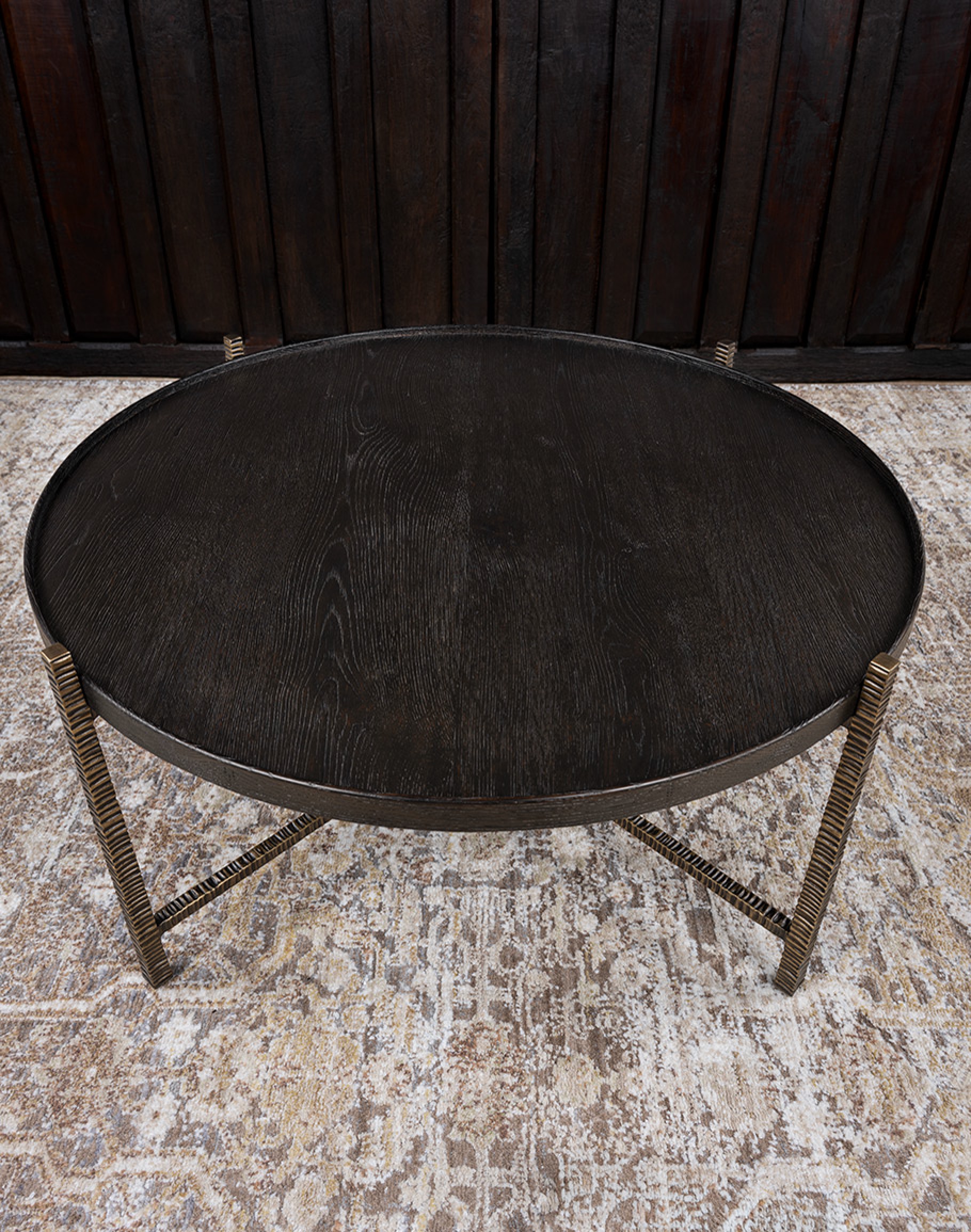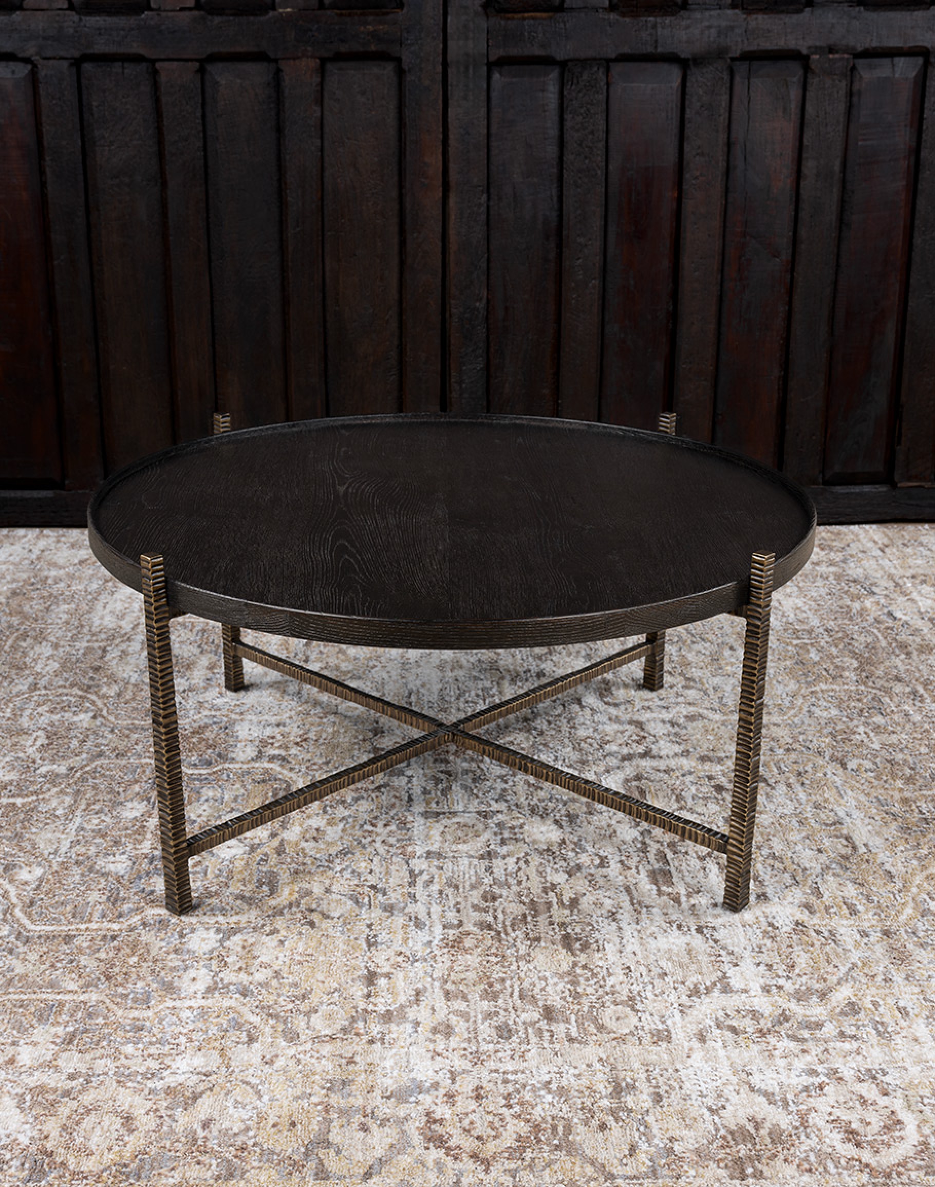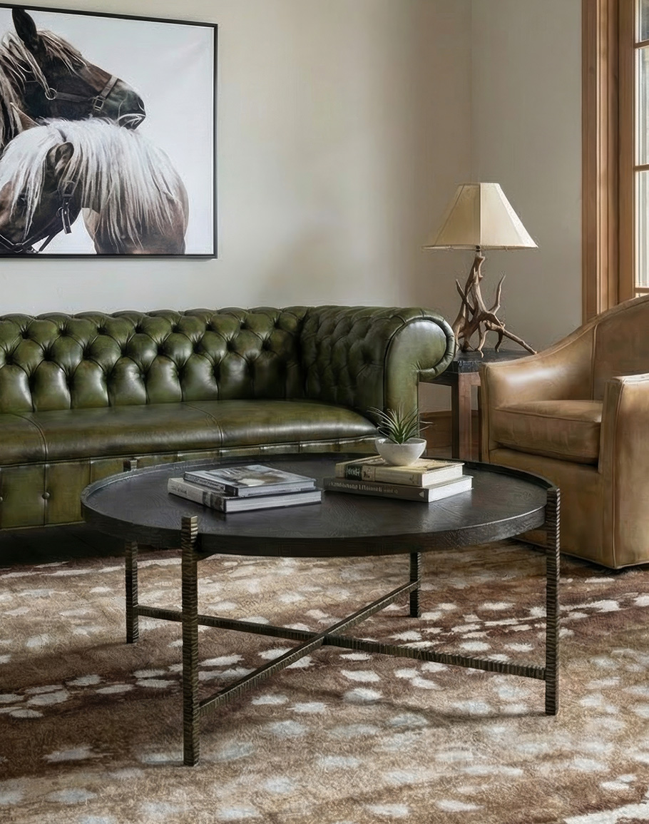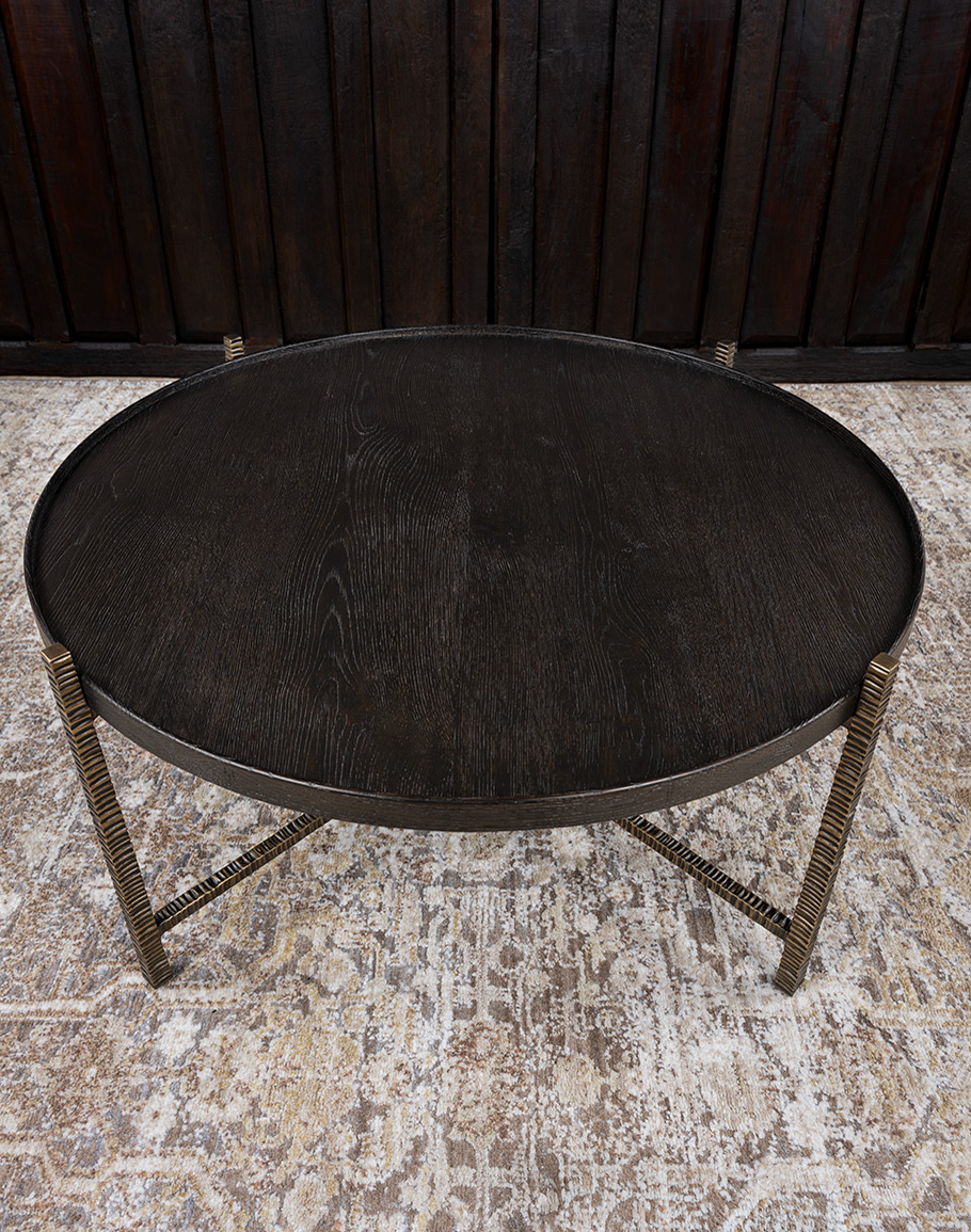 The interplay of materials—natural wood and sculpted metal—gives this cafe cocktail table a bold yet versatile character. Its clean round profile softens the strong metal lines, making it ideal for both contemporary and transitional interiors. At Adobe Interiors, we create the furniture, and you create the memories.