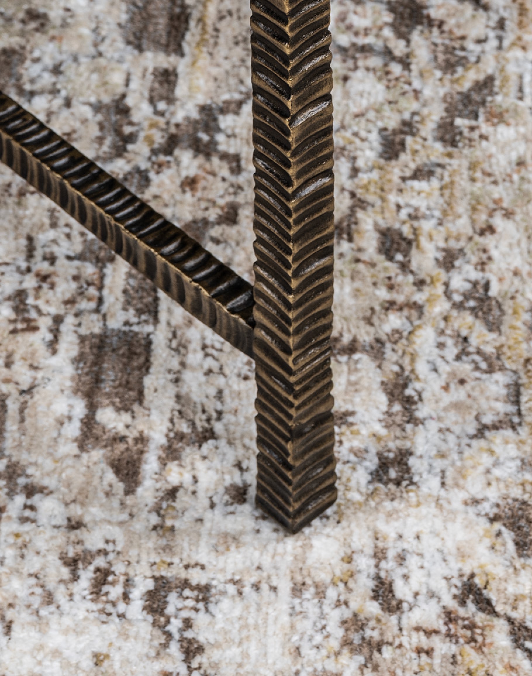Supported by a sculptural metal base, the Hudson Cafe table features graceful reverse-tapered legs that narrow toward the floor for a sleek, architectural presence. Each leg is finished with a distinctive stacked, linear chiseled texture, adding dimension and visual interest while elevating the overall craftsmanship. Beneath the top, a striking X-shaped crossbar stretcher reinforces the structure while enhancing the geometric balance of the design. The crossbar mirrors the textured detailing of the legs, creating a cohesive, thoughtfully executed base.