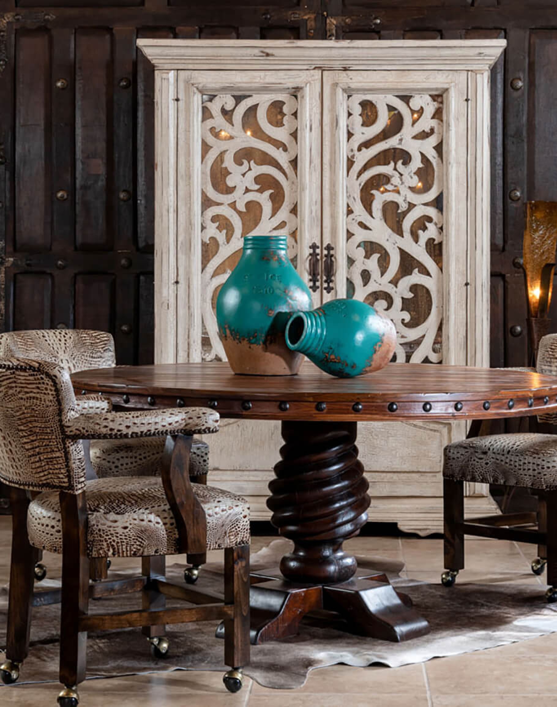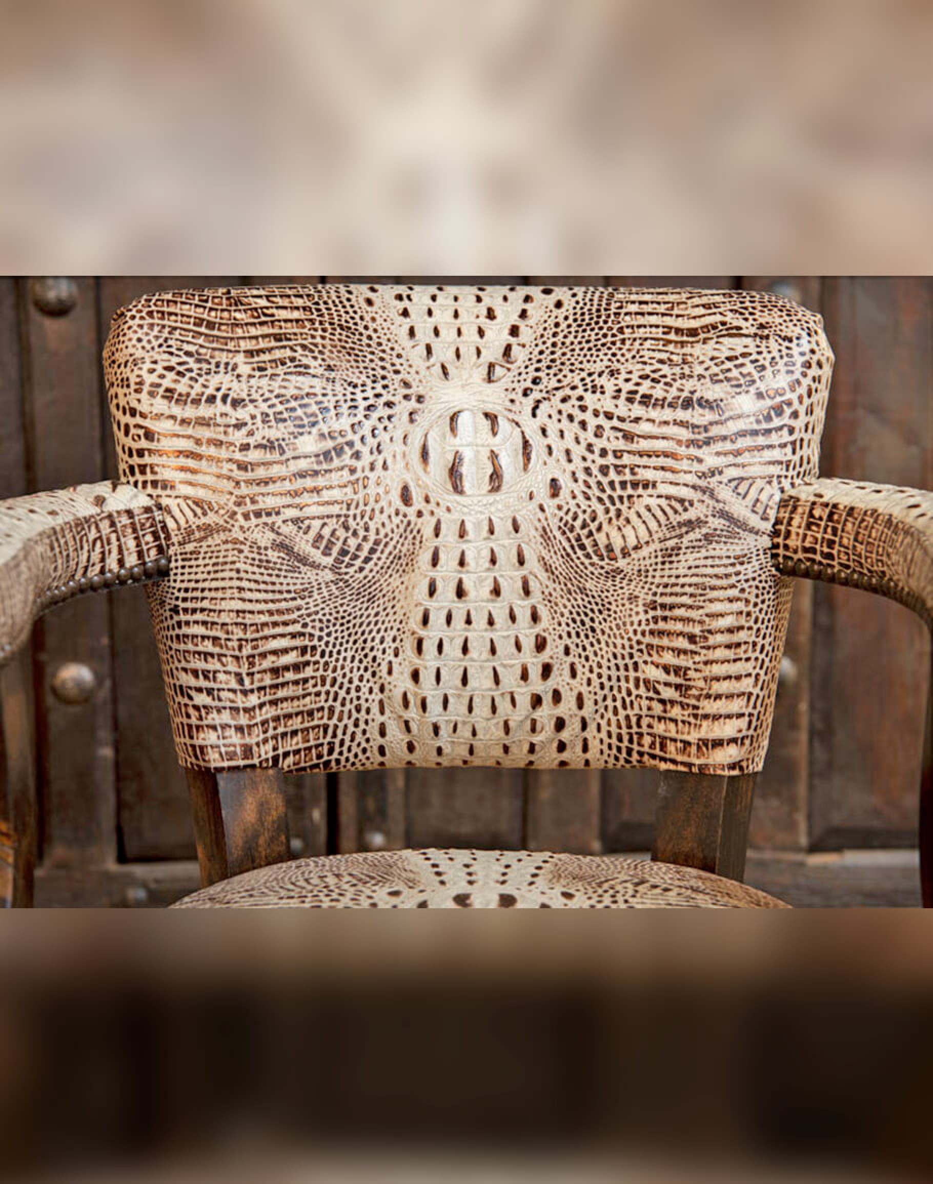 The Ivory Croc Castor Dining Chair is Hand Crafted in Texas with 100% top grain embossed leather. Solid Hardwood Frame with Premium High Density Foam Cushion Cores. Design by Adobe. Made in Texas!