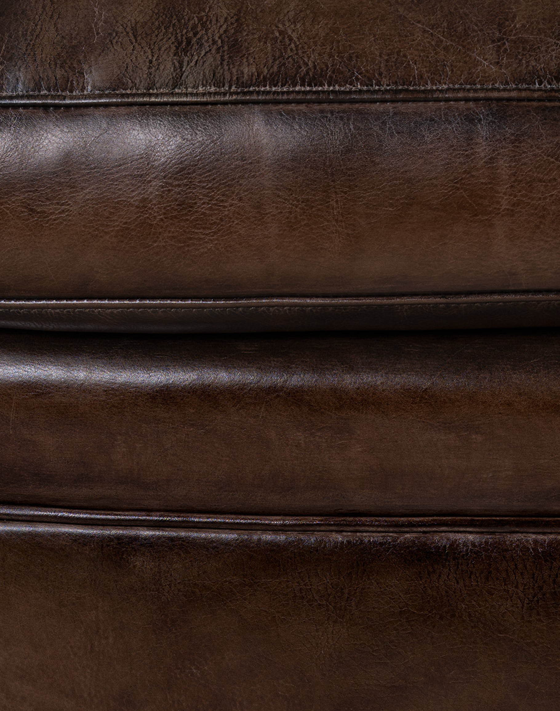 Leather Description: This is a full grain aniline leather tanned in a historic leather producing region of Italy using English hides. The century old tannery prepares this leather article by applying a hot wax, then turning the hides in old wooden tanning drums overnight to soften the natural fibers and impart it with a remarkable suppleness. The leather is then upholstered in its "crust form" on the furniture in North Carolina, After the furniture is made our leather artisans apply a multi step hand rubbed Patina using the same waxes and pigments used in Italy. Performing this process on the actual finished piece allows our artisans to develop a unique Patina, composition, and overall essence that creates a piece of furniture that has uniqueness, character and style that matches the individual who's selecting it. This leather imparts the feeling of a softer, well broken in leather one might find on a decades old chair discovered in a French country estate or the Parisian flea market. The leather is brand new from our Artisans hands... without the aging issues that sometimes come from the hands of time. Truly a unique, hand-made article in an era when only companies committed to the highest standards lavish this sort of attention and time to unique American made furniture.