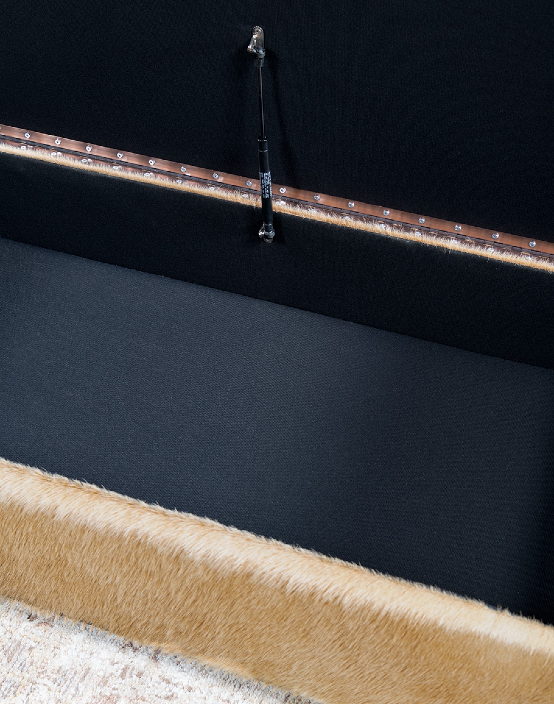 Beyond aesthetics, this ottoman is designed for seamless functionality—featuring a hydraulic lift-top storage compartment, providing effortless access to concealed storage while maintaining a sleek profile. The sturdy metal feet anchor the piece with a subtle yet bold presence, complementing its overall aesthetic. At Adobe Interiors, we create the furniture, and you create the memories.