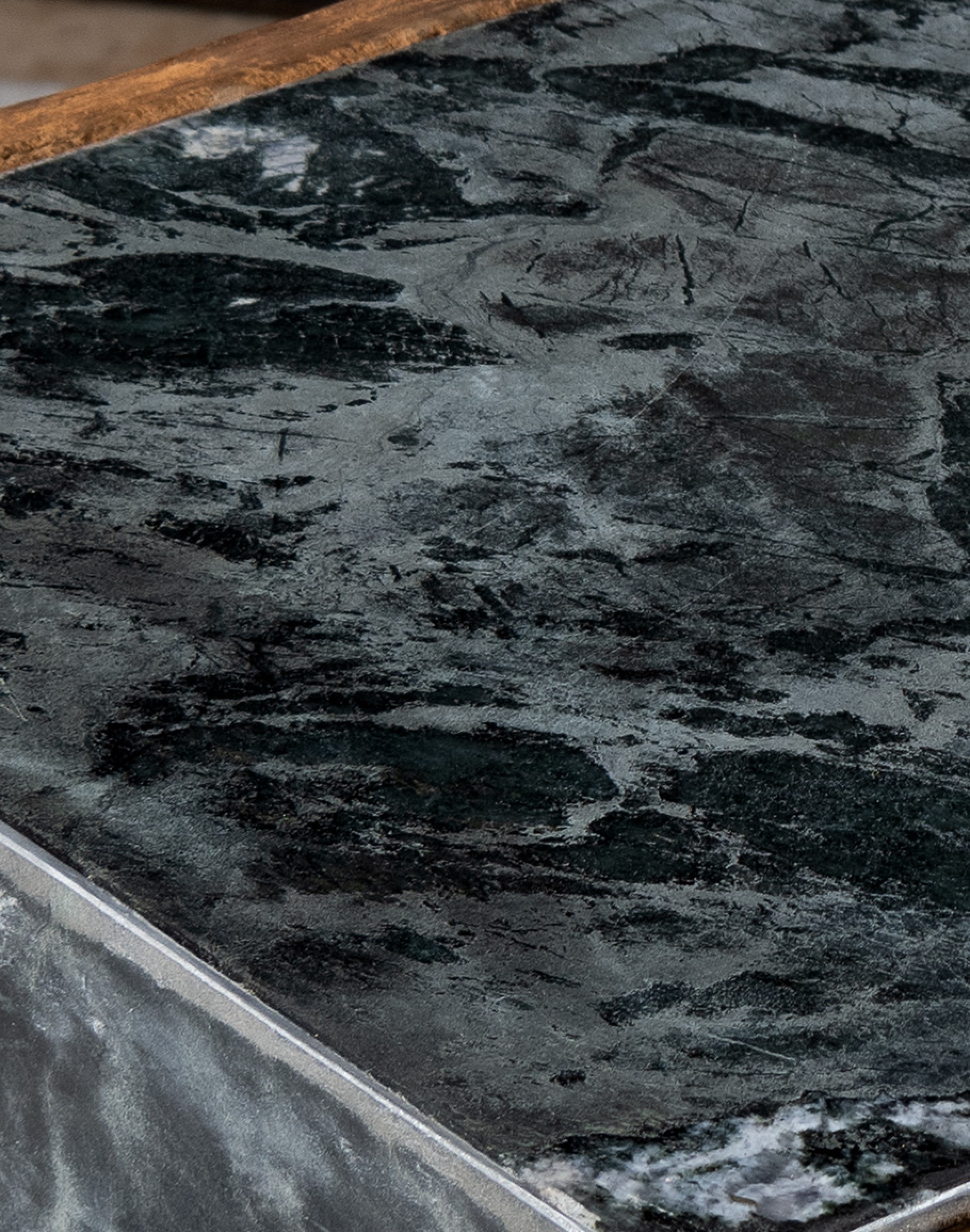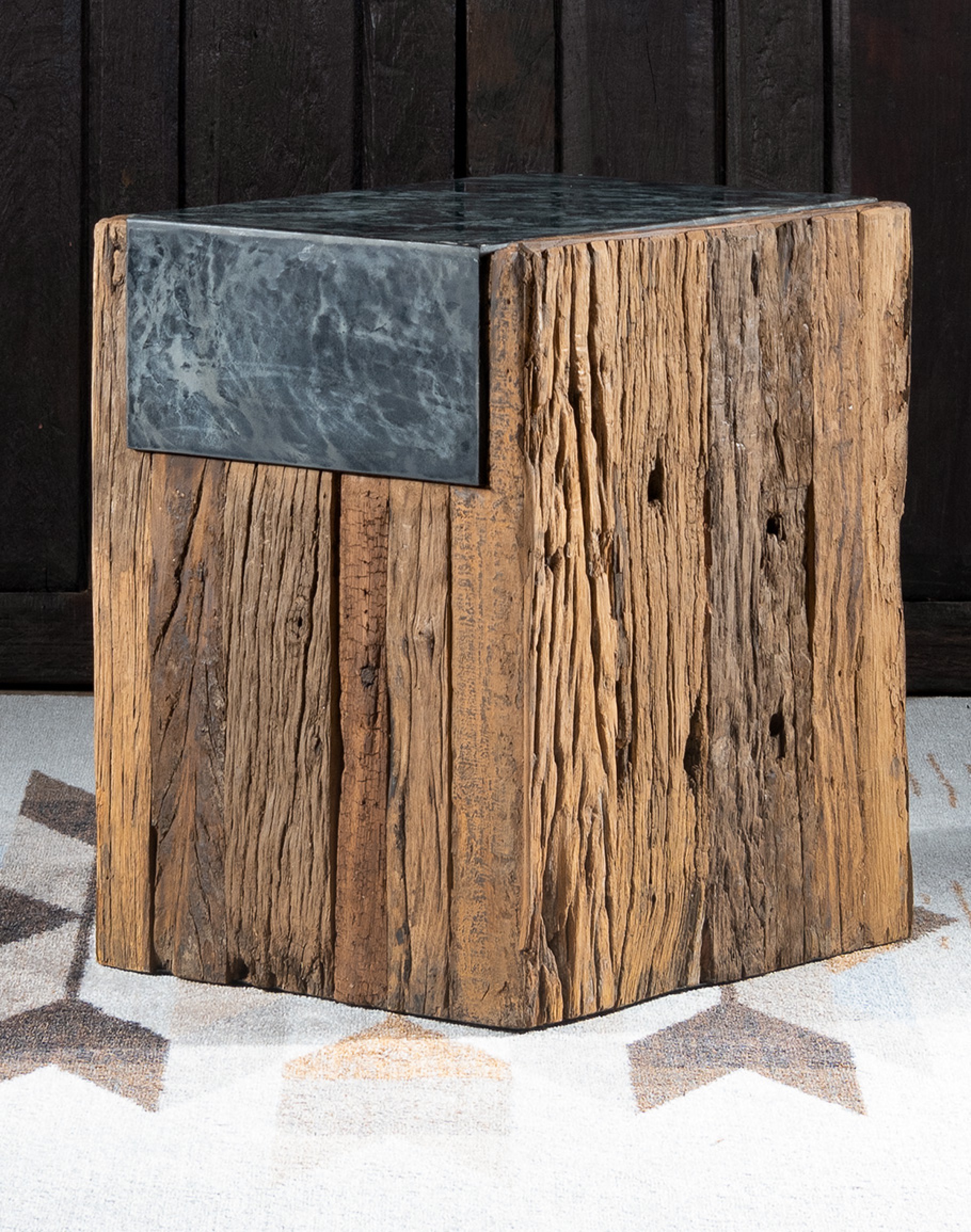 Experience the perfect blend of rustic and refined styling with the Tennessee Side Table. Crafted from high-quality reclaimed pine in a natural stain finish, this stunning piece features a honed black marble top. Each table boasts unique marbling and veining throughout, as well as rustic signs of past wood usage, adding to its character-rich appeal. Whether you're looking to elevate your living space or add a touch of nature-inspired charm to your decor, the Tennessee Side Table is the perfect choice. Shop now and add a touch of rustic elegance to your home.