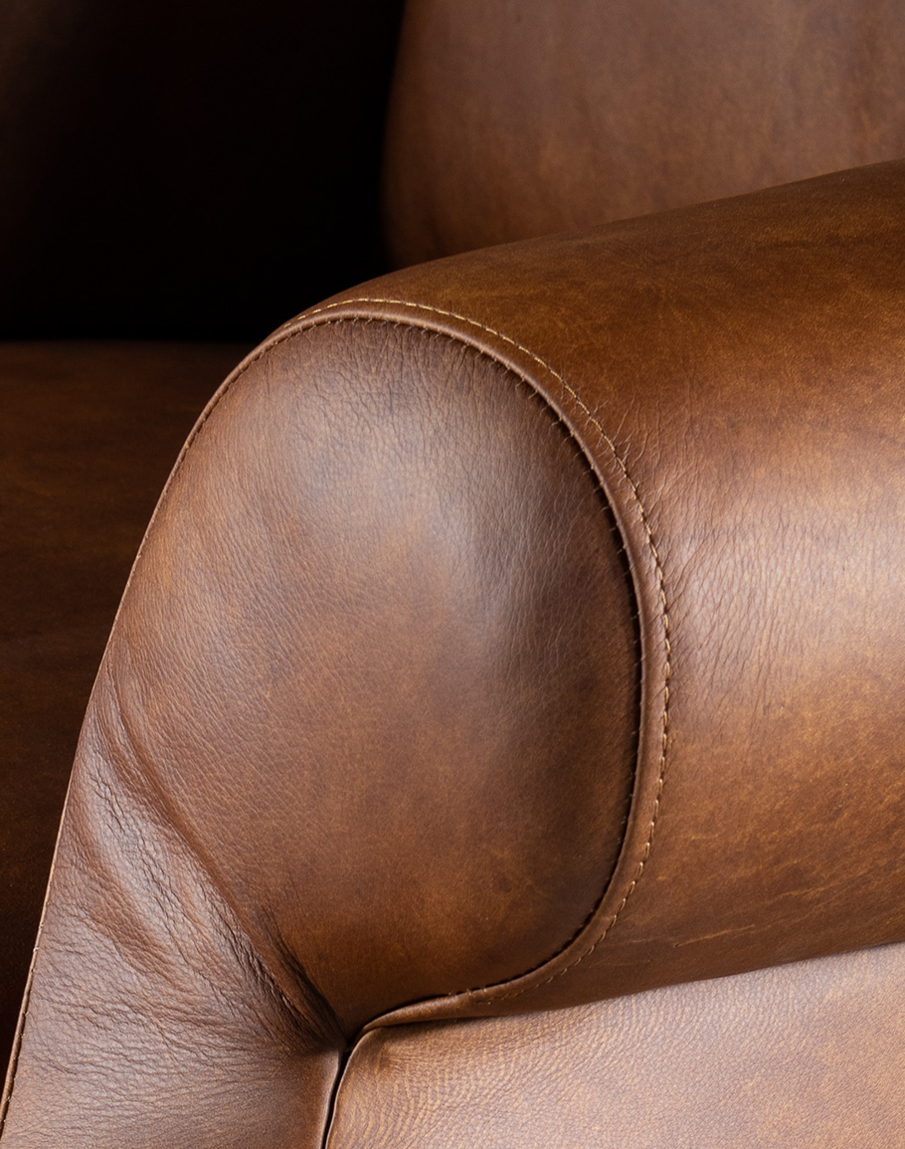 Leather Description: Like that dusty cowboy boot leather, which never goes out of style defines this leather. Hand sanded by leather craftsmen to give you a random two tone effect, but able to withstand heavy use! This Leather is all about giving you the distressed look and softness with all the stain protection and wear ability of a protected leather. This unique look is taken from the distressed cowboy boot leather, but is hand finished to perform. Tanned in Italy.