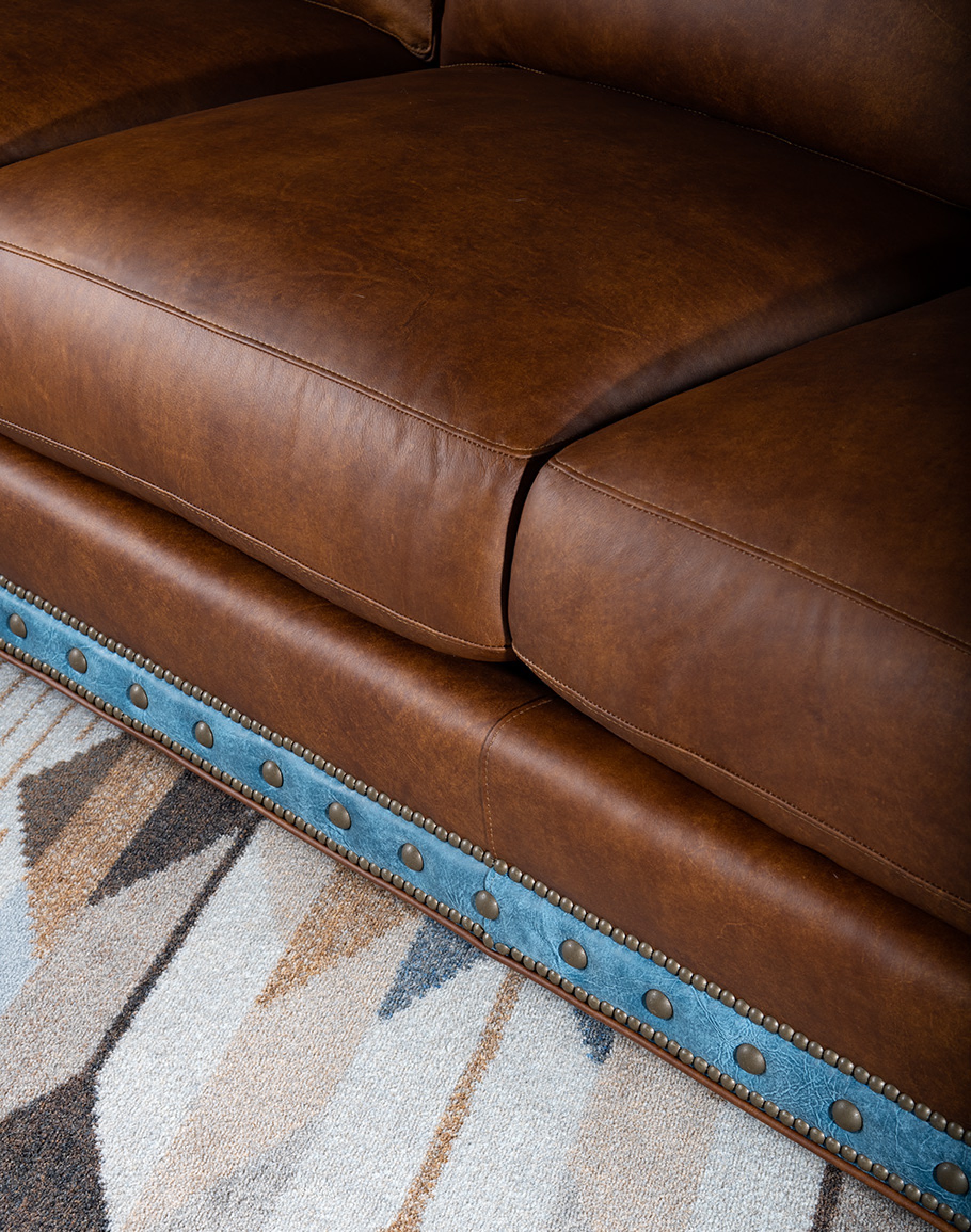 Looking for a premium leather sofa that's 100% American made and built to last? Look no further than our Keystone Leather Sofa. Featuring 8-way hand-tied construction and removable seat cushions, this sofa is the epitome of luxury and comfort. With its hand-sanded Italian leather and denim blue accents, it's a stylish addition to any living room, study, or office. Plus, because we use only all-natural leather, each piece is truly one of a kind. Whether you're curling up with a book or entertaining guests, this modern yet rustic sofa is the perfect choice. Invest in a piece that will only get better with age - choose our Keystone Leather Sofa today.