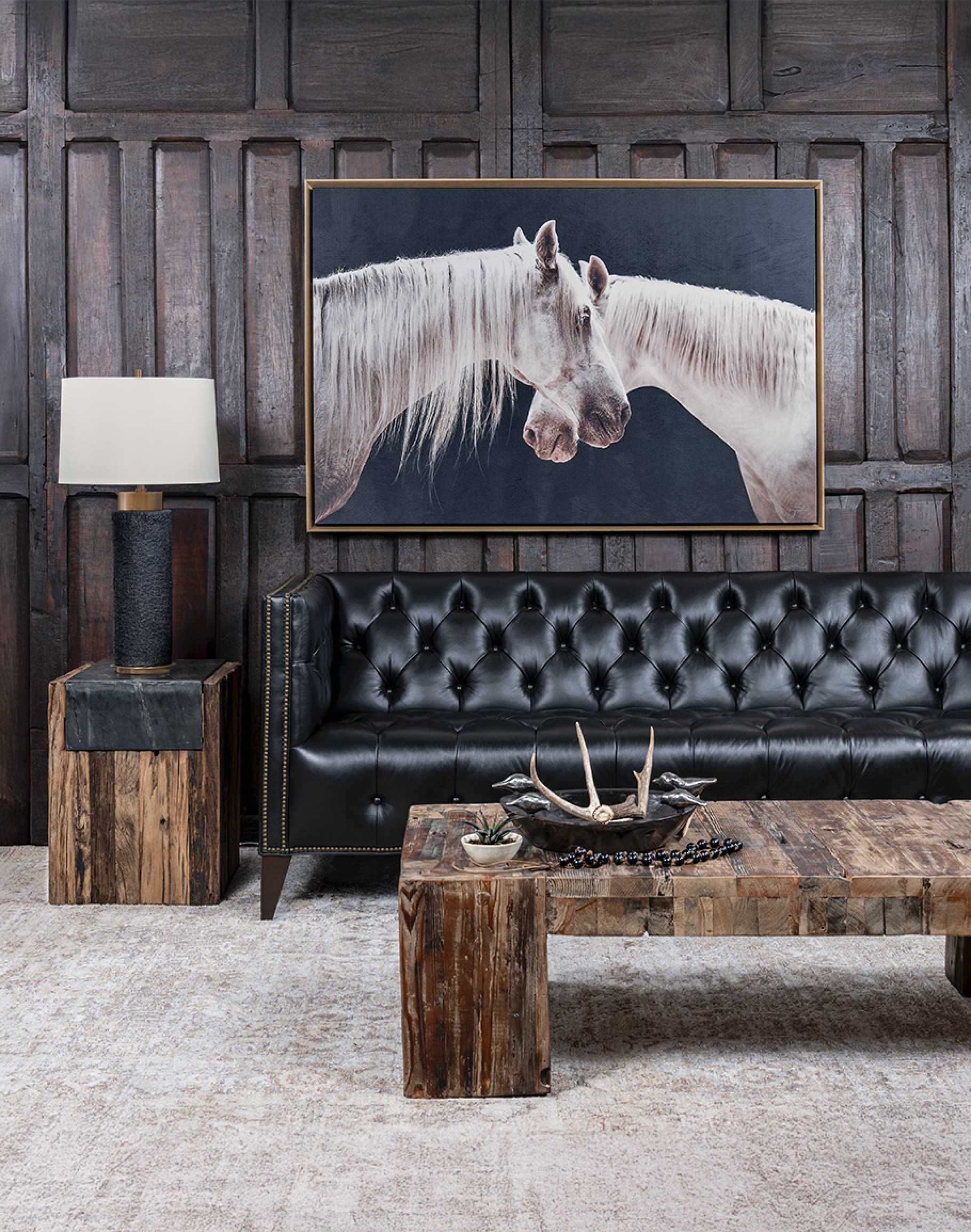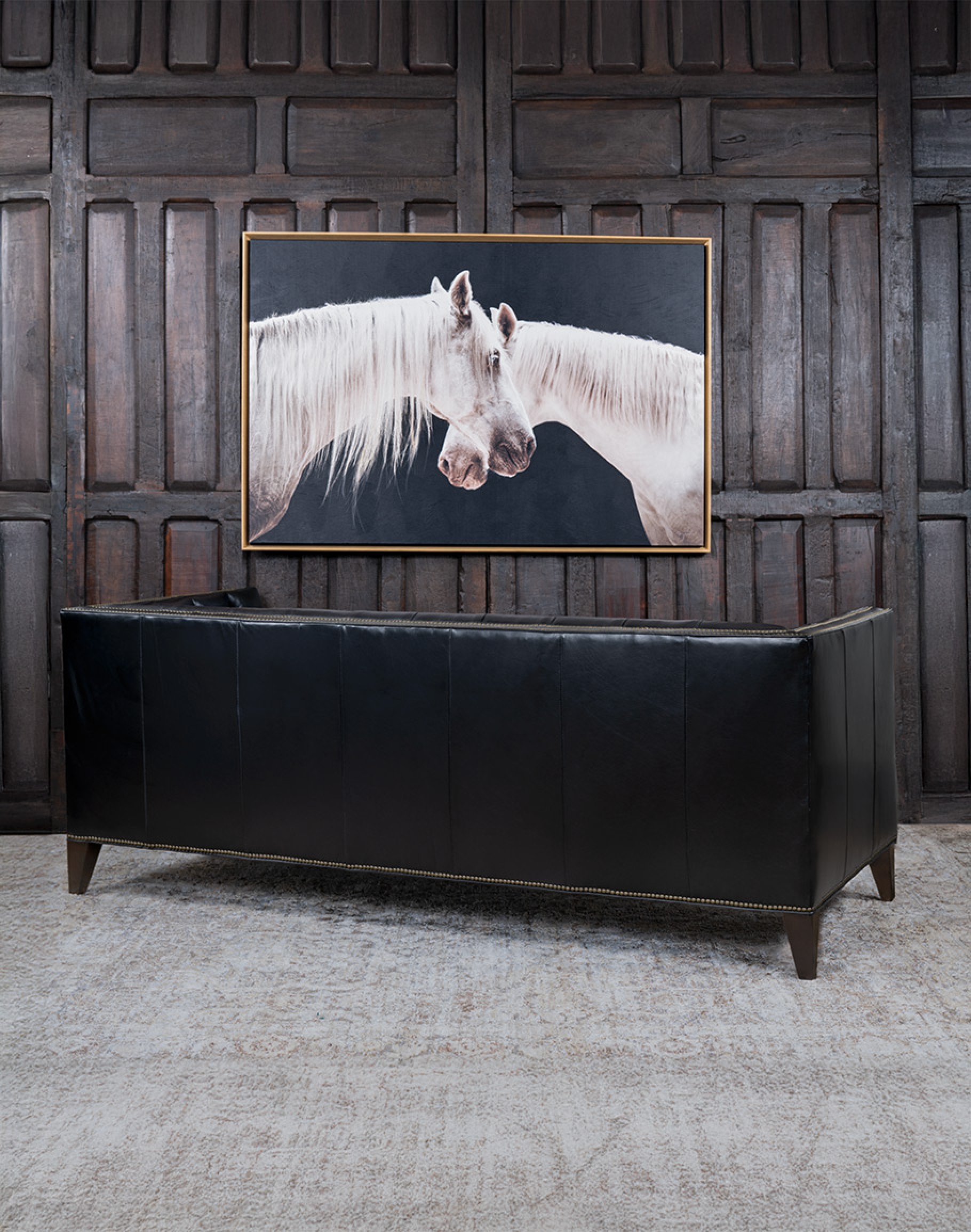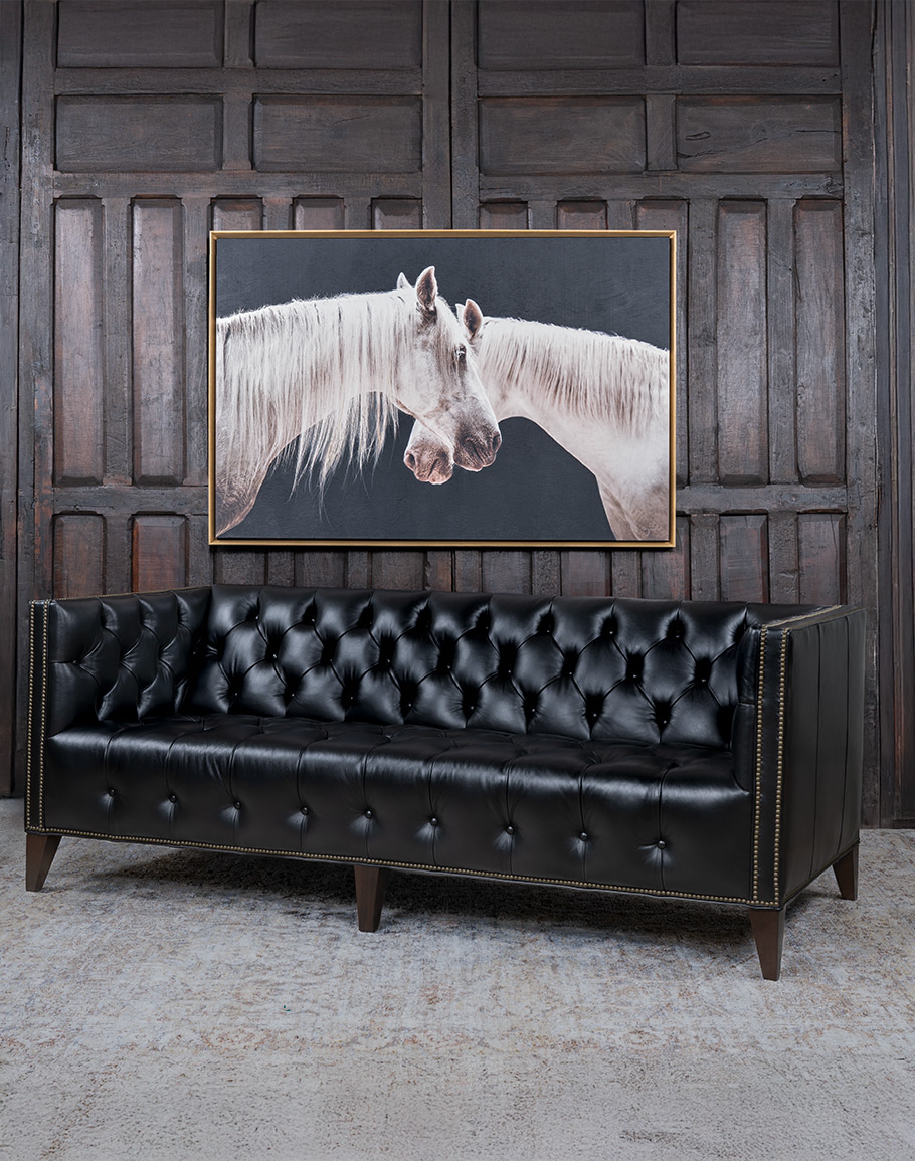 Whether styled as the centerpiece in a formal living room, a rugged yet refined ranch setting, or a chic downtown residence, the Kingston exudes sophistication and heirloom quality. The Kingston Black Tufted Leather Sofa is perfectly at home in the Refined Ranch Collection with its modern elegance, seamlessly complements the Classic Ranch Collection with timeless heritage-inspired design, and adds tailored sophistication to the Urban Ranch Collection’s bold personality. At Adobe Interiors, we create the furniture, and you create the memories