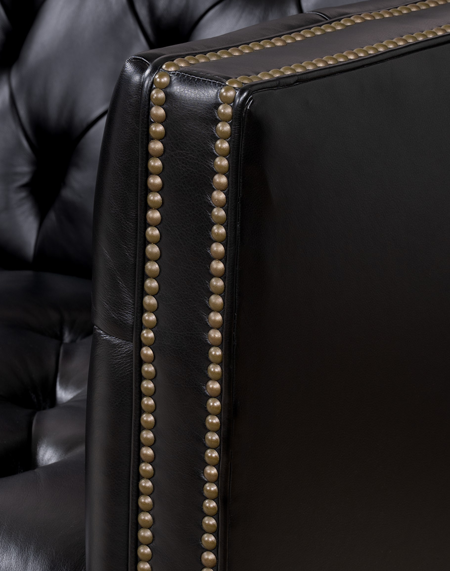 - Antique brass nailhead trim applied individually for precision finish