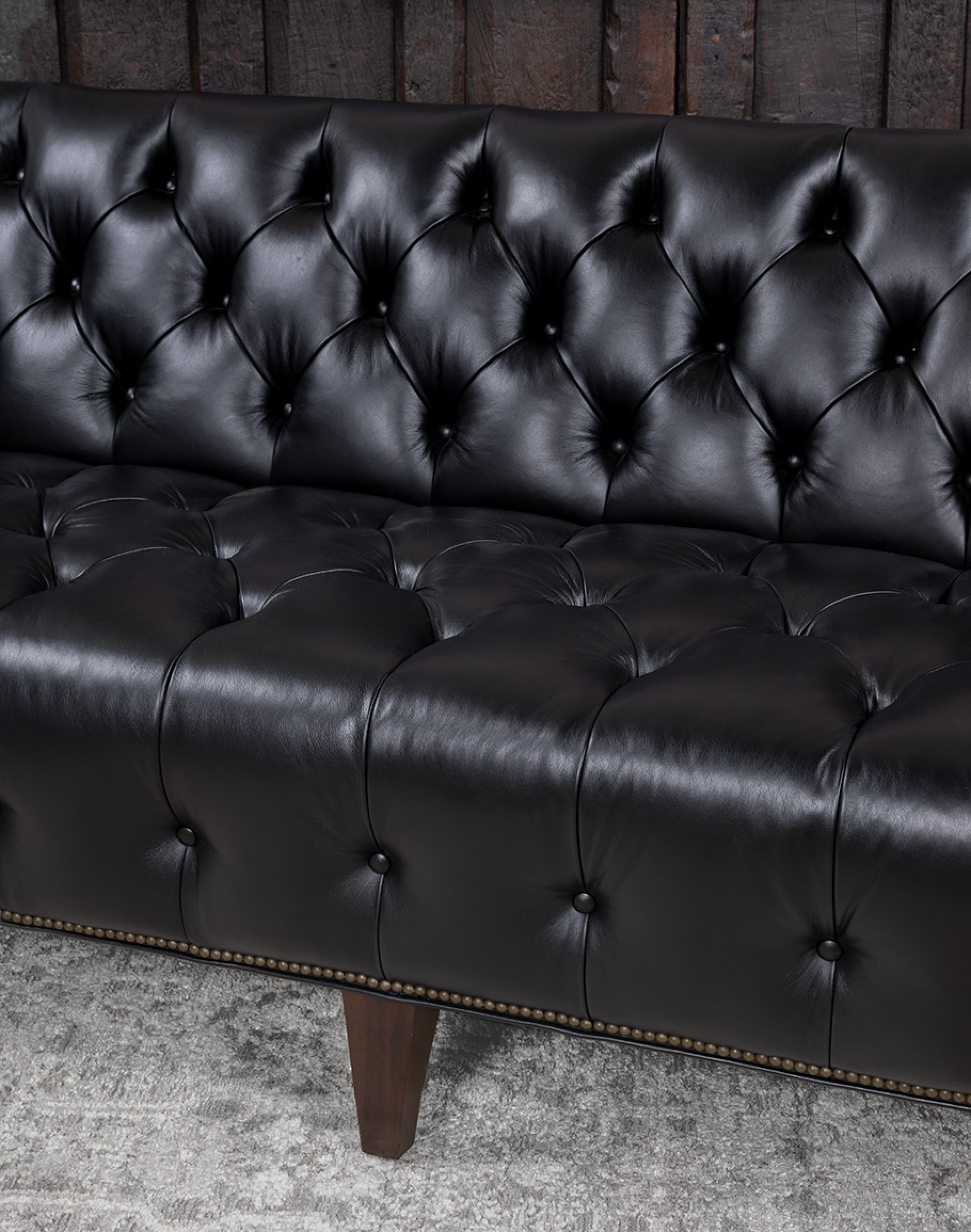 The Kingston Black Tufted Leather Sofa is a bold expression of refined Western luxury. Upholstered in full-grain leather dyed in an elegant obsidian black, this sofa captures attention with its dramatic depth and natural sheen. Each hide is carefully selected for its supple texture and durability, ensuring the Kingston not only looks striking but will also withstand decades of use.