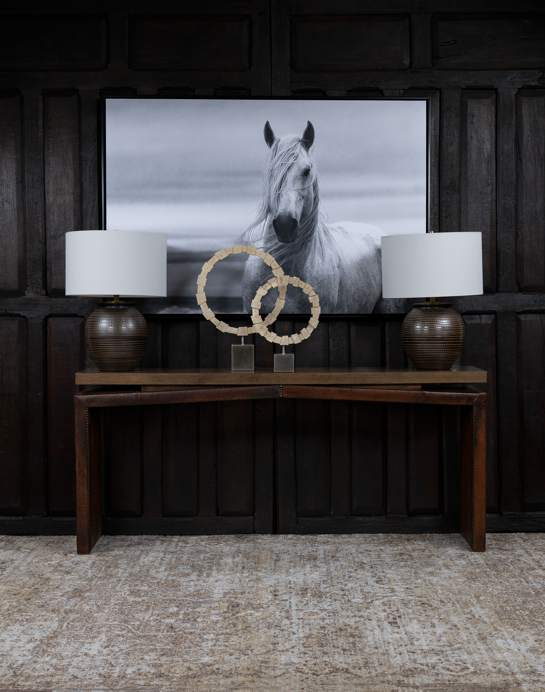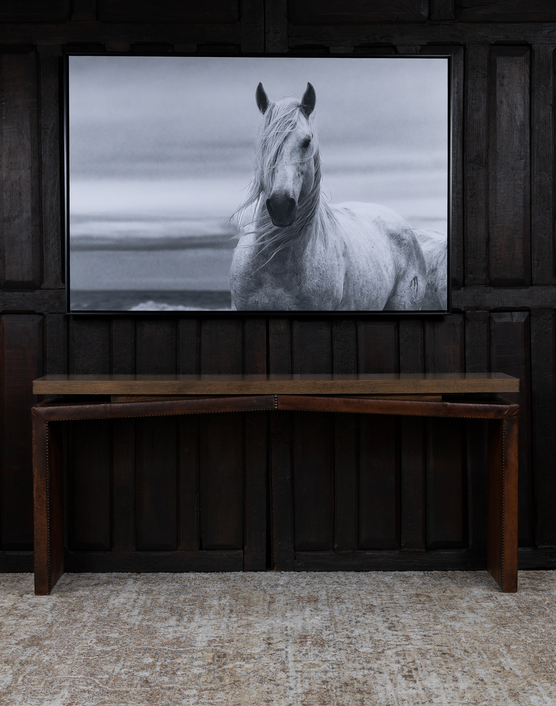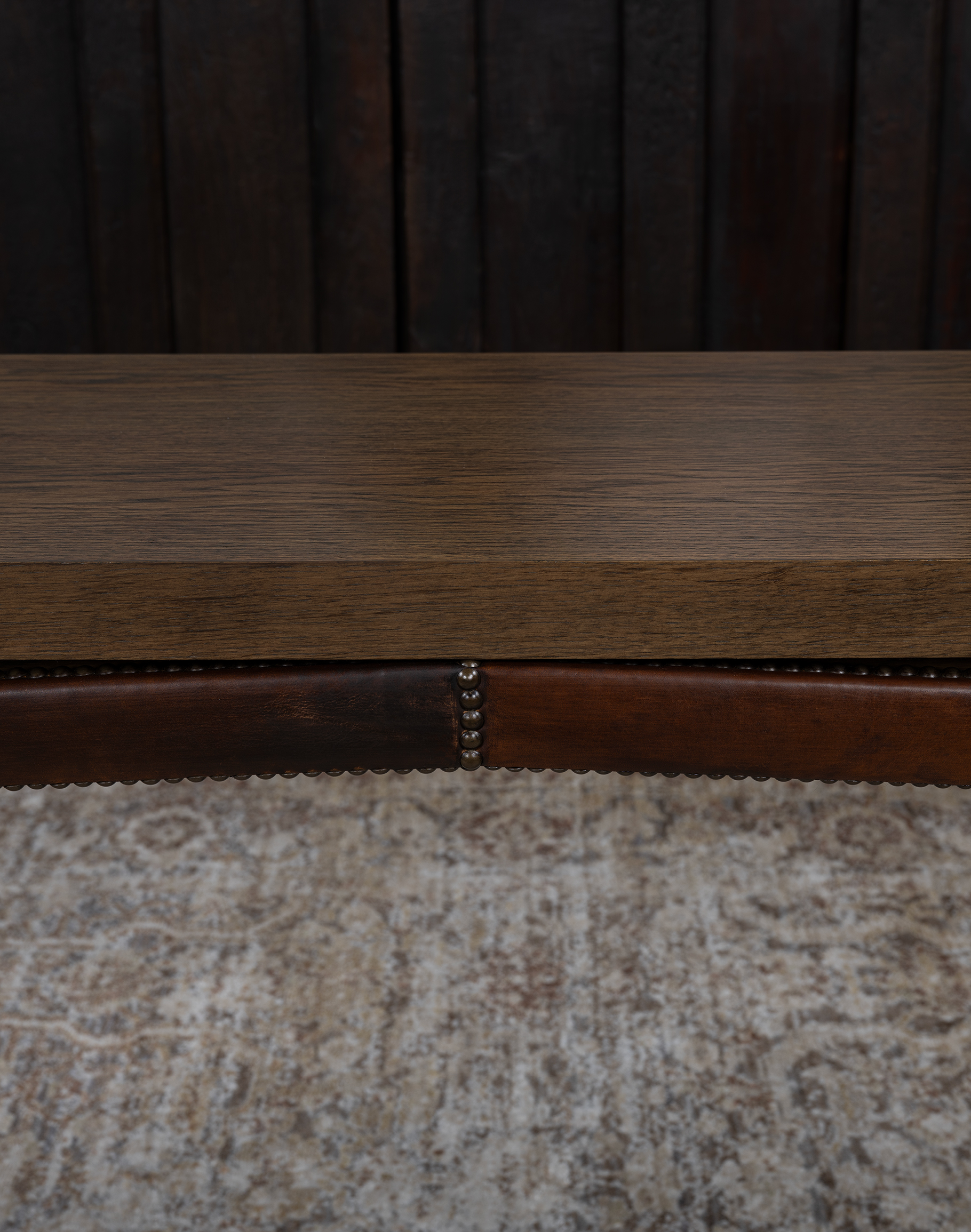 Elevate your living space with the Larson Leather Sofa Table, a refined statement piece that effortlessly blends into sophisticated Western interiors. Its rich textures, architectural form, and tailored detailing make it an ideal addition to our Urban Ranch, Classic Ranch, and Refined Ranch collections. Designed to command attention without excess, the Larson balances clean lines with heirloom craftsmanship.