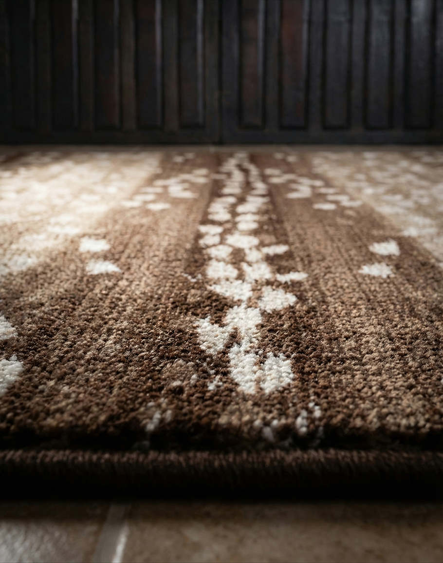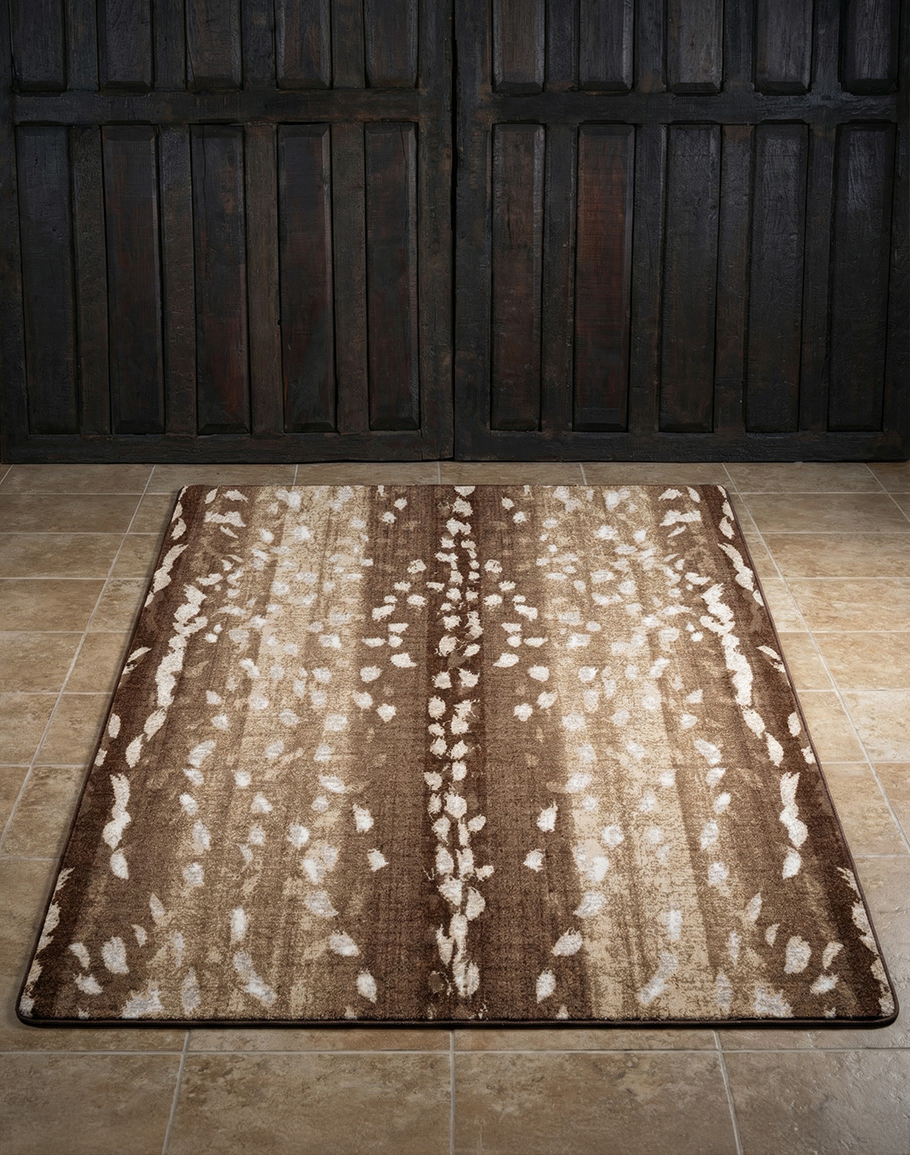 Transform your space with the Mafaldi Beige Rug, featuring a stunning pattern inspired by Axis Deer Hair on Hide. Made to order in the U.S.A from premium EnduraStran Nylon, this rug is commercial grade rated and easy to clean with just water. Available in 6 different sizes, the rug's color tones of tans, browns, cafe, and cream add a touch of natural elegance to any room. Elevate your decor with the luxurious look and durability of the Faux Axis Hide Rug. Ships Free!