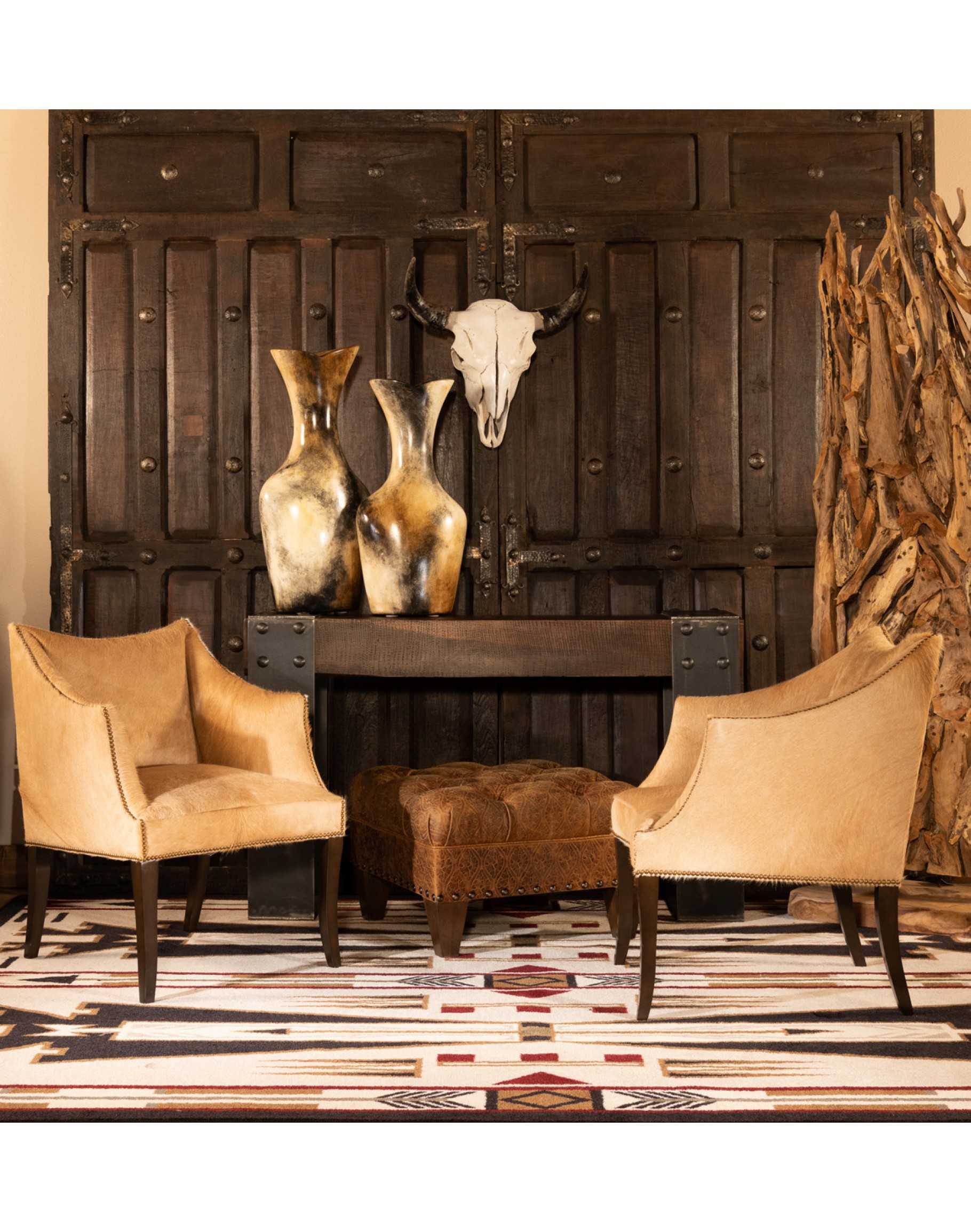 The McCoy Cowhide Chair has a Modern Frame with a Strong Western Ranch Vibe! Solid Hardwood frame with 8 way hand tied construction. American Made! These chairs are built to last for many years to come!