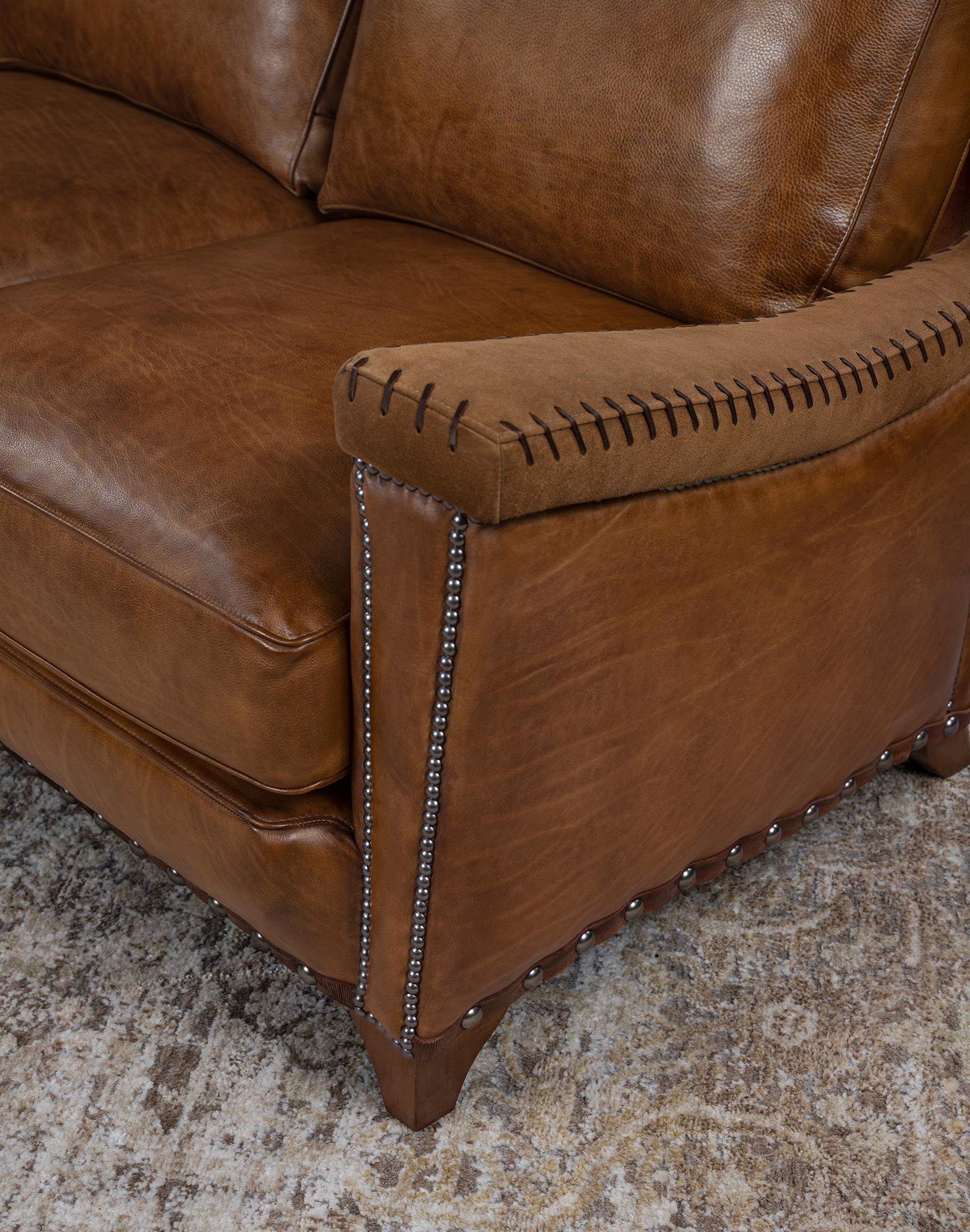 Every individual piece upholstered with Artisan Leather finishing methods is first beautifully built to the highest standards of quality. The leather is then hand-colored and aged to bespeak the loving touch of time, providing a quality antique appearance to a beautiful new piece of quality leather furniture. Every chair, sofa, or bench has its very own unique identity only these hand-crafted methods can provide, reflecting the presence of a time honored past.