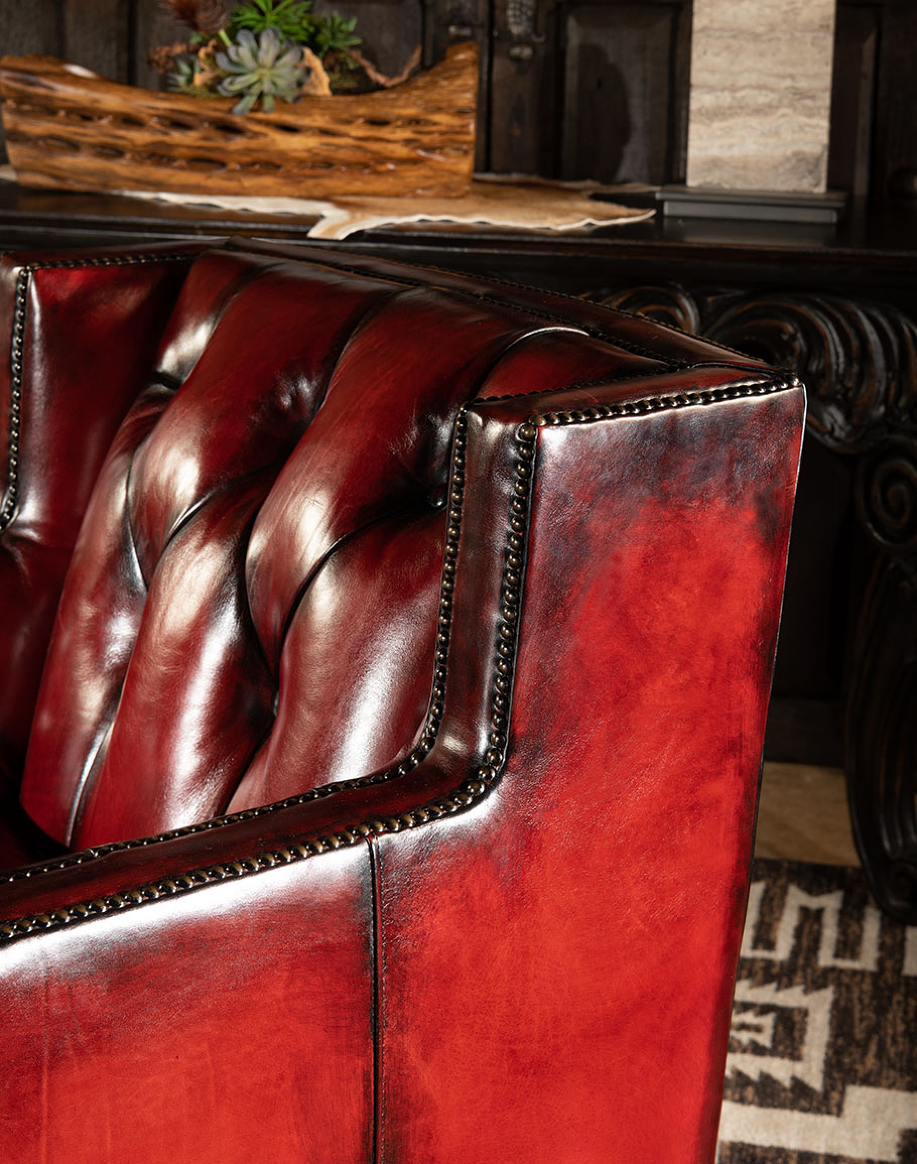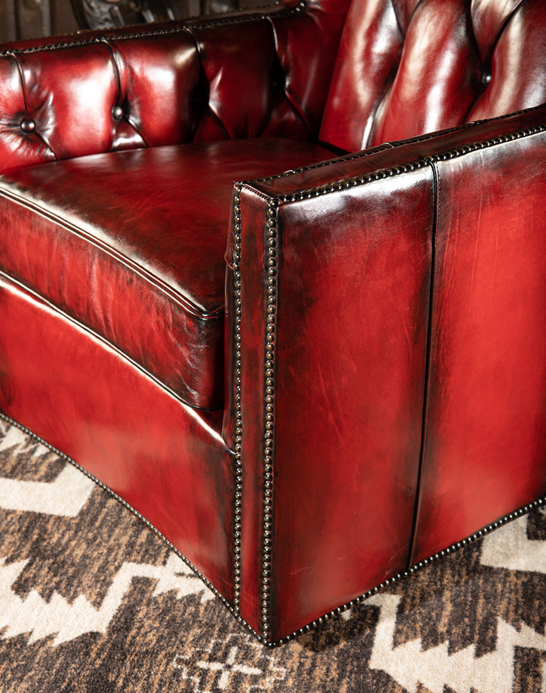 Every individual piece upholstered with Artisan Leather finishing methods is first beautifully built to the highest standards of quality. The leather is then hand-colored and aged to bespeak the loving touch of time, providing a quality antique appearance to a beautiful new piece of quality leather furniture. Every chair, sofa, or bench has its very own unique identity only these hand-crafted methods can provide, reflecting the presence of a time honored past.