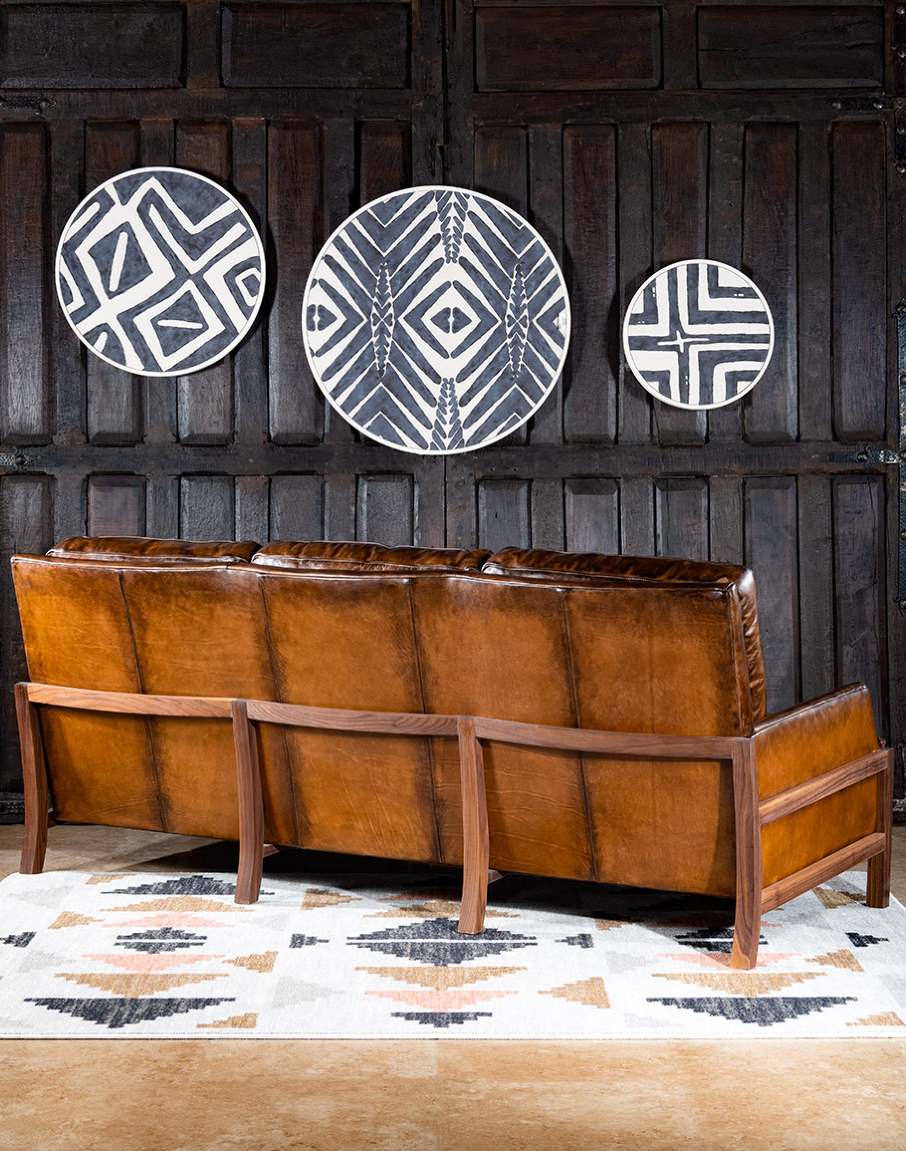 Leather Description: Artisan Leathers beautifully evoke this time worn quality, unique to every individual piece, like the originals. To pure aniline leather crusts, already fully and carefully upholstered to the piece, a base color is created with multiple applications of waxes and oils, hand-worked by the leather Artisan. After drying, this craftsman then carefully builds-up the finish with an expert’s eye, and touch, to achieve an aged patina in just the right places to reflect the aged qualities only time, wear, and frequent care could have accomplished naturally. Every individual piece upholstered with Artisan Leather finishing methods is first beautifully built to the highest standards of quality. The leather is then hand-colored and aged to bespeak the loving touch of time, providing a quality antique appearance to a beautiful new piece of quality leather furniture. Every chair, sofa, or bench has its very own unique identity only these hand-crafted methods can provide, reflecting the presence of a time honored past.