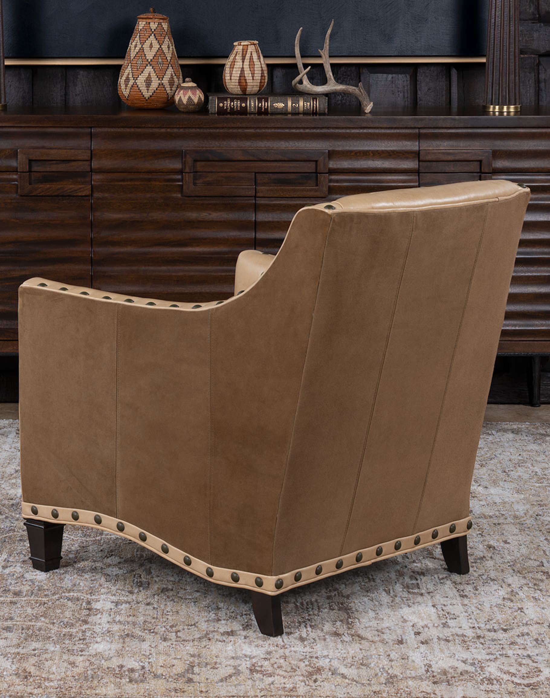 If you are searching for the quintessential quality Western living room chair, look no further than our Palomino Boot Stitch Chair. This high-quality living room chair will be home in your living space with fine, supple leather, intricate detail work, and a rugged panache. Whether you are a true Western enthusiast looking for your next authentic piece or want to liven up your Classic Ranch home décor, the Palomino Boot Stitch Chair will not disappoint. Our inspired designers combine the romanticism of the Wild West with the refinement and sturdy construction we use on all our furniture to create a rustic, elegant living room chair that is as versatile as it is singular. Great in a set but bold enough to stand alone, the Palomino Boot Stitch Chair will retain its strength and charm for years. At Adobe Interiors, we create the furniture, and you create the memories.