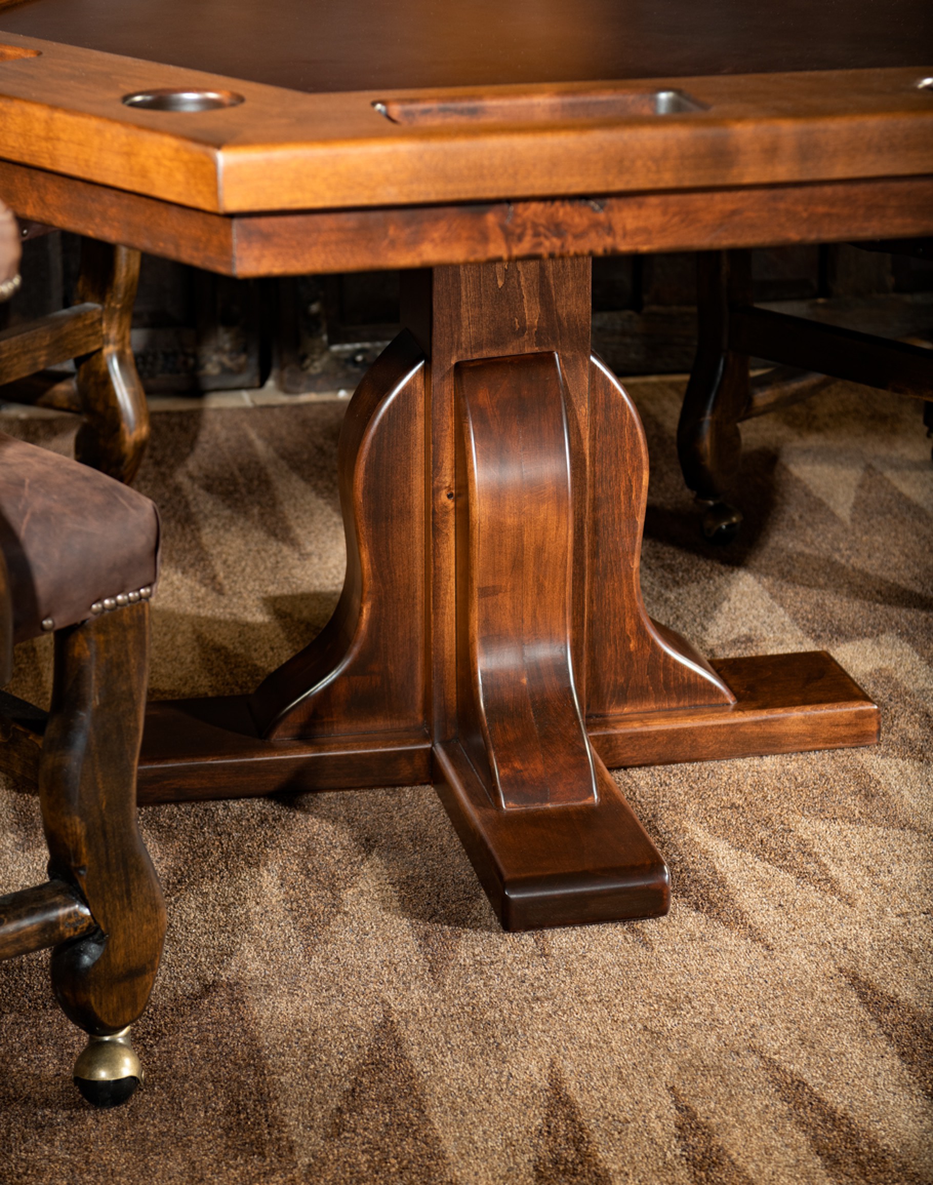Looking for a stunning and functional poker game table that's 100% Texas-made? Look no further than the expertly-crafted table available at Adobe Interiors. Made from high-quality local materials and designed with both style and practicality in mind, this table is the perfect addition to any game room or entertainment space. With its sturdy construction, spacious playing surface, and convenient cup holders, this poker game table provides the ideal setting for a night of fun and friendly competition. Plus, its eye-catching design and expert craftsmanship make it a beautiful and timeless piece that will enhance the look and feel of your home for years to come. By investing in this table, you're not only getting a functional and stylish piece of furniture, but you're also supporting local artisans and their proud Texan heritage. Experience the best of Texas with Adobe Interiors' Texas-made poker game table. Made for up to 6 players.