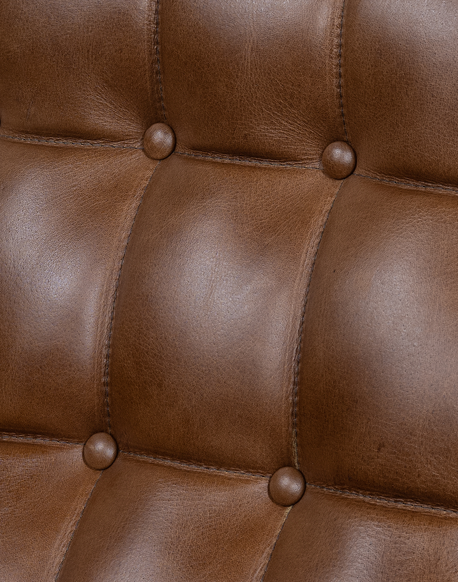 The Ranger Whiskey Leather Recliner is a 100% American-made statement piece that marries tailored design with sink-in comfort. Upholstered in a rich whiskey saddle brown leather, this luxury recliner brings the warmth of a well-aged bourbon to any living room, den, or home office. The full-coverage leather showcases subtle tonal variation and a soft luster, giving the chair a refined yet rugged Western character that’s easy to pair with both rustic and sophisticated interiors.