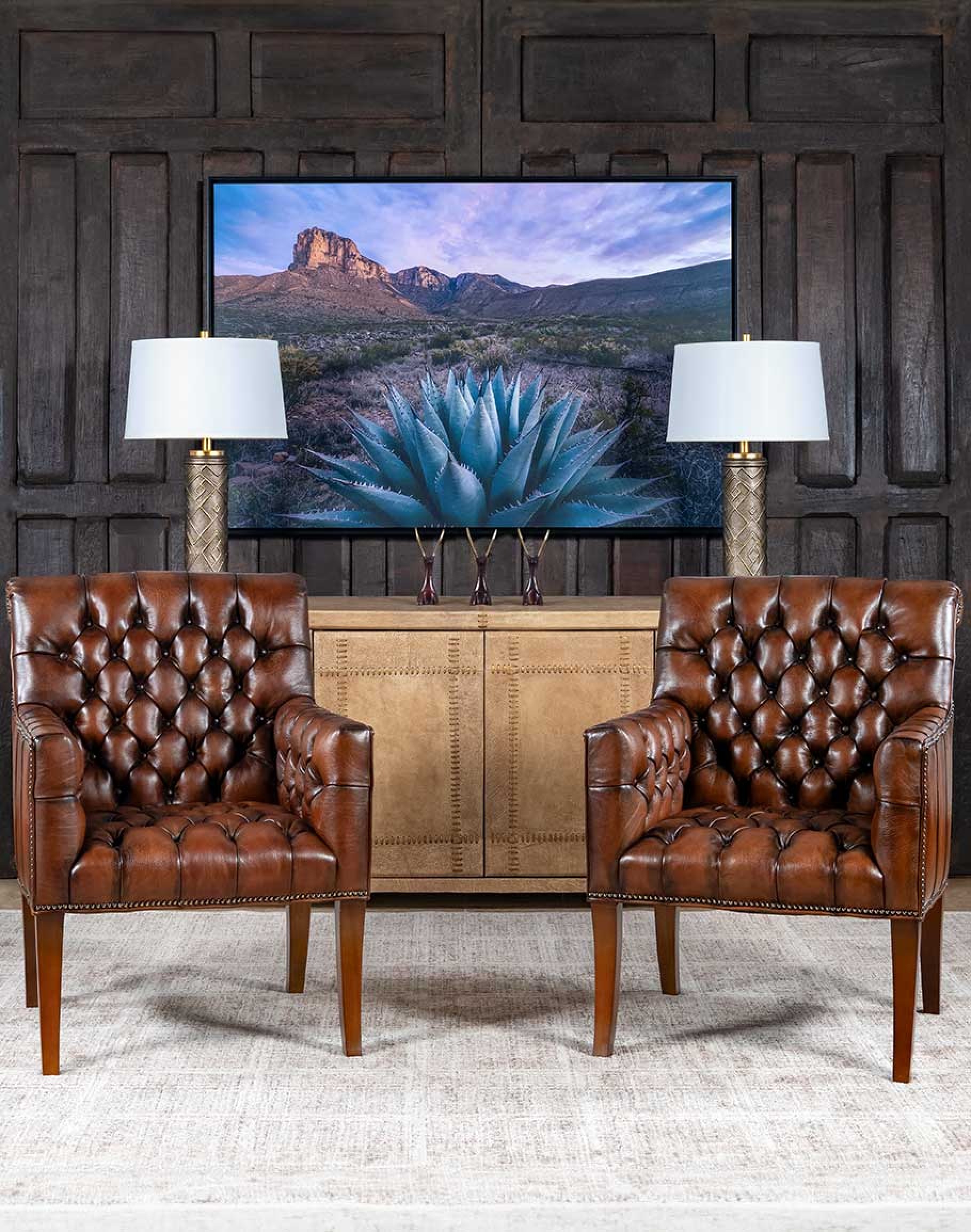 As part of Adobe Interiors' Desert and Refined Ranch Collection, the Reno Sable Tufted Leather Chair embodies the rugged yet polished spirit of the American Southwest. This chair is not only a statement piece but also an heirloom-quality addition to any home, promising both style and durability that will last for generations. At Adobe Interiors, we create the furniture, and you create the memories.