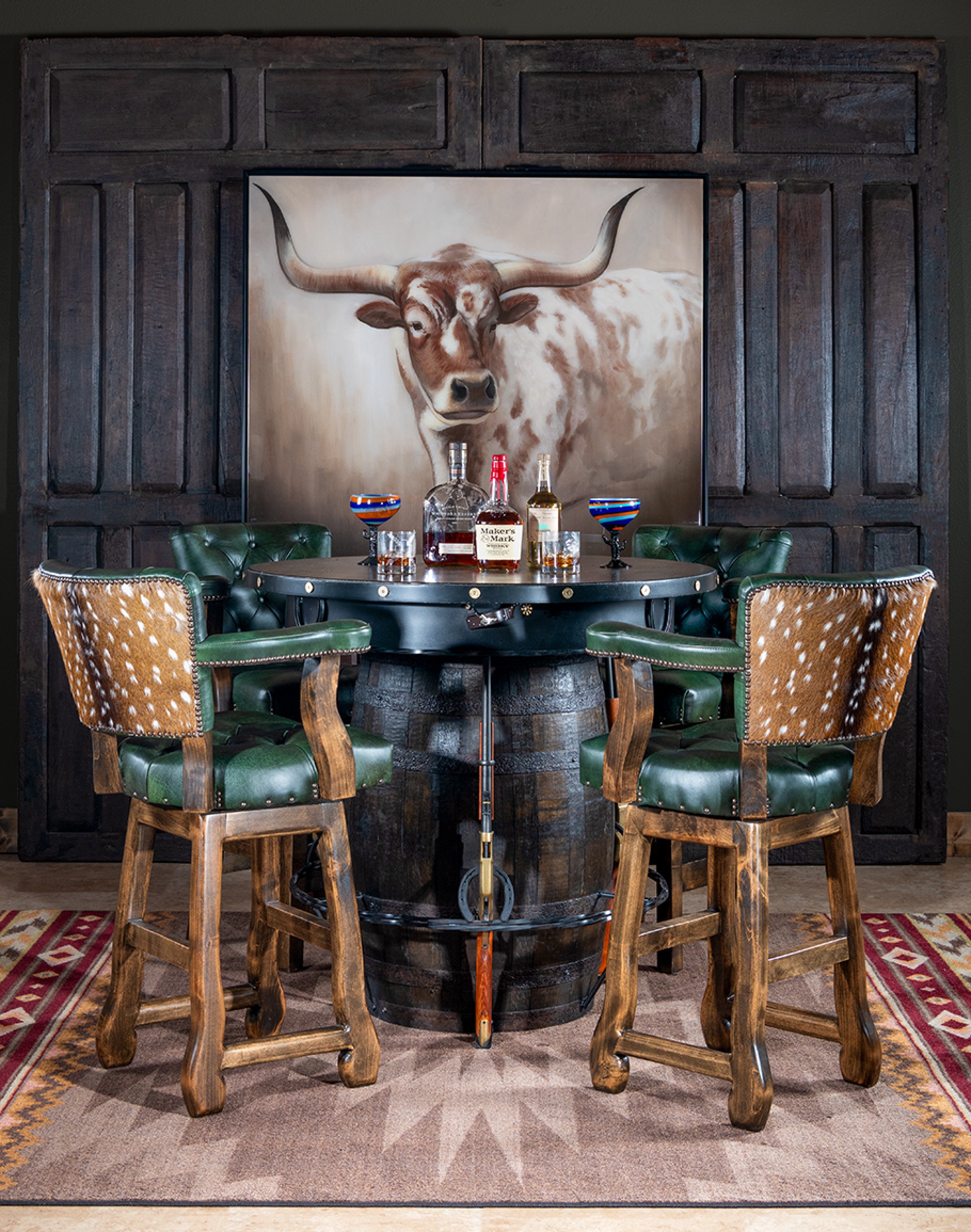 Optimize your space with the Rifleman Barrel Pub Table – where elegance meets the Wild West.