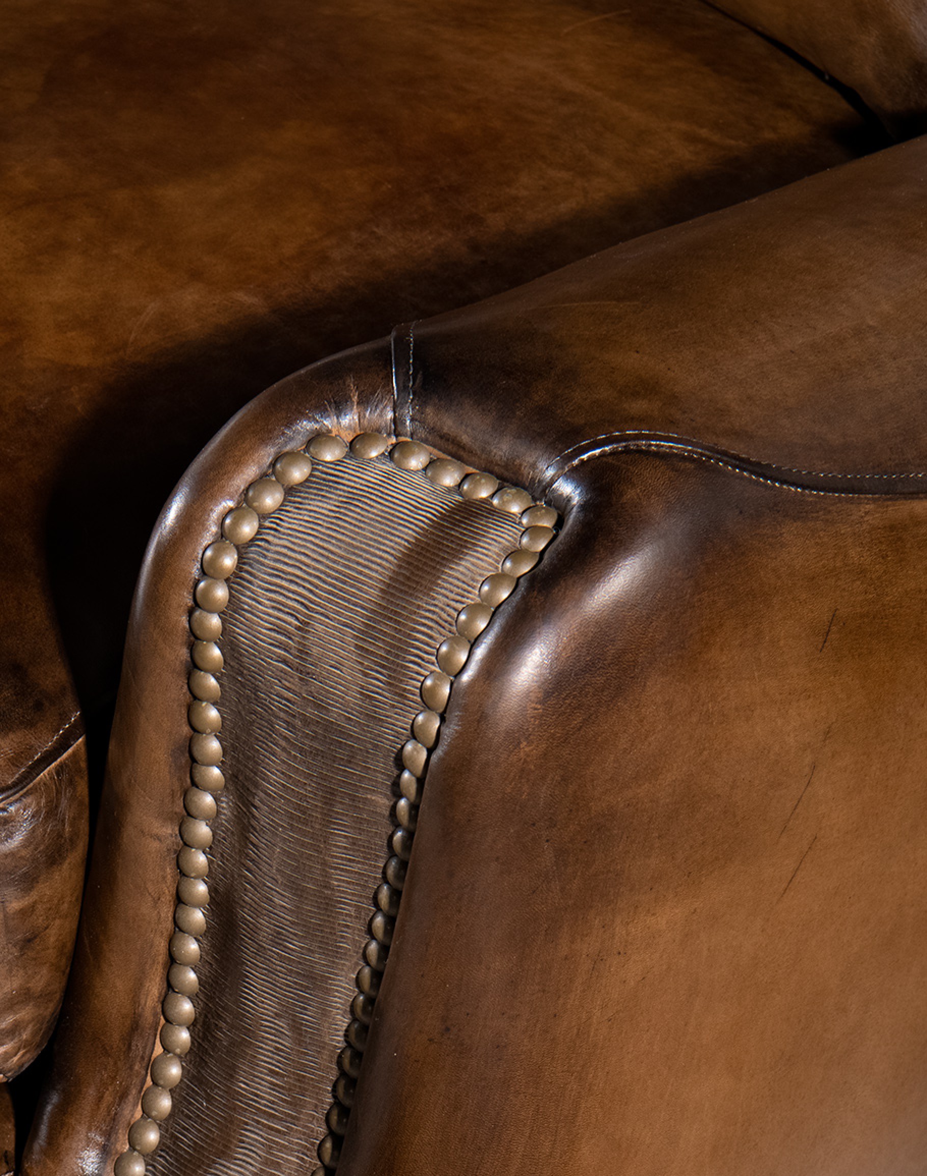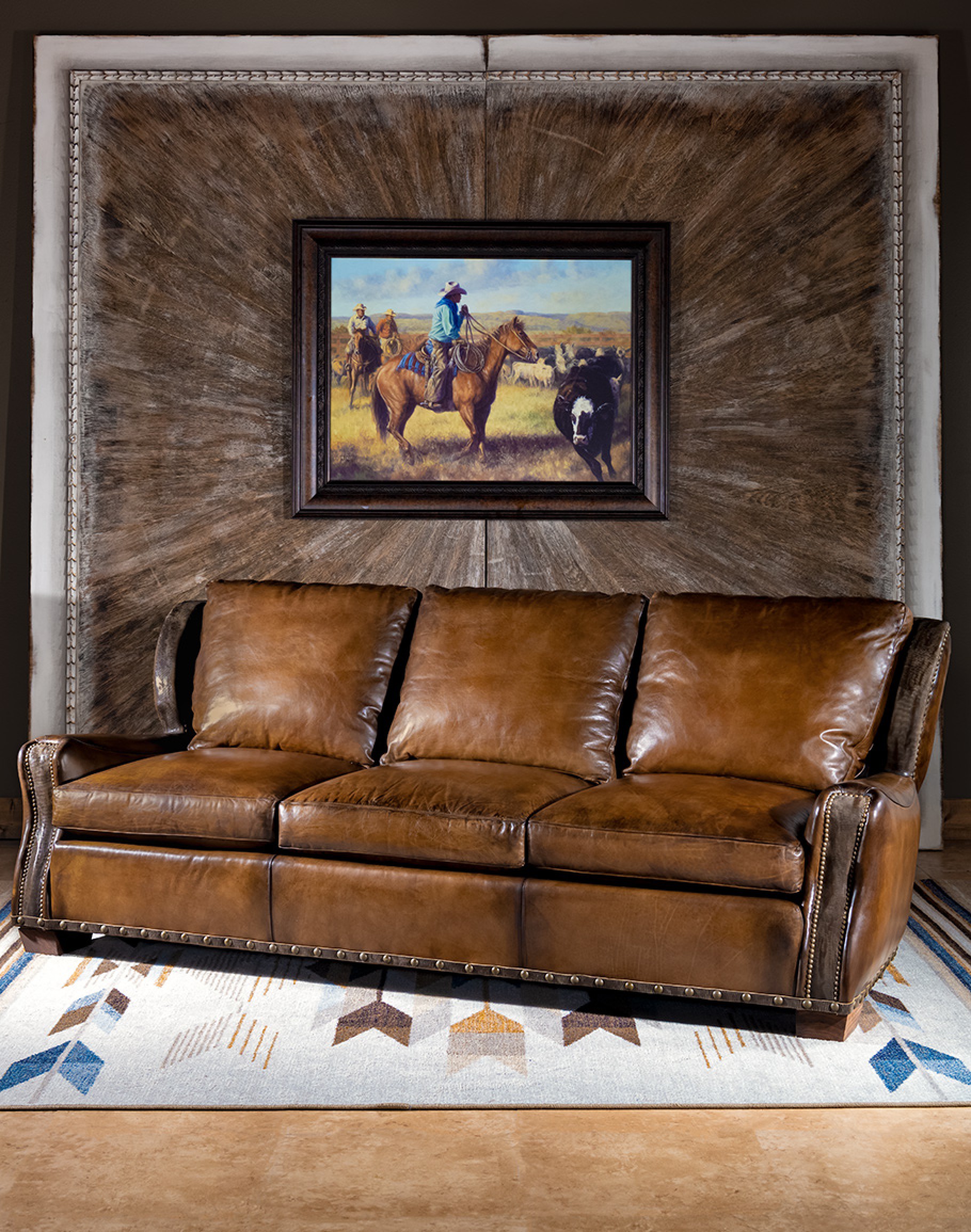 Leather Description: Artisan Leathers beautifully evoke this time worn quality, unique to every individual piece, like the originals. To pure aniline leather crusts, already fully and carefully upholstered to the piece, a base color is created with multiple applications of waxes and oils, hand-worked by the leather Artisan. After drying, this craftsman then carefully builds-up the finish with an expert's eye, and touch, to achieve an aged patina in just the right places to reflect the aged qualities only time, wear, and frequent care could have accomplished naturally. Every individual piece upholstered with Artisan Leather finishing methods is first beautifully built to the highest standards of quality. The leather is then hand-colored and aged to bespeak the loving touch of time, providing a quality antique appearance to a beautiful new piece of quality leather furniture. Every chair, sofa, or bench has its very own unique identity only these hand-crafted methods can provide, reflecting the presence of a time honored past.