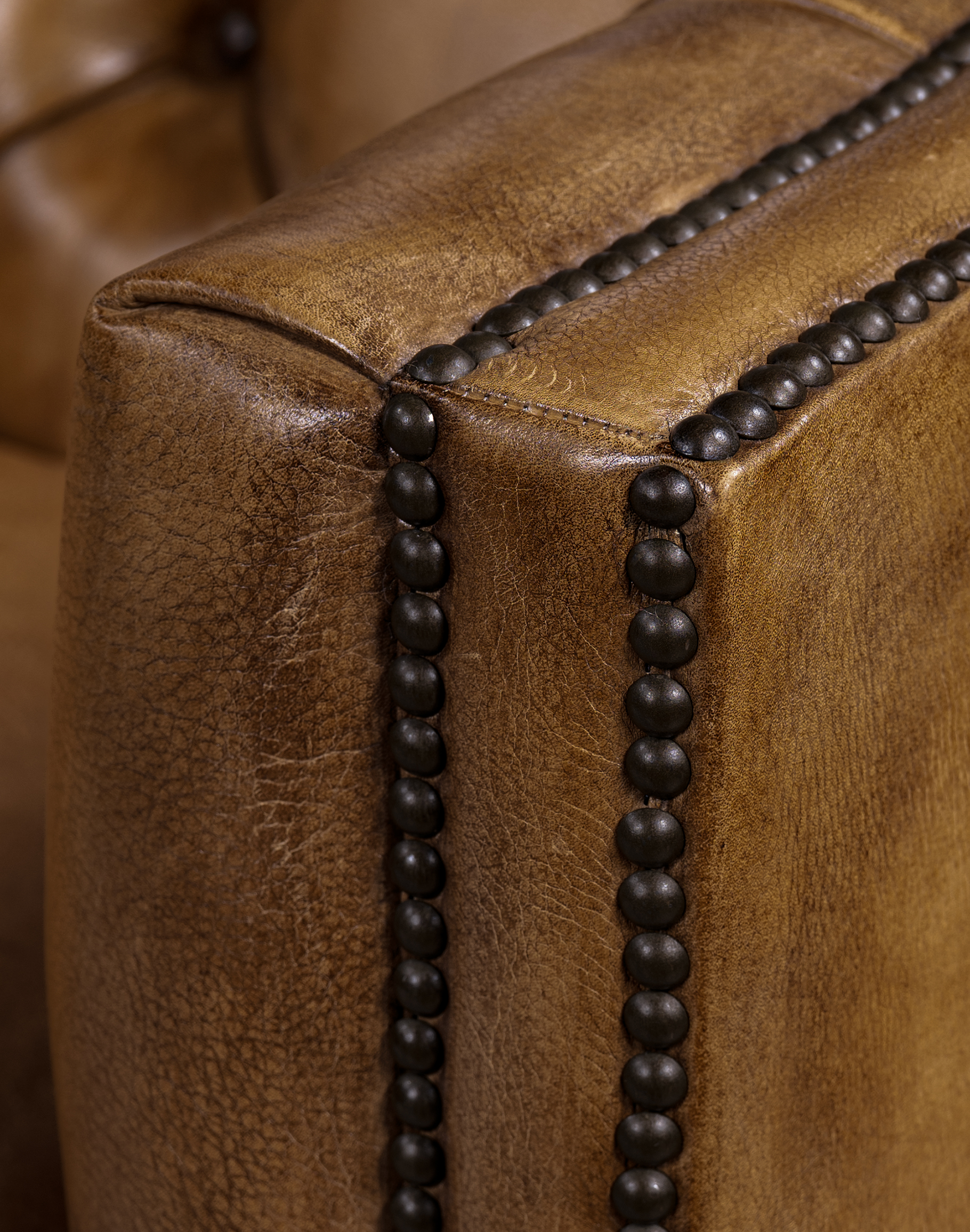 Every individual piece upholstered with Artisan Leather finishing methods is first beautifully built to the highest standards of quality. The leather is then hand-colored and aged to bespeak the loving touch of time, providing a quality antique appearance to a beautiful new piece of quality leather furniture. Every chair, sofa, or bench has its very own unique identity only these hand-crafted methods can provide, reflecting the presence of a time honored past.