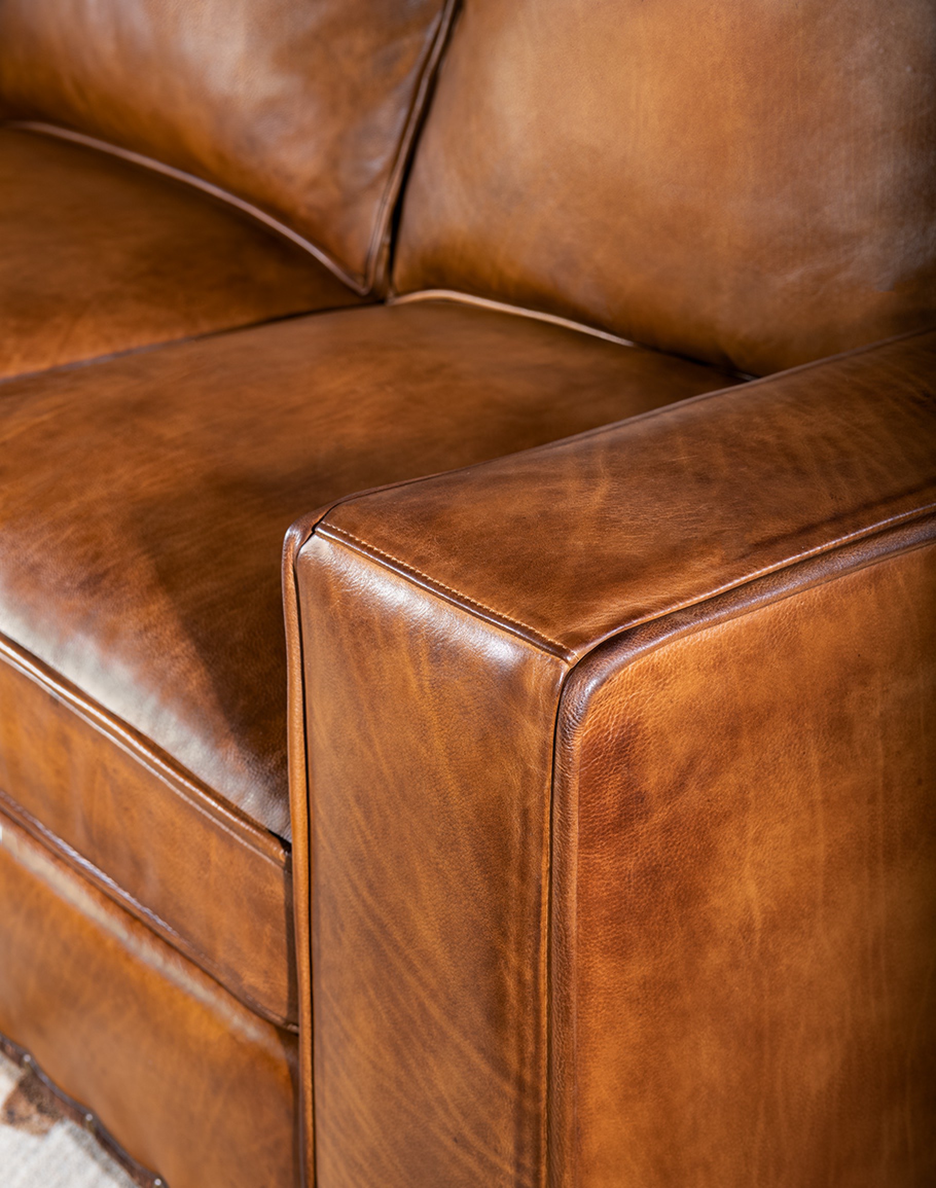 Every individual piece upholstered with Artisan Leather finishing methods is first beautifully built to the highest standards of quality. The leather is then hand-colored and aged to bespeak the loving touch of time, providing a quality antique appearance to a beautiful new piece of quality leather furniture. Every chair, sofa, or bench has its very own unique identity only these hand-crafted methods can provide, reflecting the presence of a time honored past.