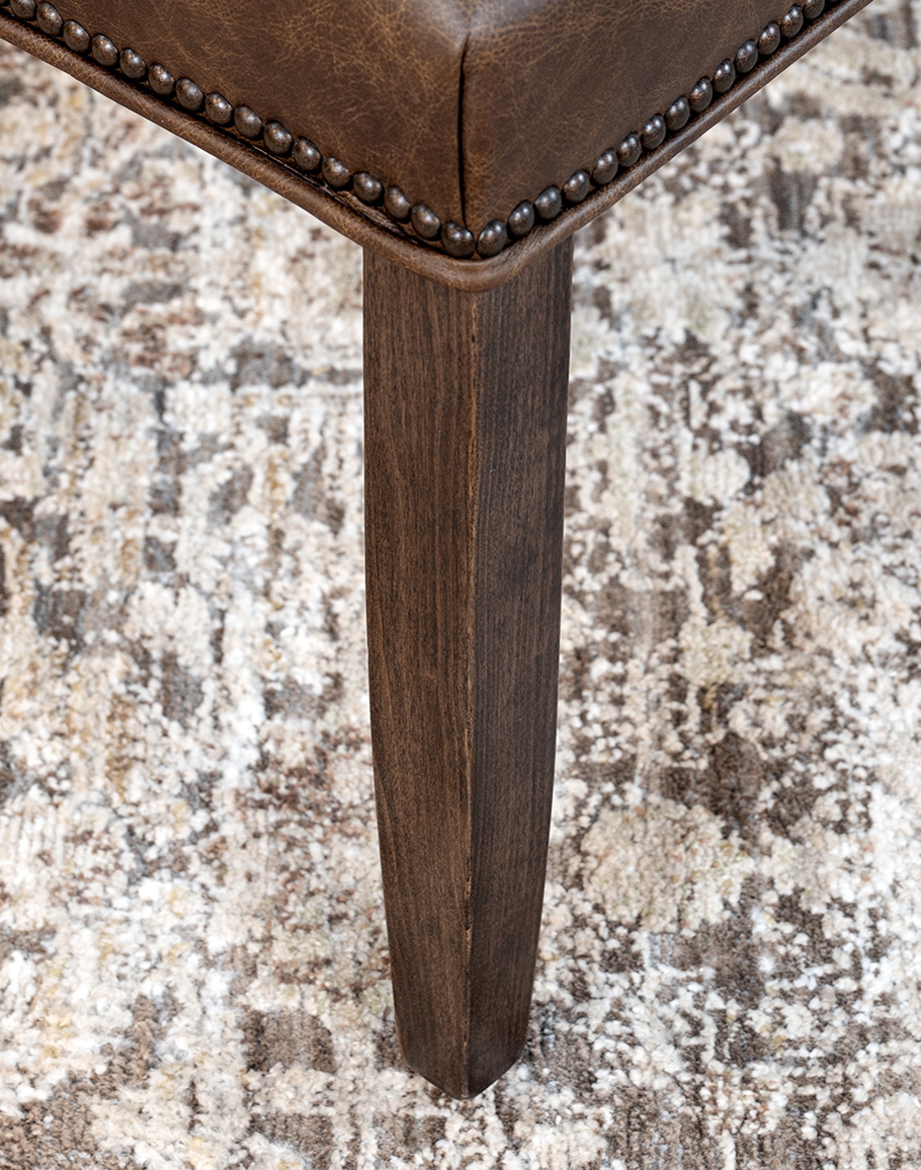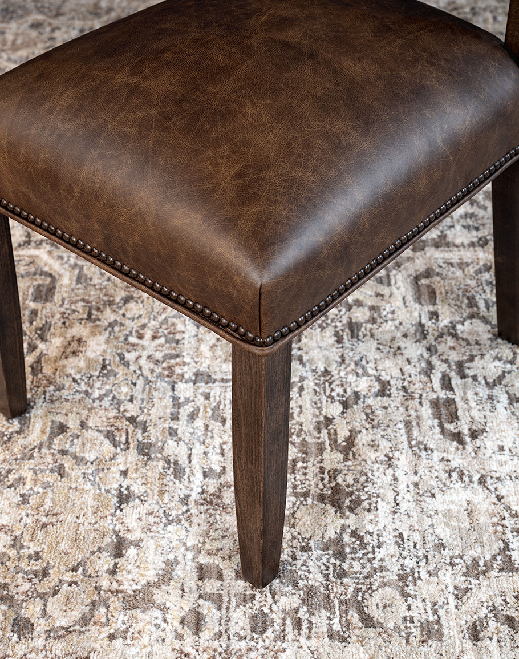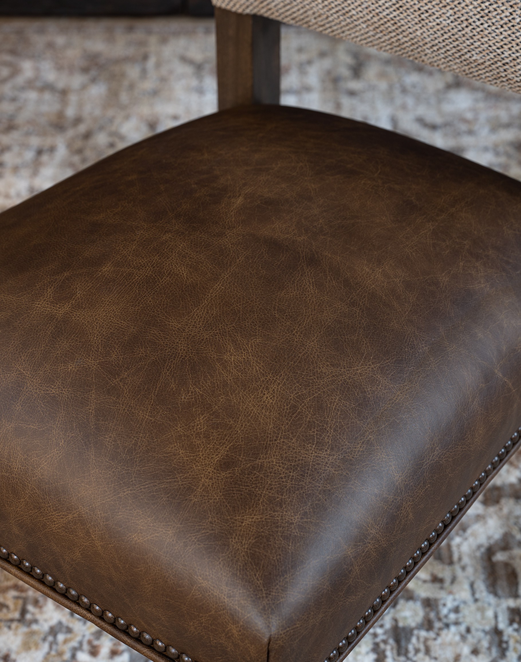 - Hand-applied antique brass nailhead tacks
