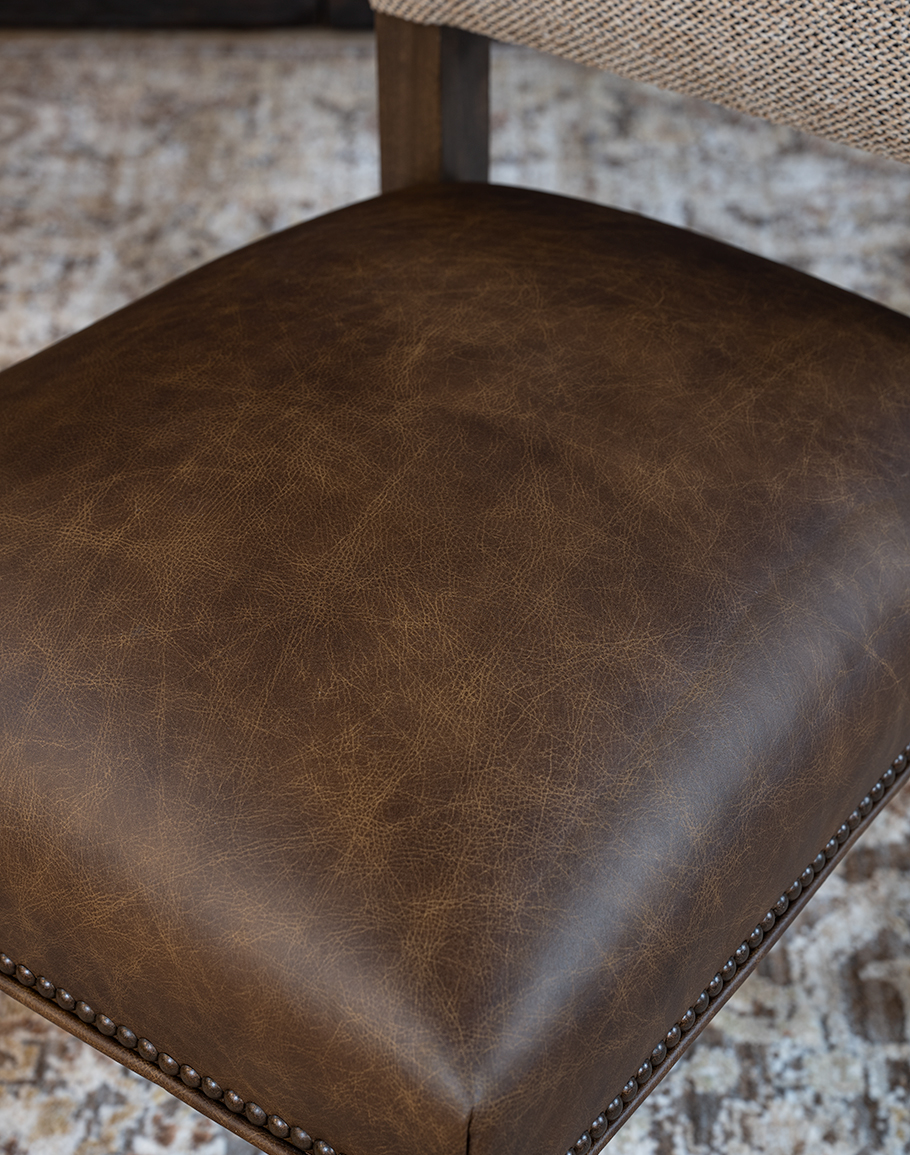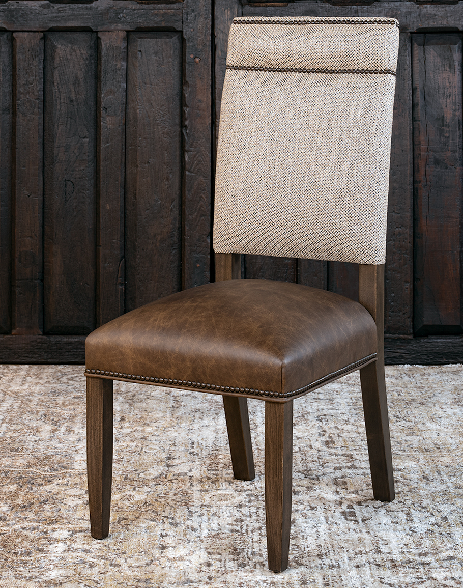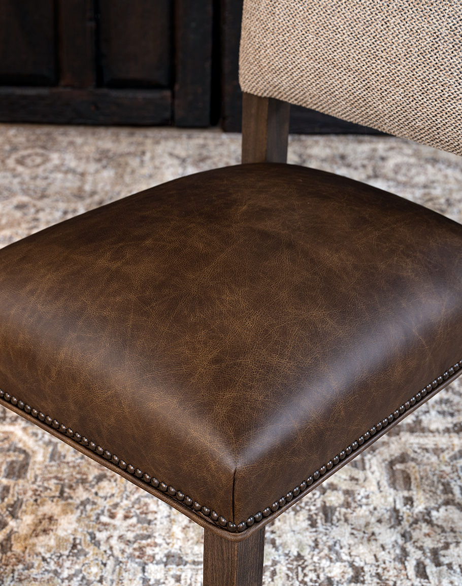 With its thoughtful balance of texture, tone, and form, the Sable Tweed Dining Chair effortlessly complements desert ranch, rustic ranch, and refined ranch. Every detail—from its hand-finished alder frame to its precise nailhead trim—reflects. At Adobe Interiors, we create the furniture, and you create the memories.
