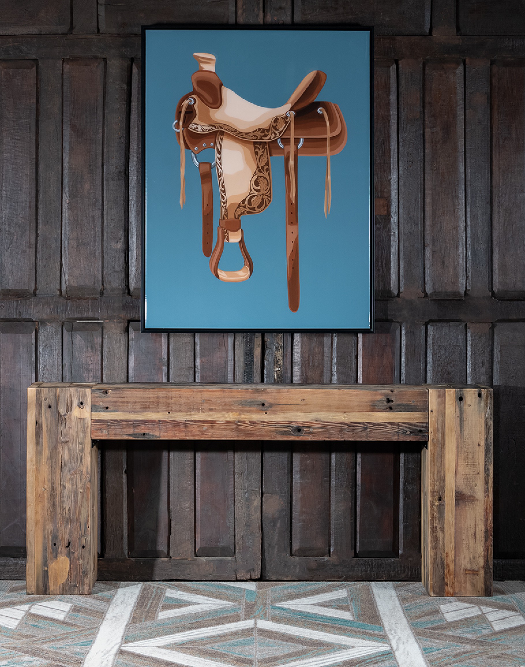 Ideal for adding a rustic charm with a contemporary edge to your space, the Saddle Sky Framed Art Piece is perfect for living rooms, offices, or entryways. Its unique blend of traditional western elements and modern design makes it a versatile addition to various interior styles.