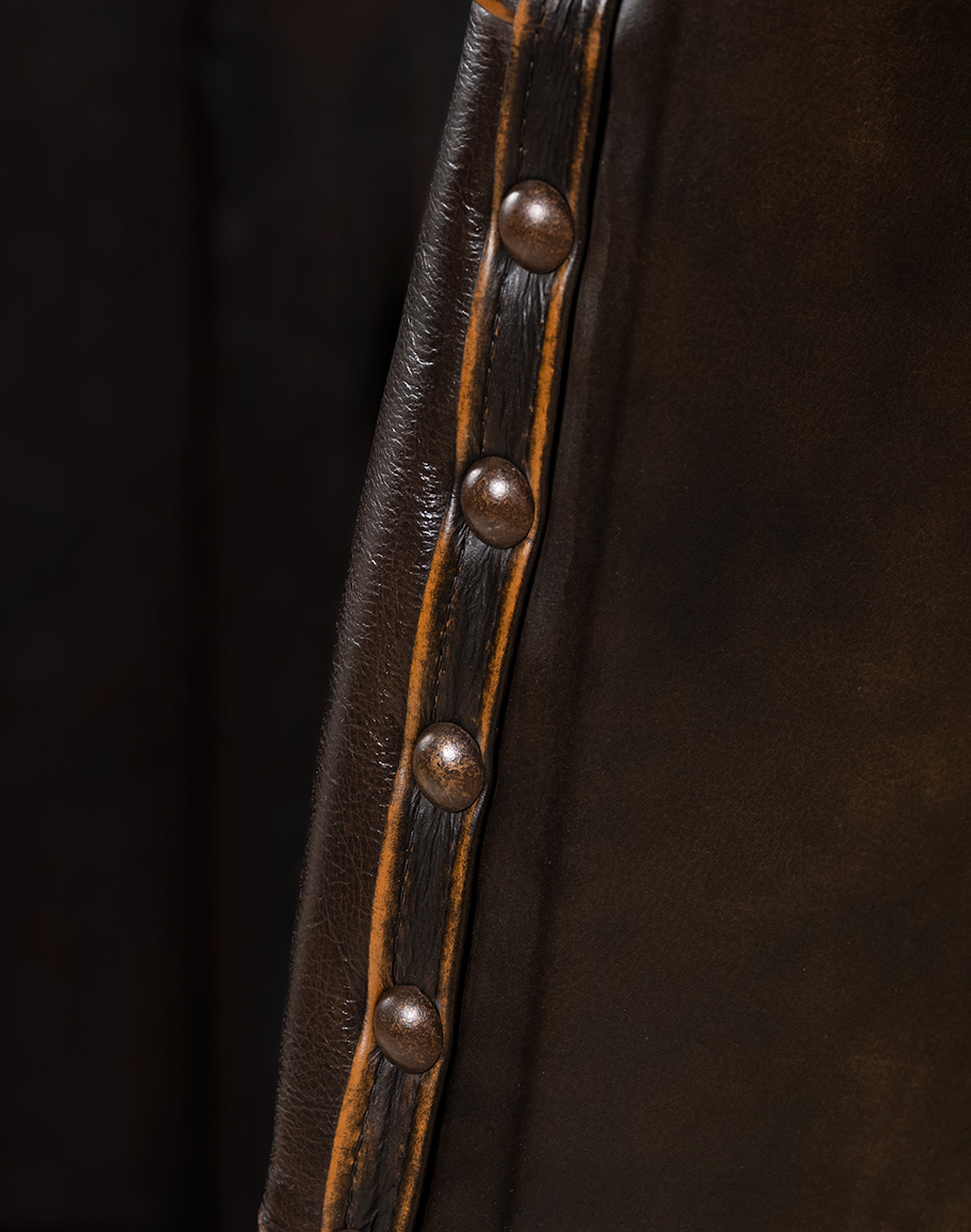 Leather Description: A medium weight pure aniline crust. Started by adding the desired color with waxes, oils and seals to give the leather its base. Once the first application is dry, an expert craftsman can build up the finish to achieve a rich patina that is very much desired by the consumer. The final step is to apply a wax on for protection and feel. This labor intensive hand-wipe evokes classic appeal with the ability to use and add to the unique finish started. Please dust regularly and clean with a damp cloth. This leather will fade if expose to direct sunlight for a prolonged period of time.