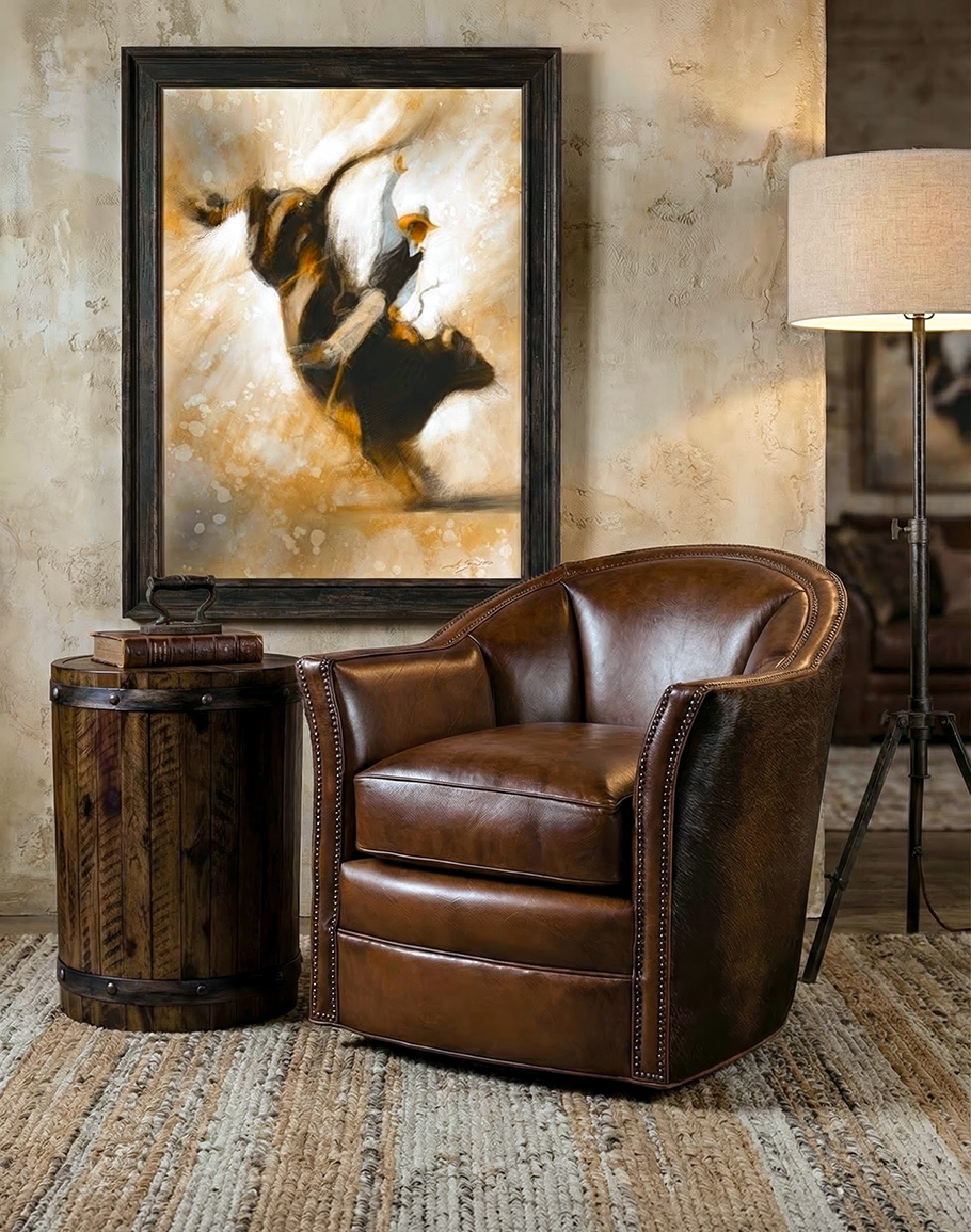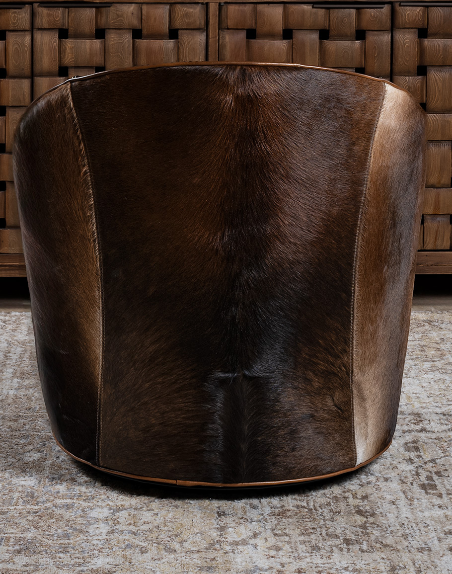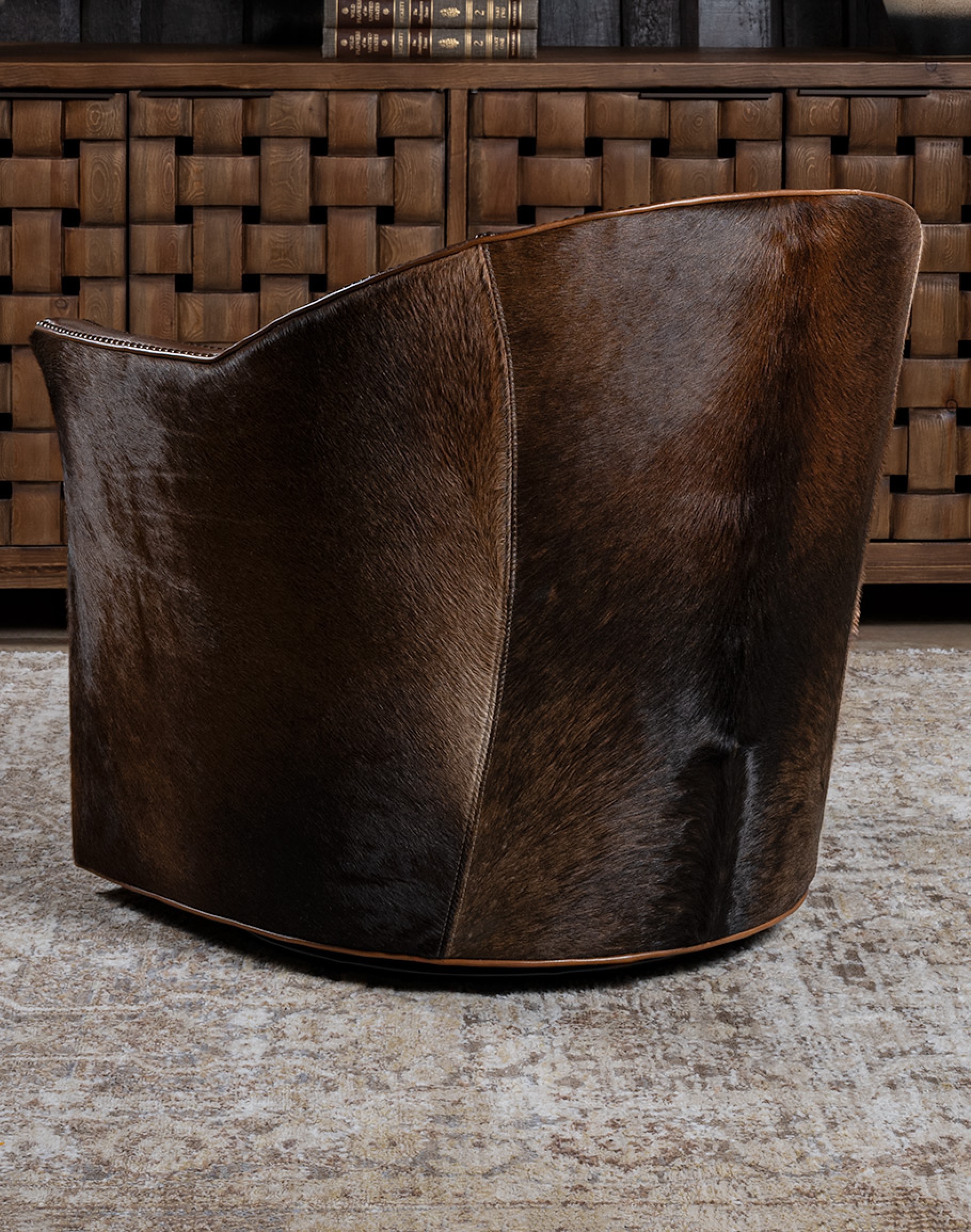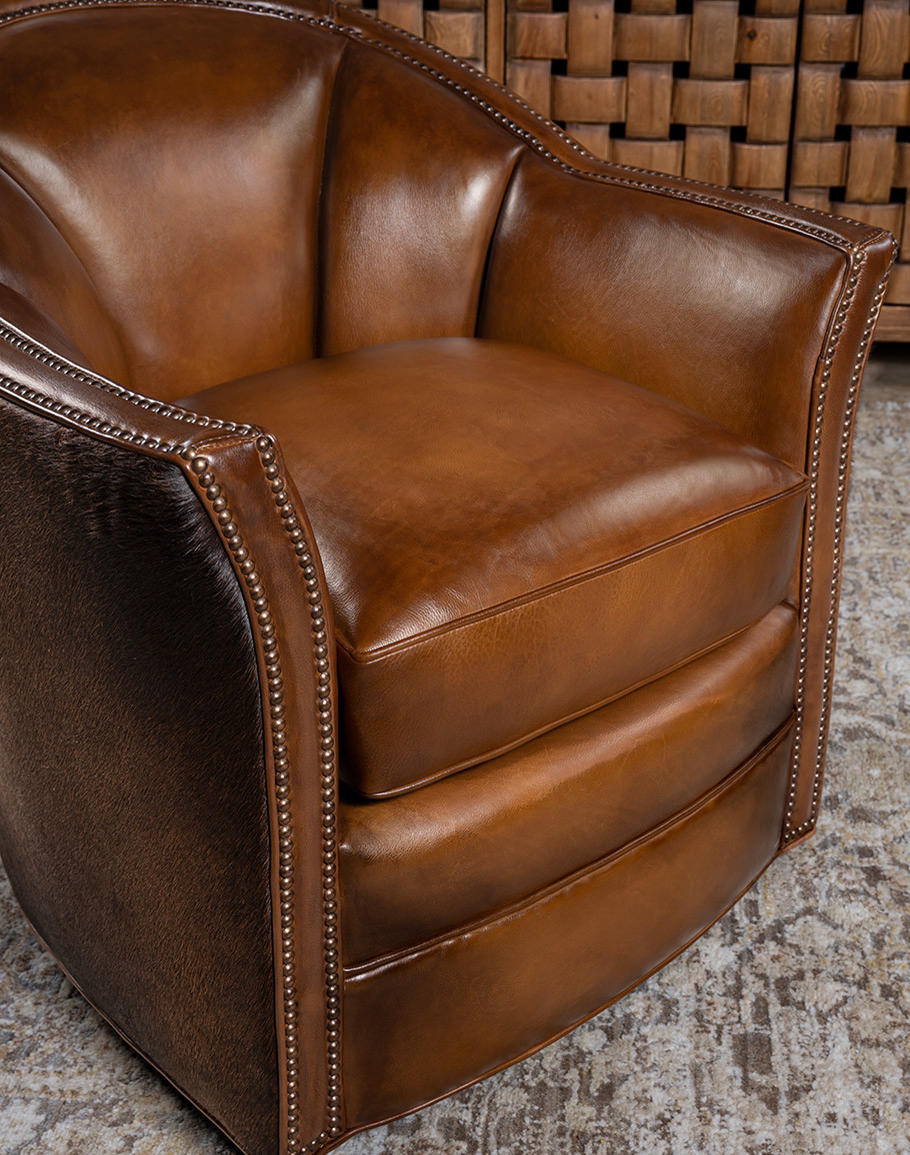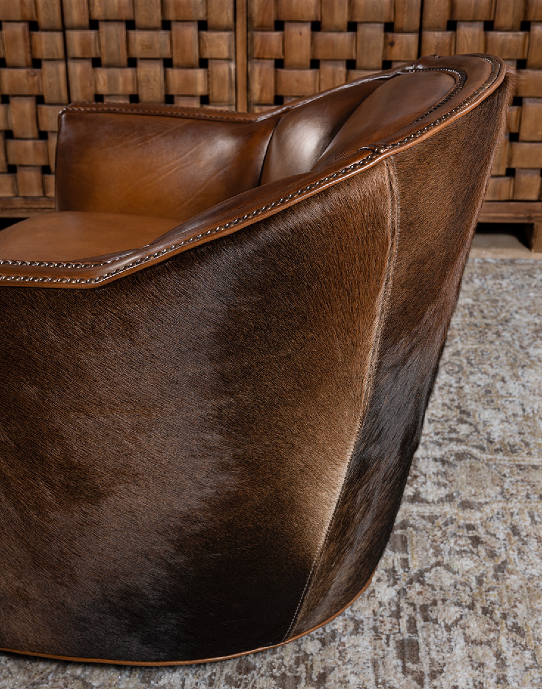 Elevate your space with the Sheridan Leather Cowhide Swivel Chair,a masterfully crafted statement piece that blends refined Western elegance with heirloom-level construction. Handcrafted in the USA to the highest standards of quality and craftsmanship, this swivel accent chair is designed for those who appreciate authentic materials, timeless design, and uncompromising comfort.