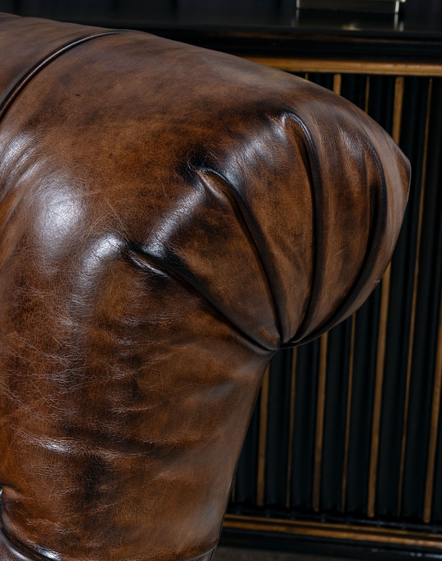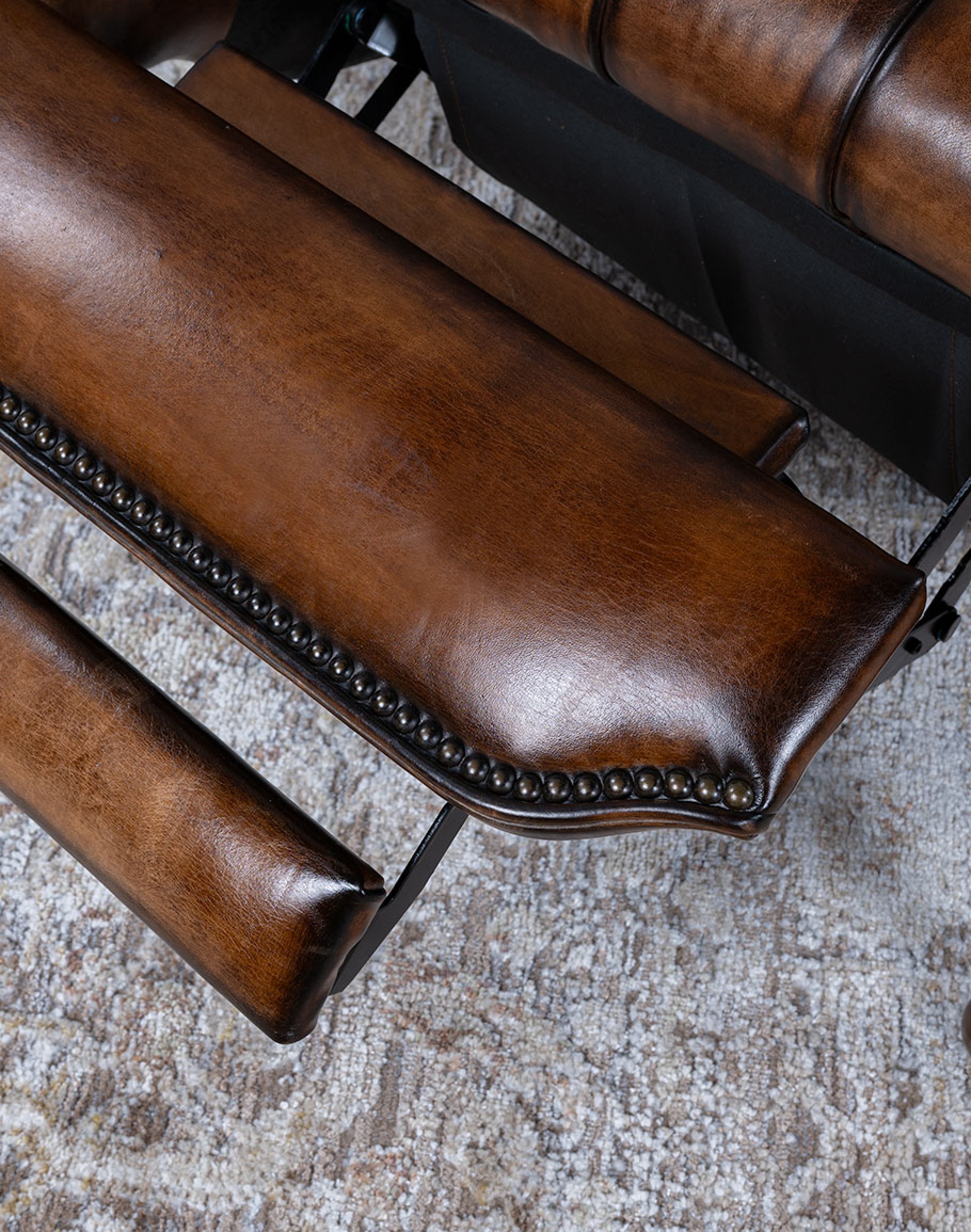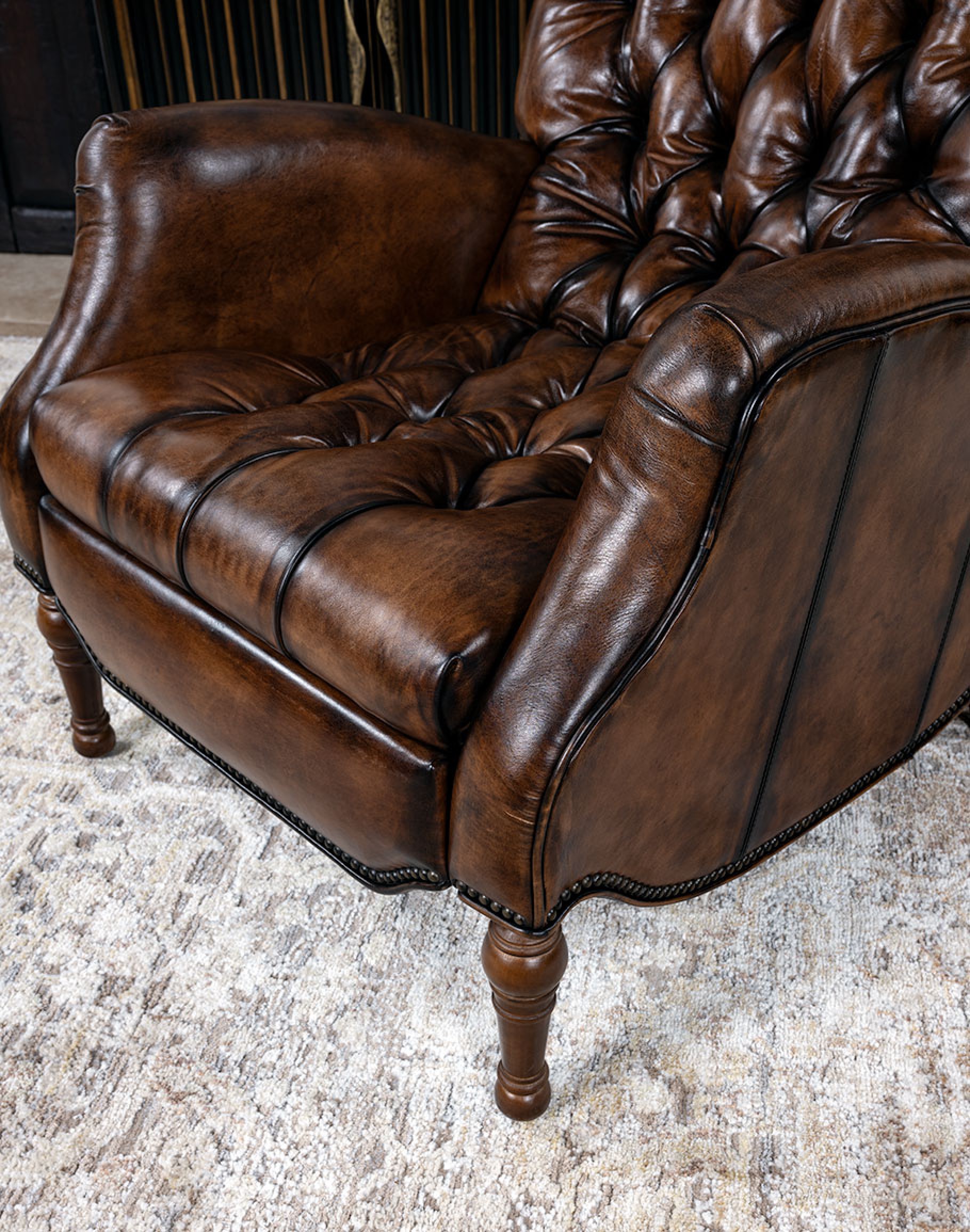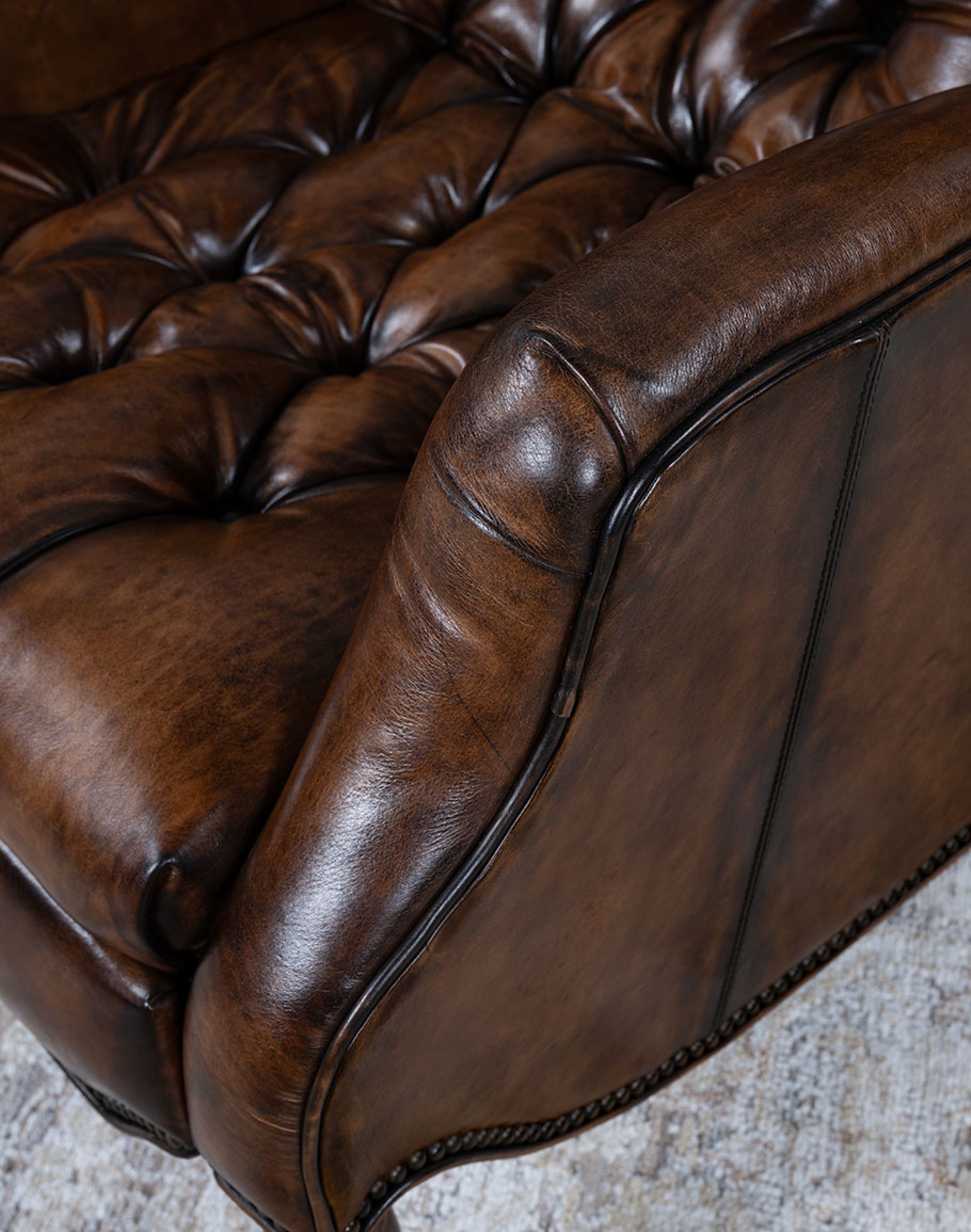 Every individual piece upholstered with Artisan Leather finishing methods is first beautifully built to the highest standards of quality. The leather is then hand-colored and aged to bespeak the loving touch of time, providing a quality antique appearance to a beautiful new piece of quality leather furniture. Every chair, sofa, or bench has its very own unique identity only these hand-crafted methods can provide, reflecting the presence of a time honored past.