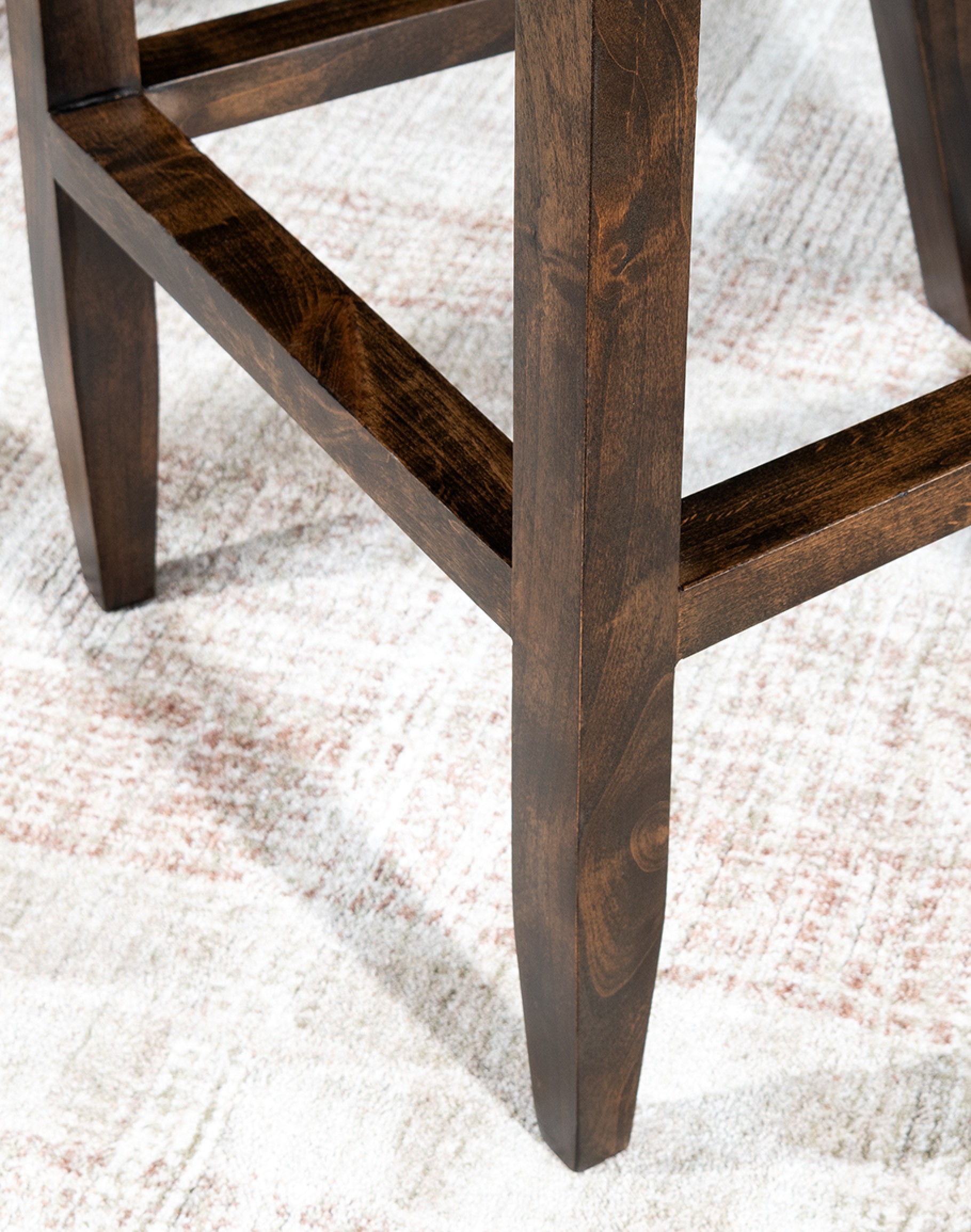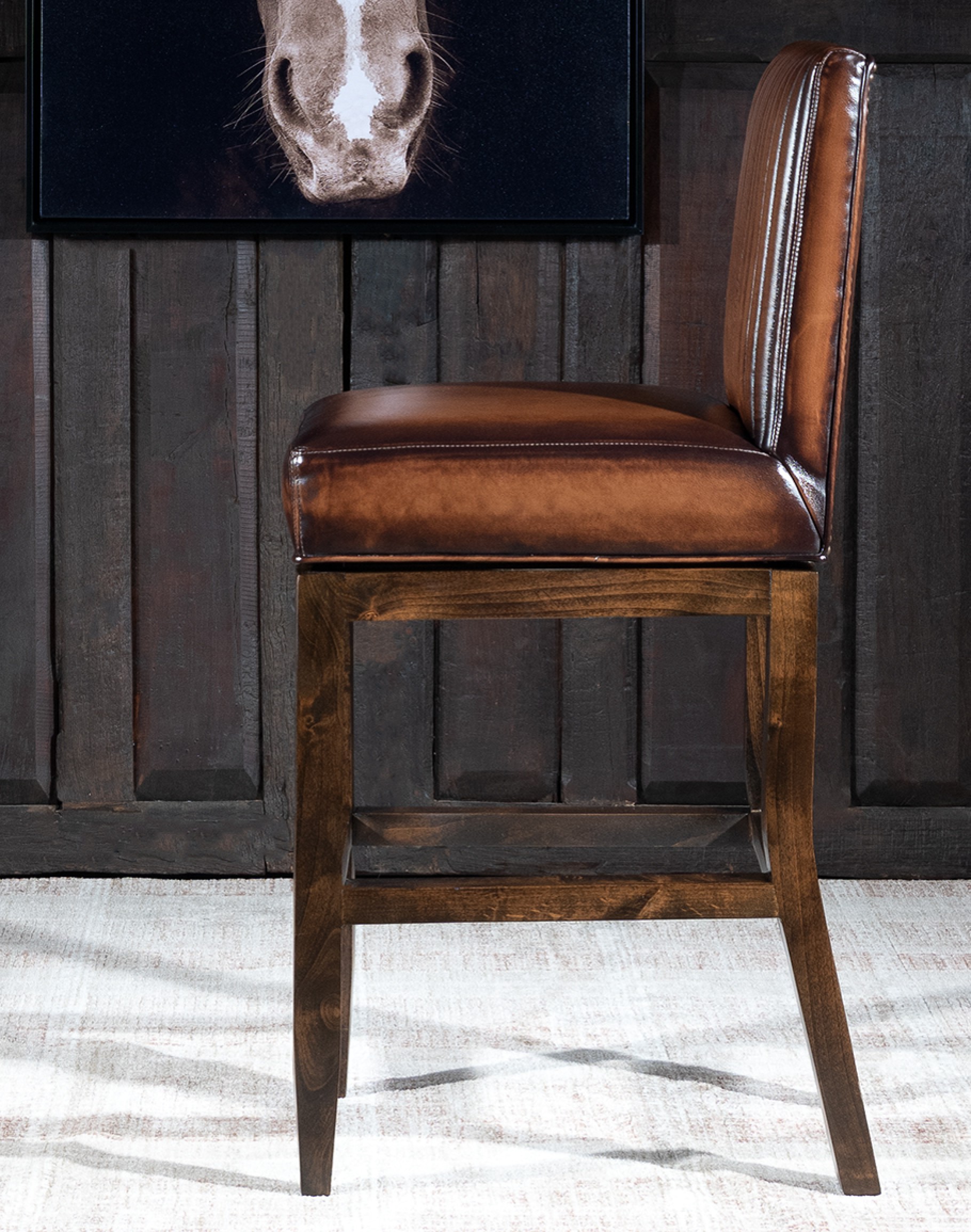 Introducing the Sloane Mocha Leather Barstool, a masterpiece of American craftsmanship. This exquisite barstool is meticulously constructed from Solid American Alderwood, ensuring durability with its doweled, glued, and screwed joints. The seat and back are crafted with high-density foam cushion cores, providing exceptional comfort. The Sloane Mocha Leather Barstool exudes timeless elegance and is upholstered in top-grain leather with hand-antiquing details. The stitched and padded channeled back adds an extra layer of sophistication, making it a perfect fit for any Refined Ranch décor. Elevate your living space with this refined barstool, blending rustic charm with modern luxury. Discover the Sloane Mocha Leather Barstool and transform your home into a haven of style and comfort. At Adobe Interiors, we create the furniture, and you create the memories.