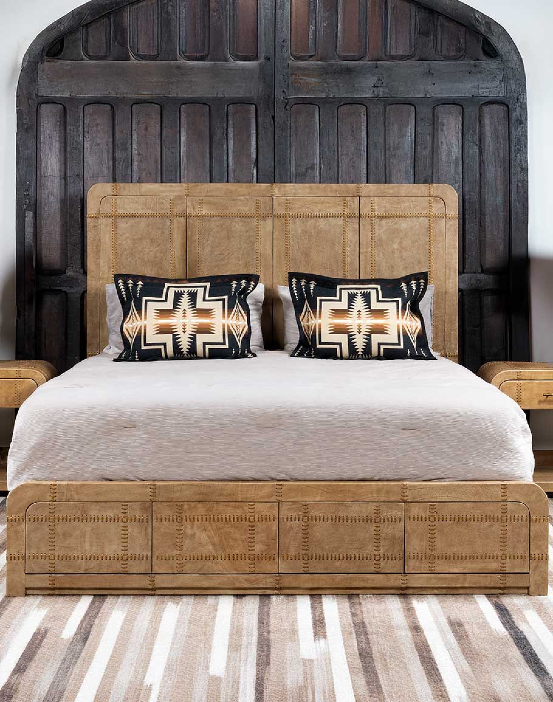 Bring home the ultimate in comfort, style, and durability with the Sonora Sand Leather Bed—a masterpiece that complements desert ranch, mountain, and eclectic ranch interiors alike. At Adobe Interiors, we create the furniture, and you create the memories.