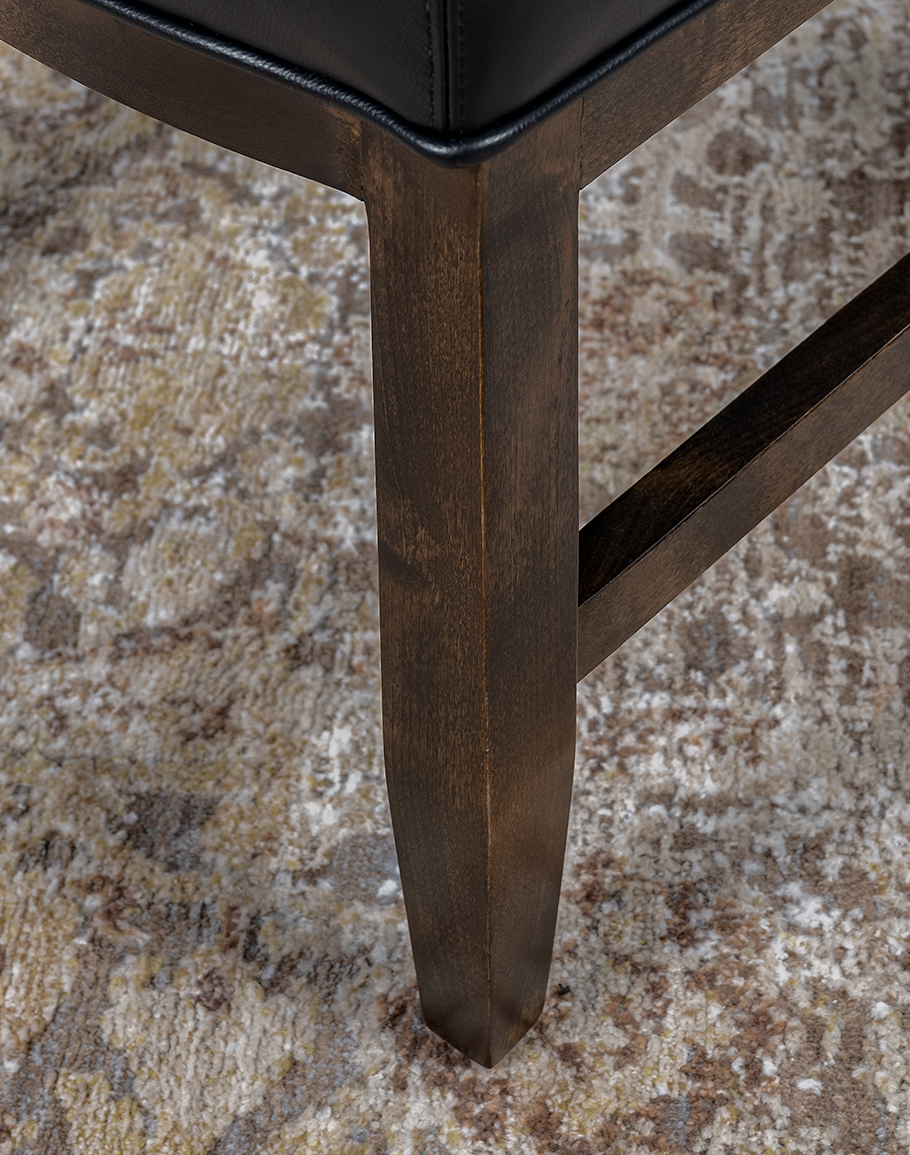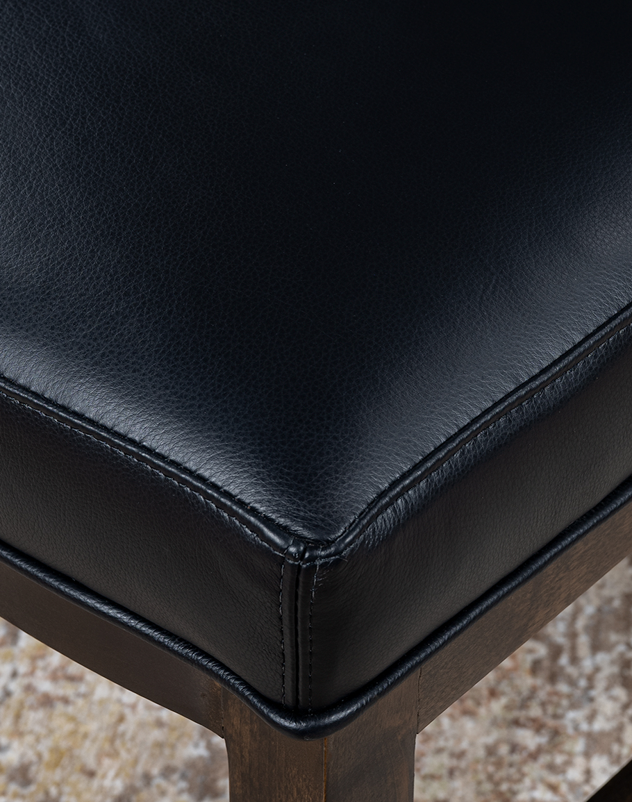 Introducing the Sundance Midnight Leather Dining Chair, a quintessential piece from Adobe Interiors' Classic Ranch Collection. Crafted with impeccable attention to detail, this chair embodies the finest American craftsmanship. The robust frame is constructed from solid American Alder Wood, featuring a rich black walnut finish that exudes sophistication and durability. Each joint is meticulously glued, screwed, and doweled, ensuring longevity and stability.