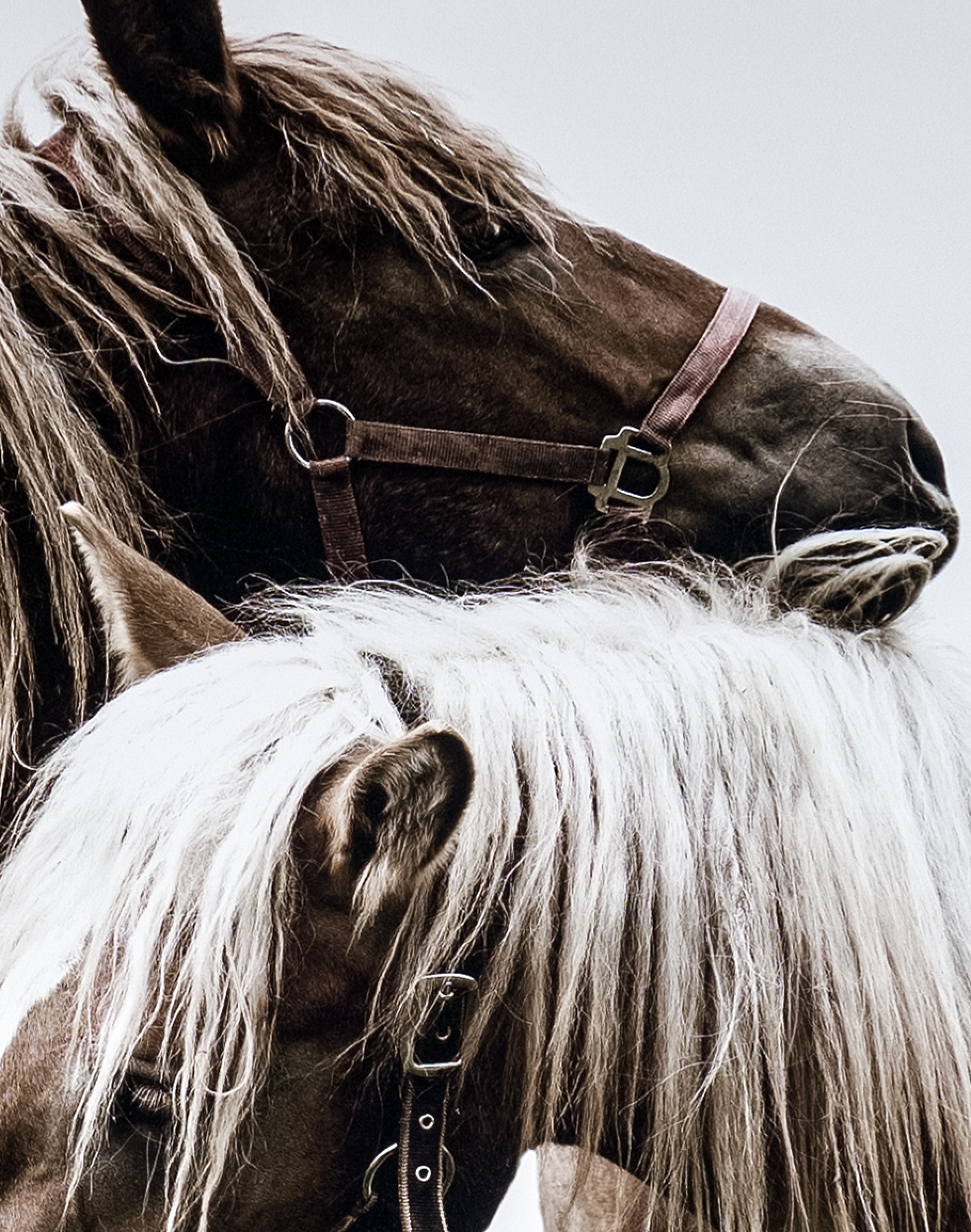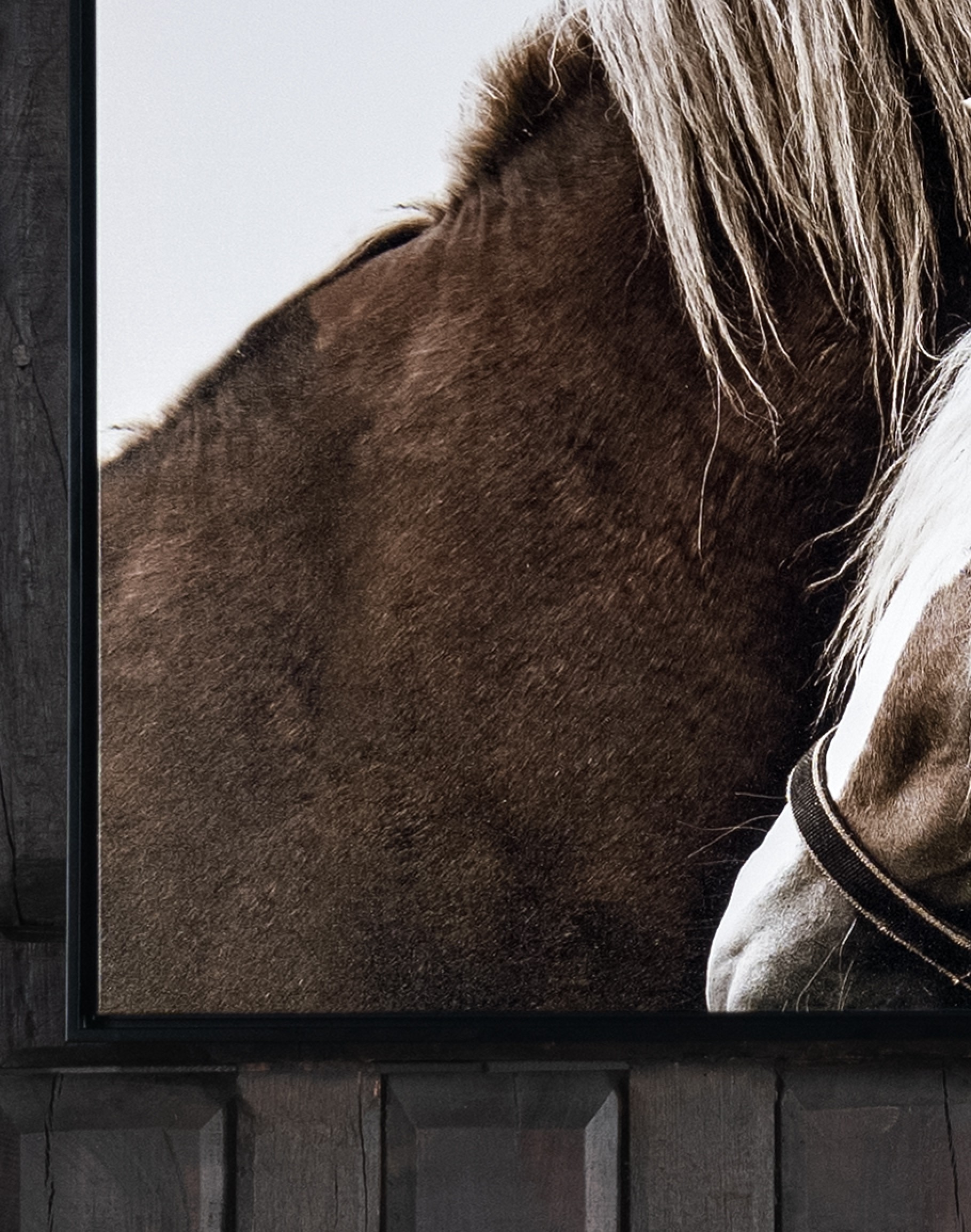 This striking art piece, "The Endearment," features an elegant representation of two horses in a tender embrace against a pristine white background. The horses are beautifully detailed, complete with bridles, showcasing a remarkable blend of realism and impressionism. This transitional-style artwork effortlessly harmonizes with diverse home decor styles, making it a versatile addition to any space. Its horizontal orientation perfectly lends itself to be the captivating focal point in a living room, bedroom, or office. Framed in matte black, "The Endearment" brings a touch of understated sophistication and deep emotional resonance to your interior design.