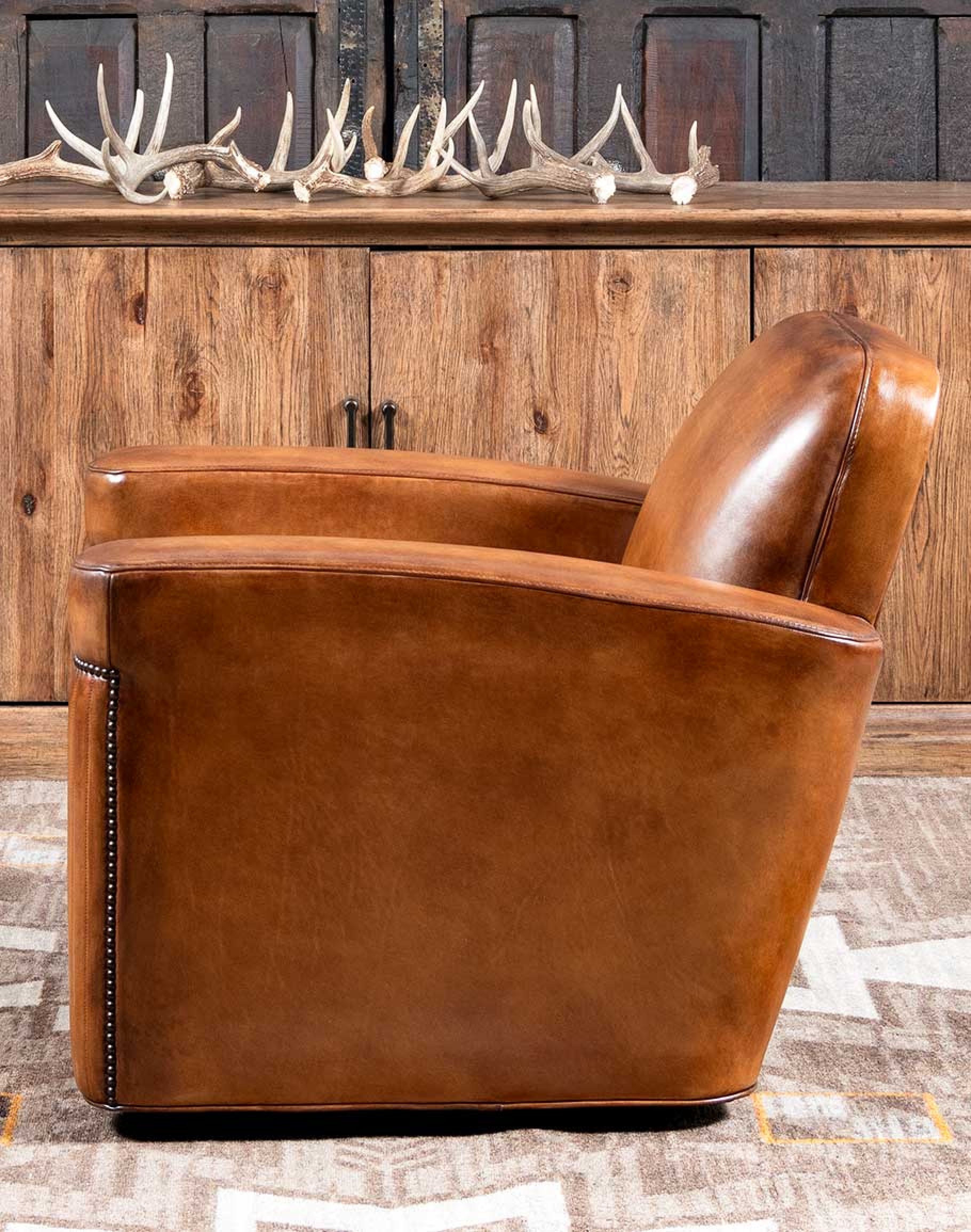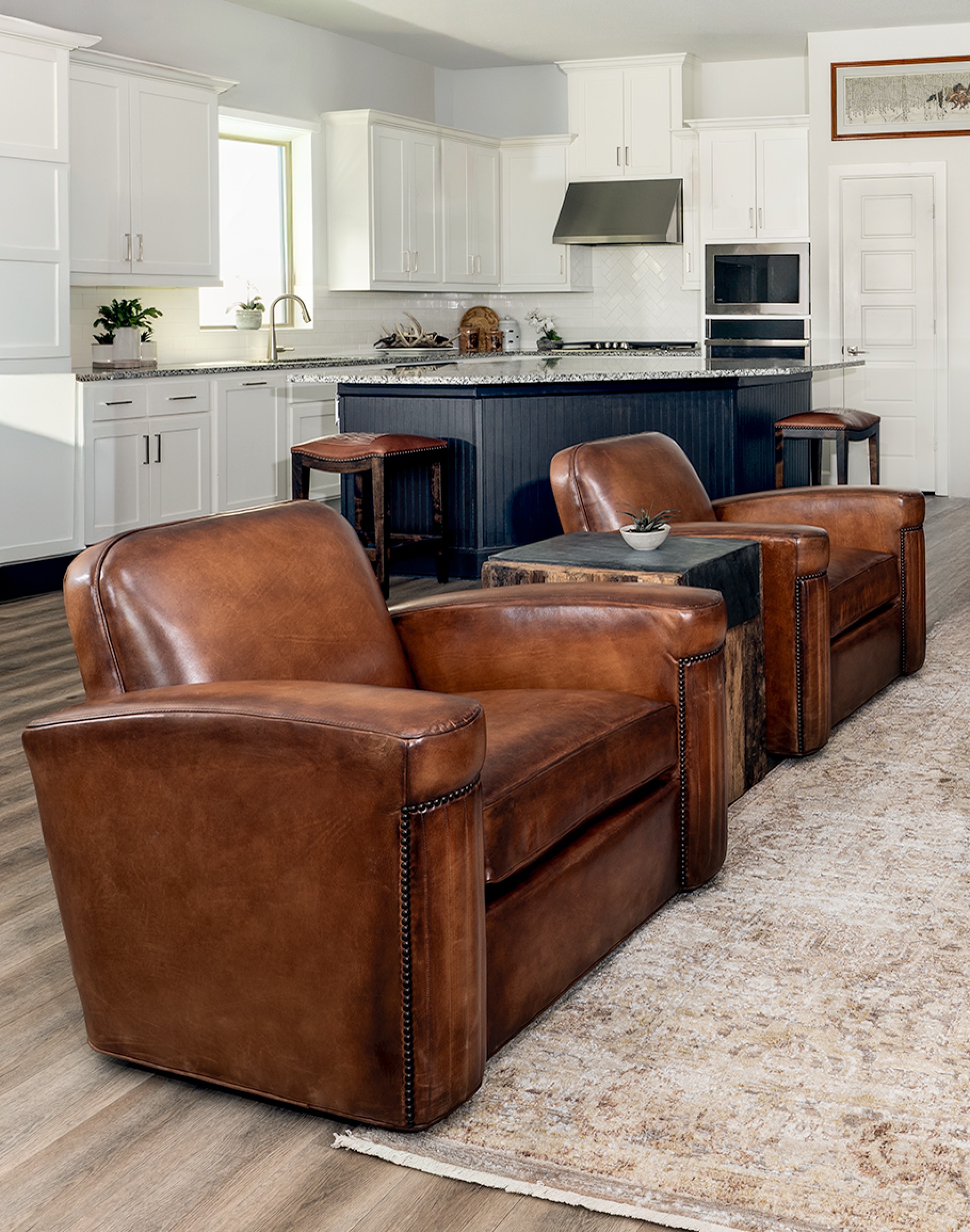 Whether you’re outfitting a sophisticated study, a cozy living room, or a refined mountain retreat, the Traeger Leather Swivel Chair fits seamlessly into a variety of décor styles. It’s a distinguished piece in Adobe Interiors' Refined Ranch, Desert Ranch, and Mountain Ranch collections, offering both aesthetic appeal and practical function in any setting. At Adobe Interiors, we create the furniture, and you create the memories.