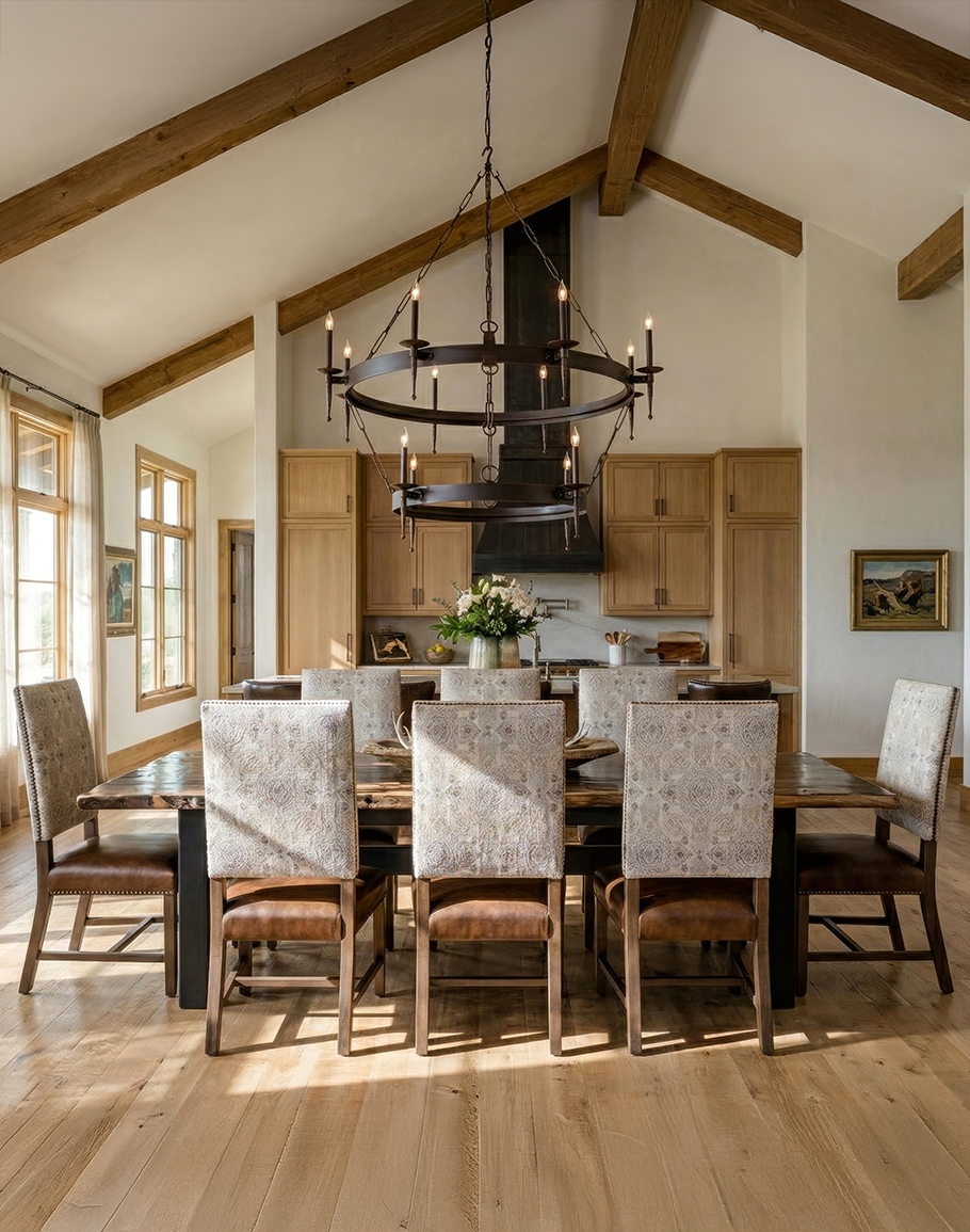 The Two Tier Iron Ring Chandelier is a bold, double‑ring statement piece crafted from hand‑forged iron. Two stacked wagon‑wheel silhouettes create a dramatic vertical presence, perfect for tall foyers, great rooms, and vaulted dining spaces. Slender candle sleeves rise from round metal bobeches on each ring, recalling traditional candelabra lighting while keeping the overall look streamlined and architectural for today’s interiors.