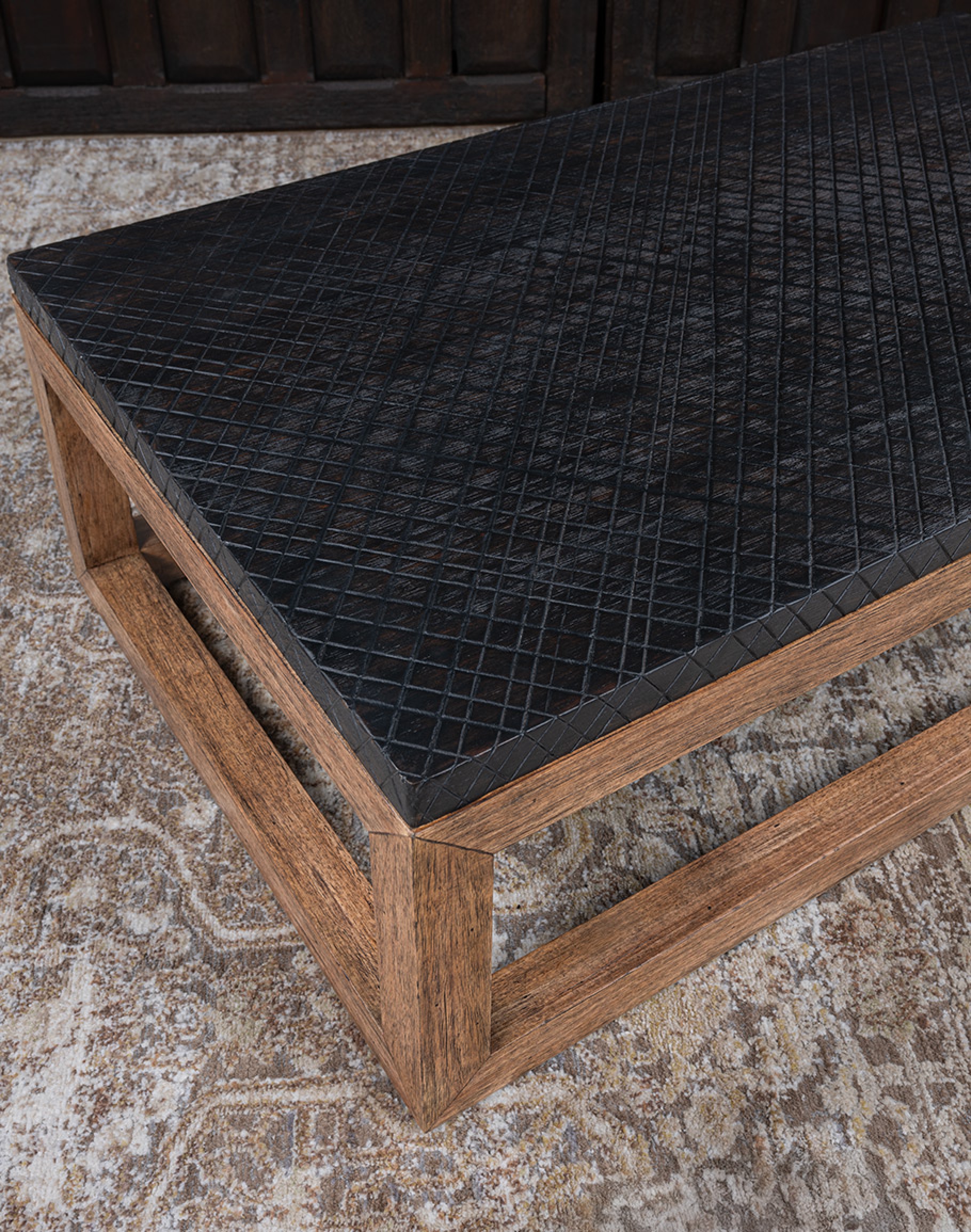 Elevate your living space with the TX Coffee Table, a bold statement piece that blends modern rustic style with everyday functionality. Designed in a clean rectangular shape,this coffee table pairs an architectural, open-frame silhouette with richly tactile finishes—perfect for creating a grounded, high-end look in living rooms, great rooms, and ranch-inspired interiors.
