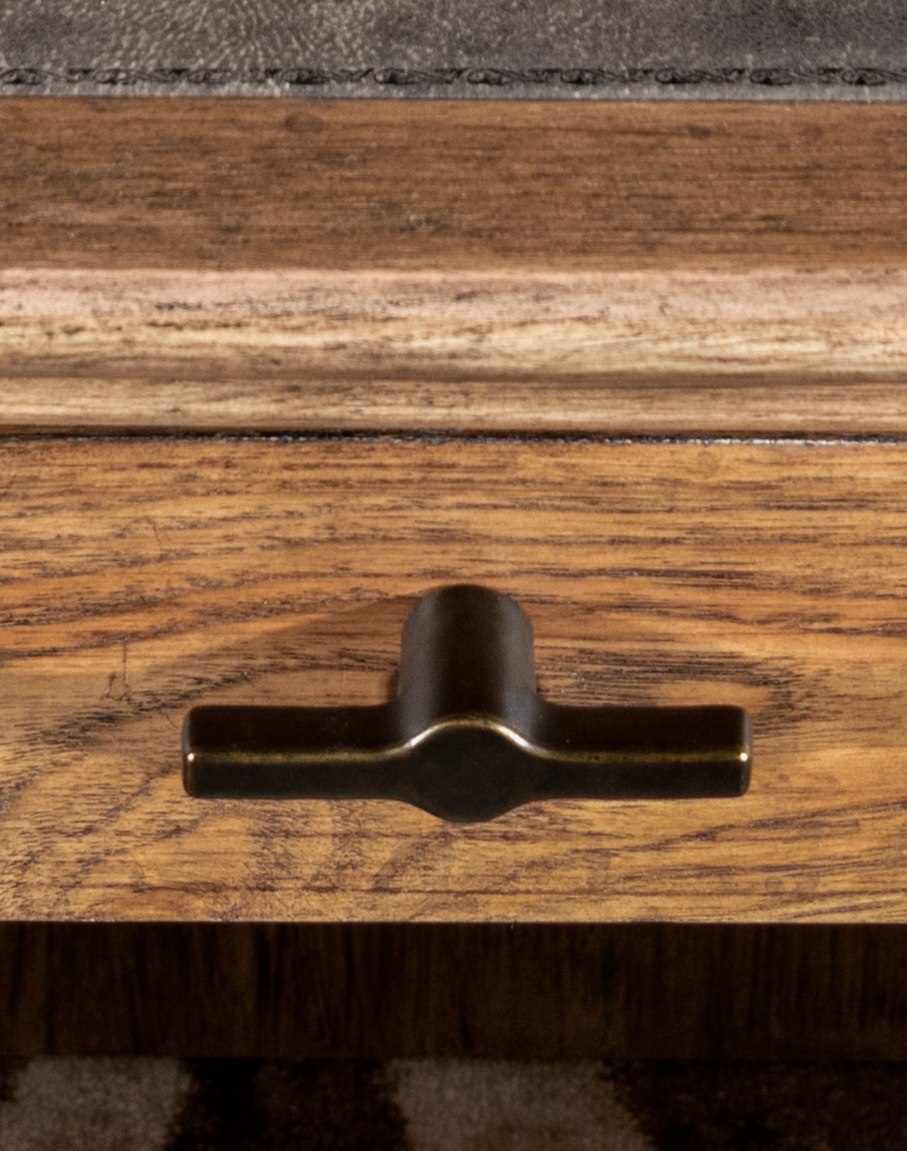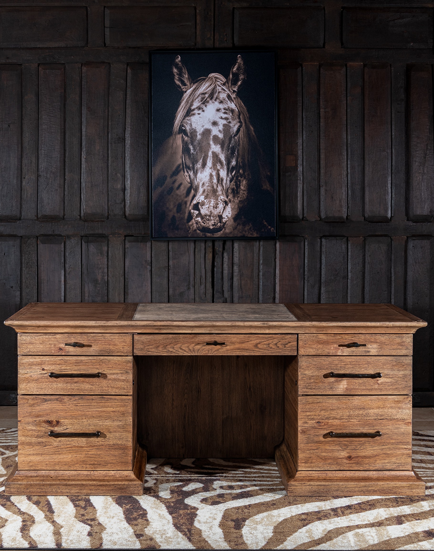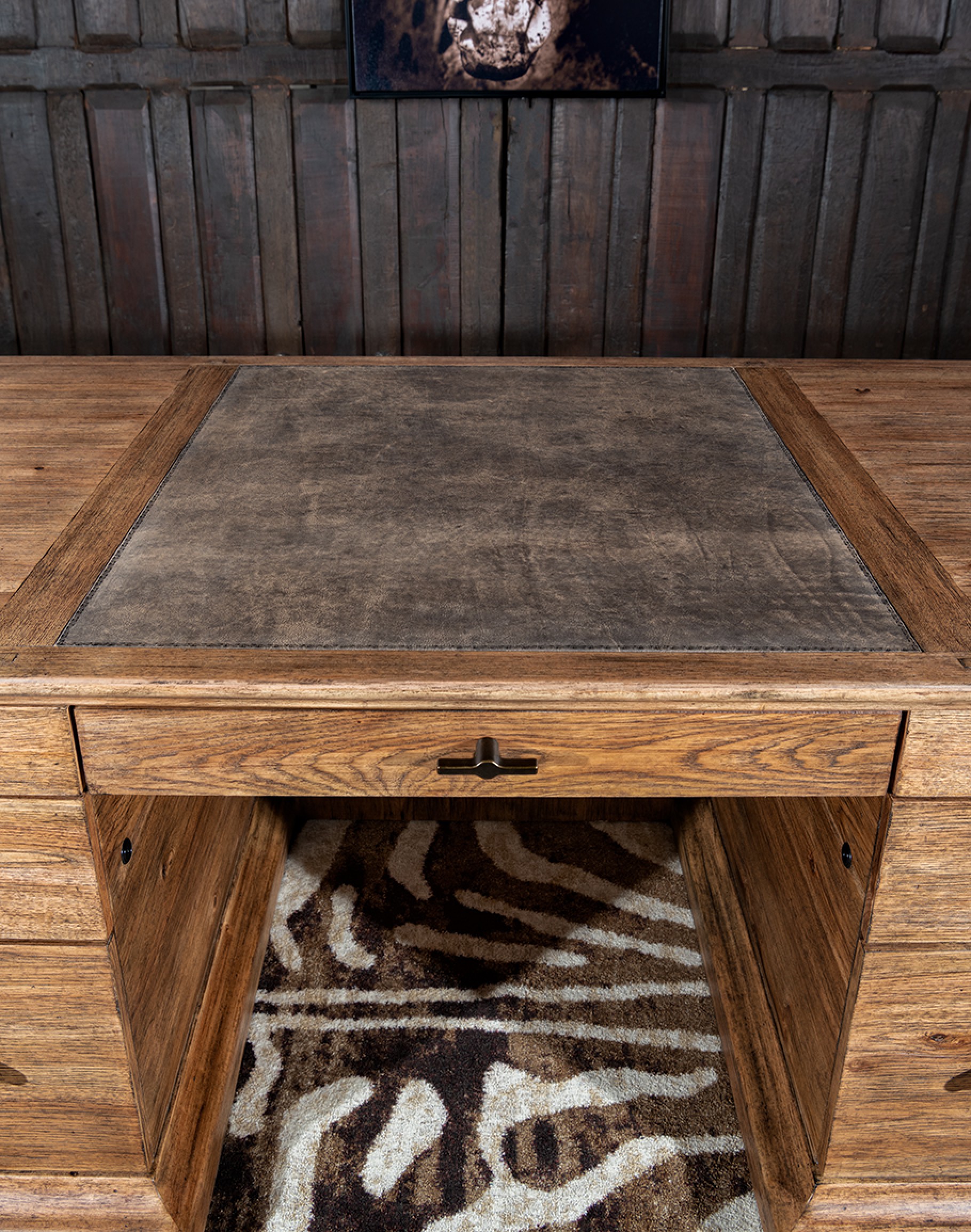 Immerse yourself in the spirit of the American wilderness with our magnificent TX Executive Desk. This rustic executive desk, made from Pecky Hickory Wood with a Vintage Natural finish, captures the allure of natural landscapes and wide-open spaces. Its solid wood edged top and top-grain-leather writing surface contribute to a work environment that is both inspiring and functional.