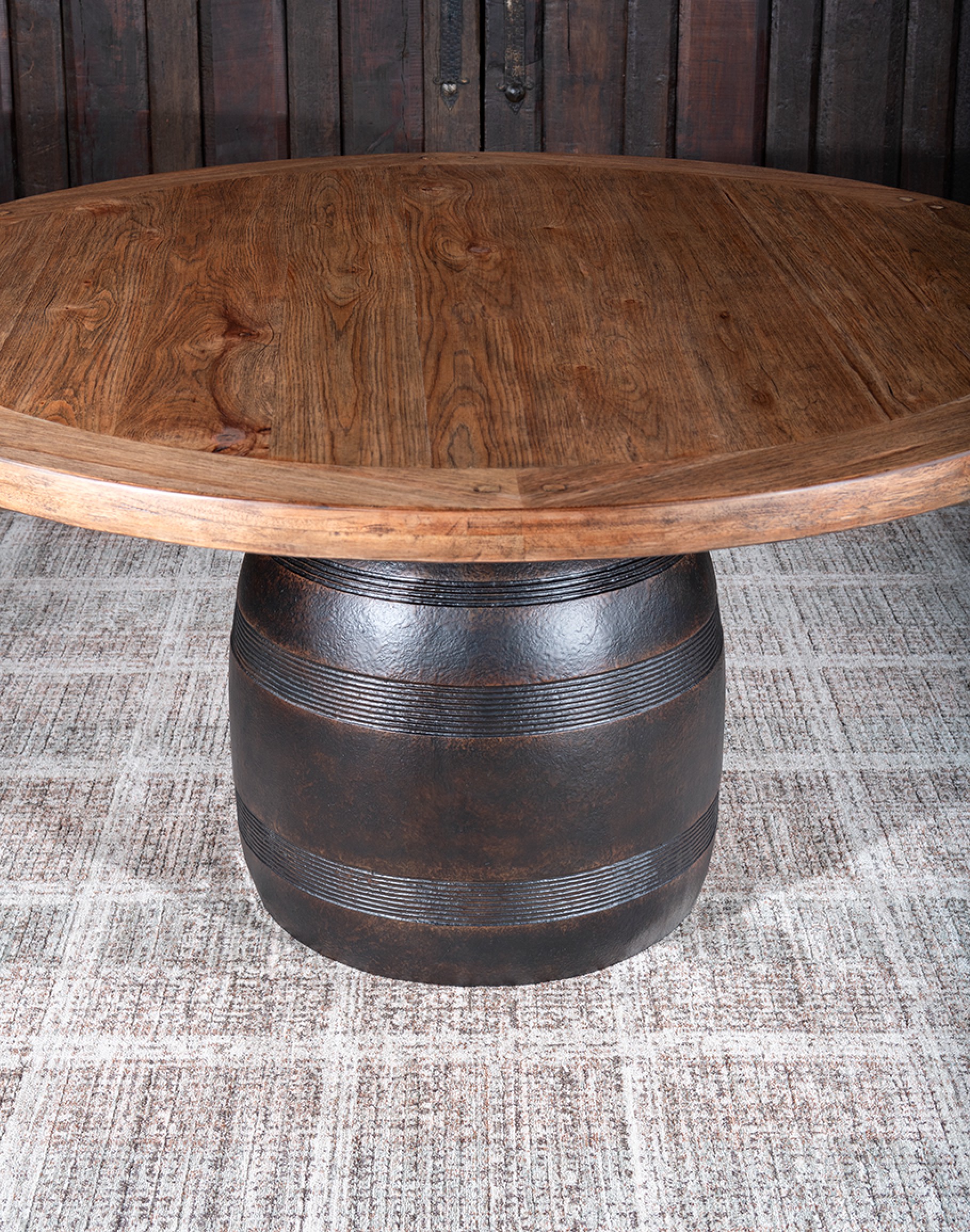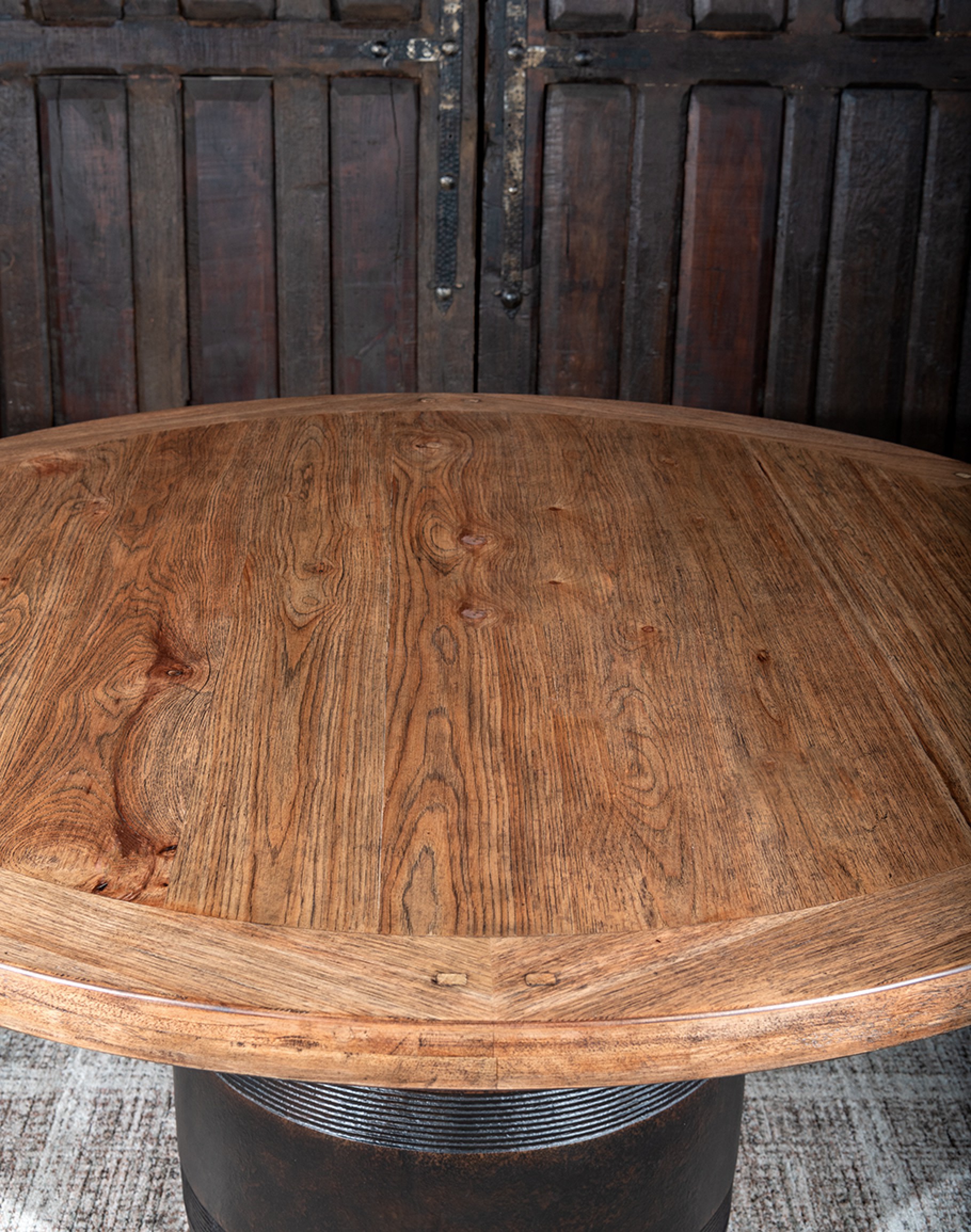 Introducing the TX Round Dining Table, a masterful blend of rustic charm and contemporary design, perfect for elevating your dining space.