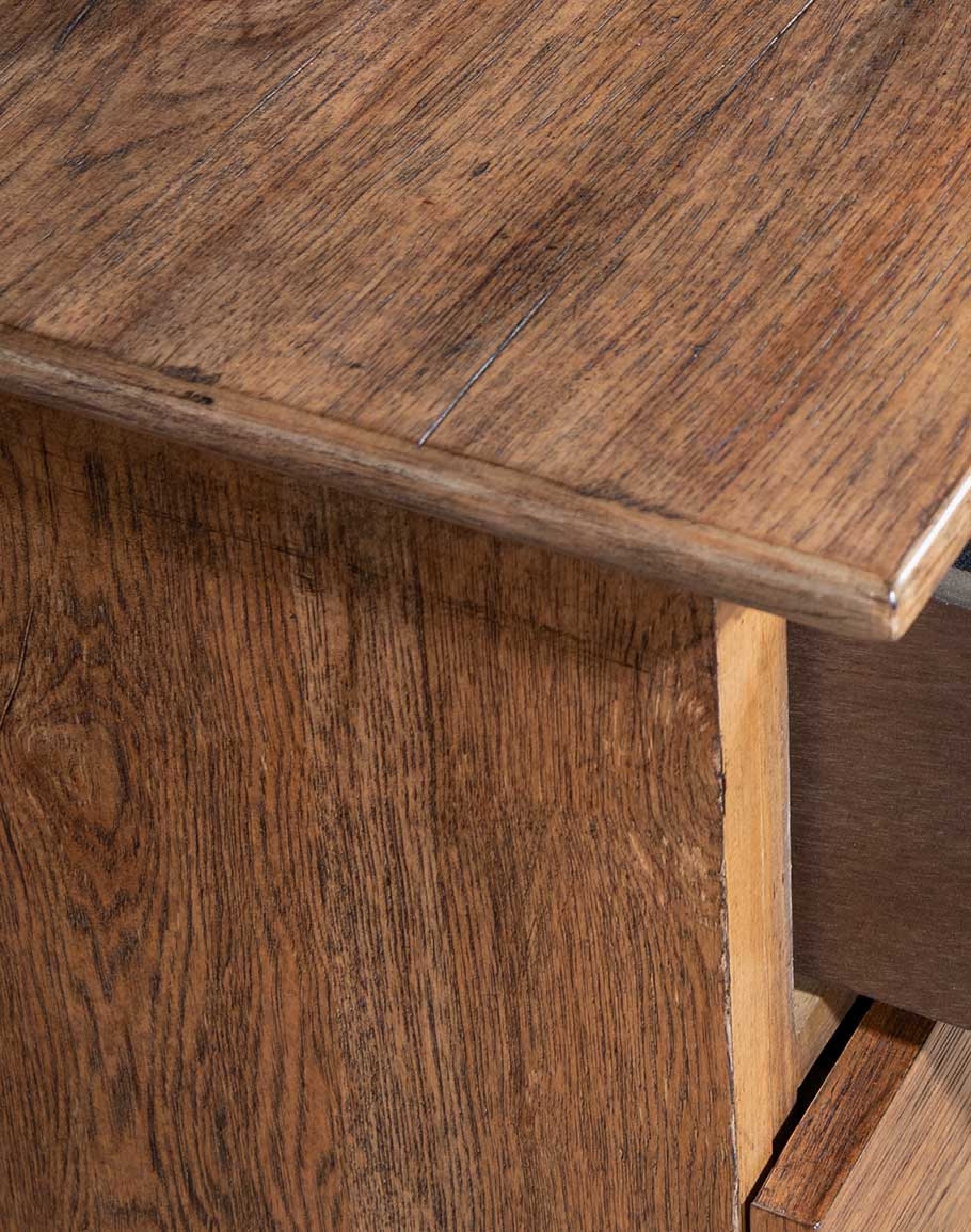 Elevate your bedroom with the TX Nightstand by Adobe Interiors, a stunning blend of post-and-beam craftsmanship and modern functionality. Expertly crafted from premium Pecky Hickory Veneers with a solid-wood-edged top, this nightstand features a straightforward silhouette that exudes rustic charm. The warm Vintage Natural finish is enhanced by dark brushed bronze bar pulls, creating a timeless yet contemporary aesthetic.