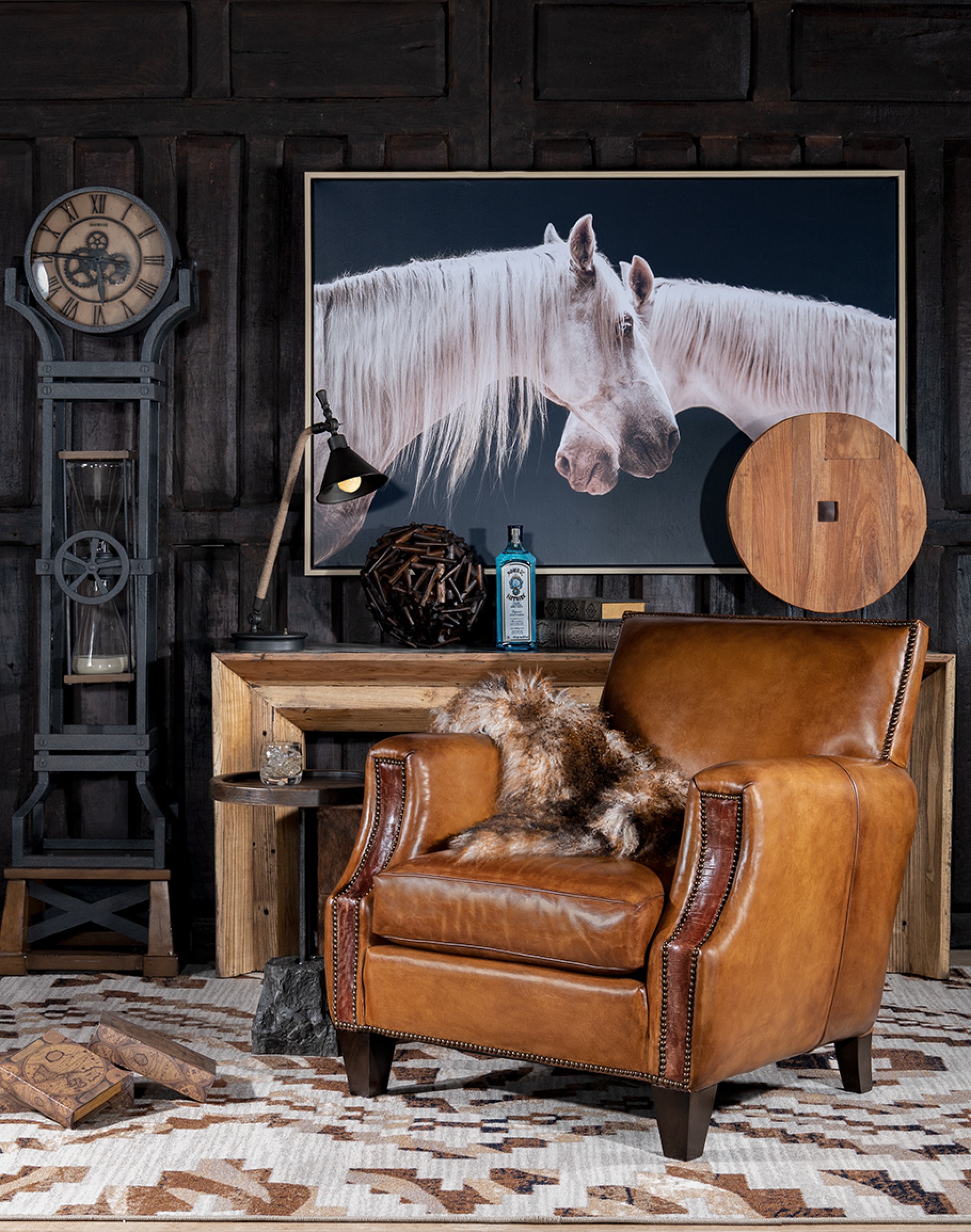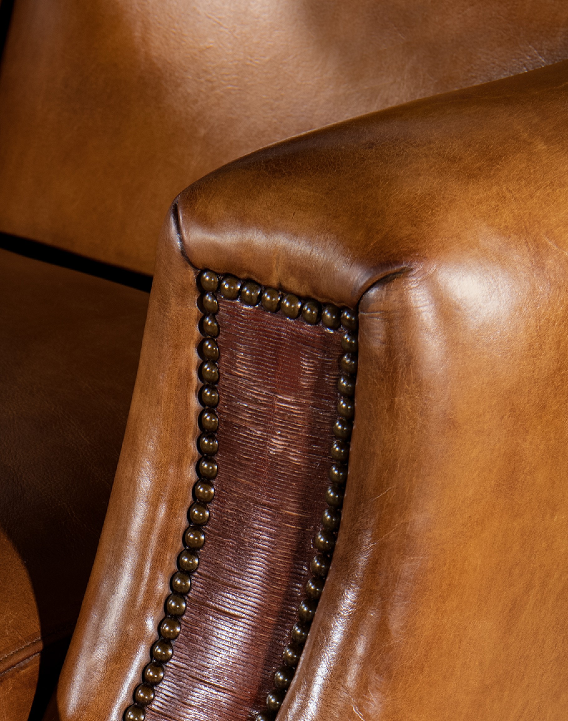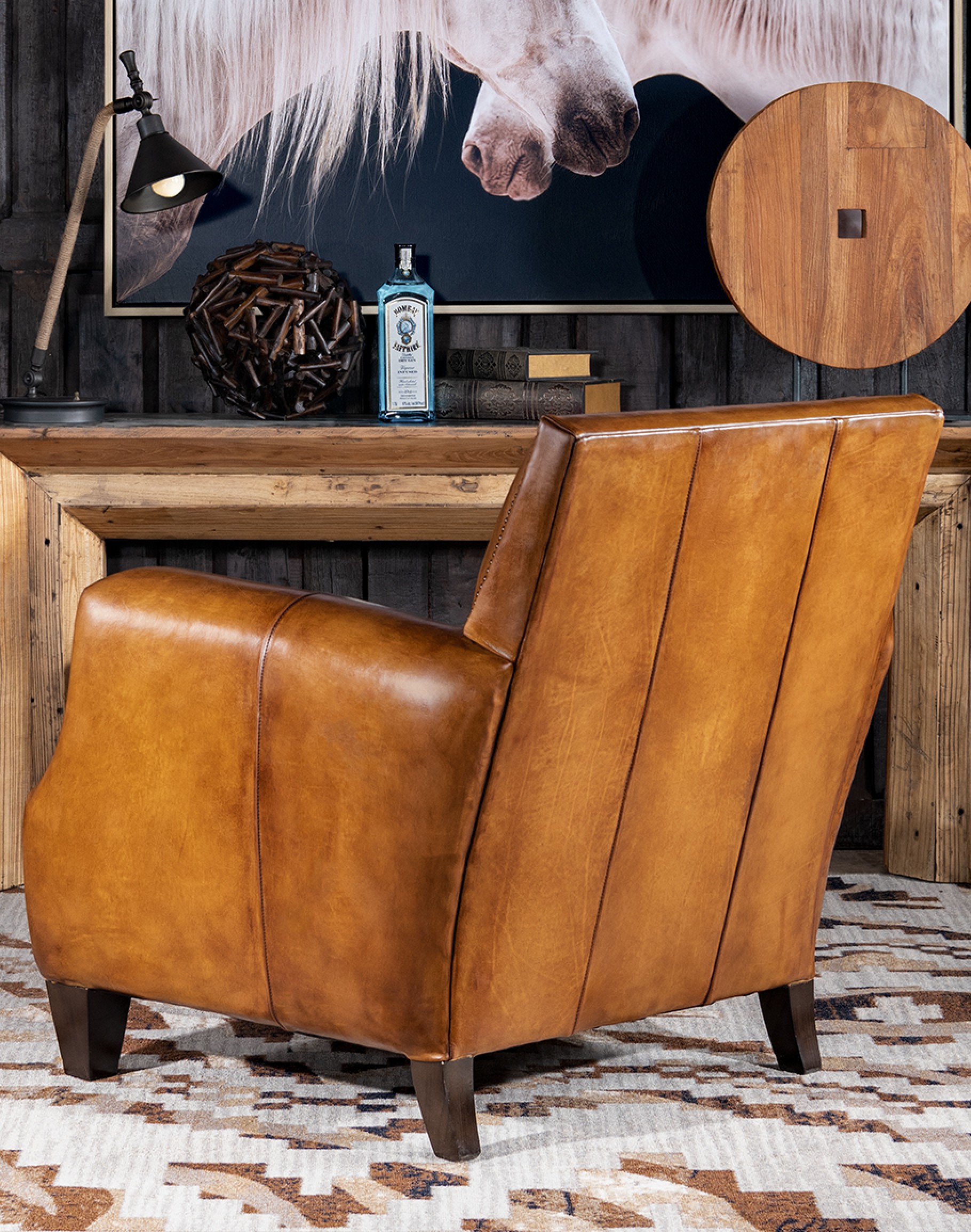 Introducing the Vanguard Club Chair—the ultimate blend of American craftsmanship and modern rustic style. Handcrafted in the USA with meticulous attention to detail, this chair boasts an 8-way hand-tied construction for unmatched durability and support. Made from the finest full-grain leather with hand-burnishing details, the luxurious leather exudes a timeless elegance that will elevate any Classic Ranch or Refined Ranch living space. The arm panels feature hand-sliced thick saddle leather for added texture and visual interest. Designed with comfort and style, the Vanguard Club Chair features a tight seat back and a spring-down seat cushion for optimal relaxation. Whether you're settling in for a cozy night or entertaining guests, this chair is the perfect addition to your home. Experience the unparalleled quality and sophistication of the Vanguard Club Chair - a true American masterpiece —an heirloom in the making. At Adobe Interiors, we create the furniture, and you create the memories.