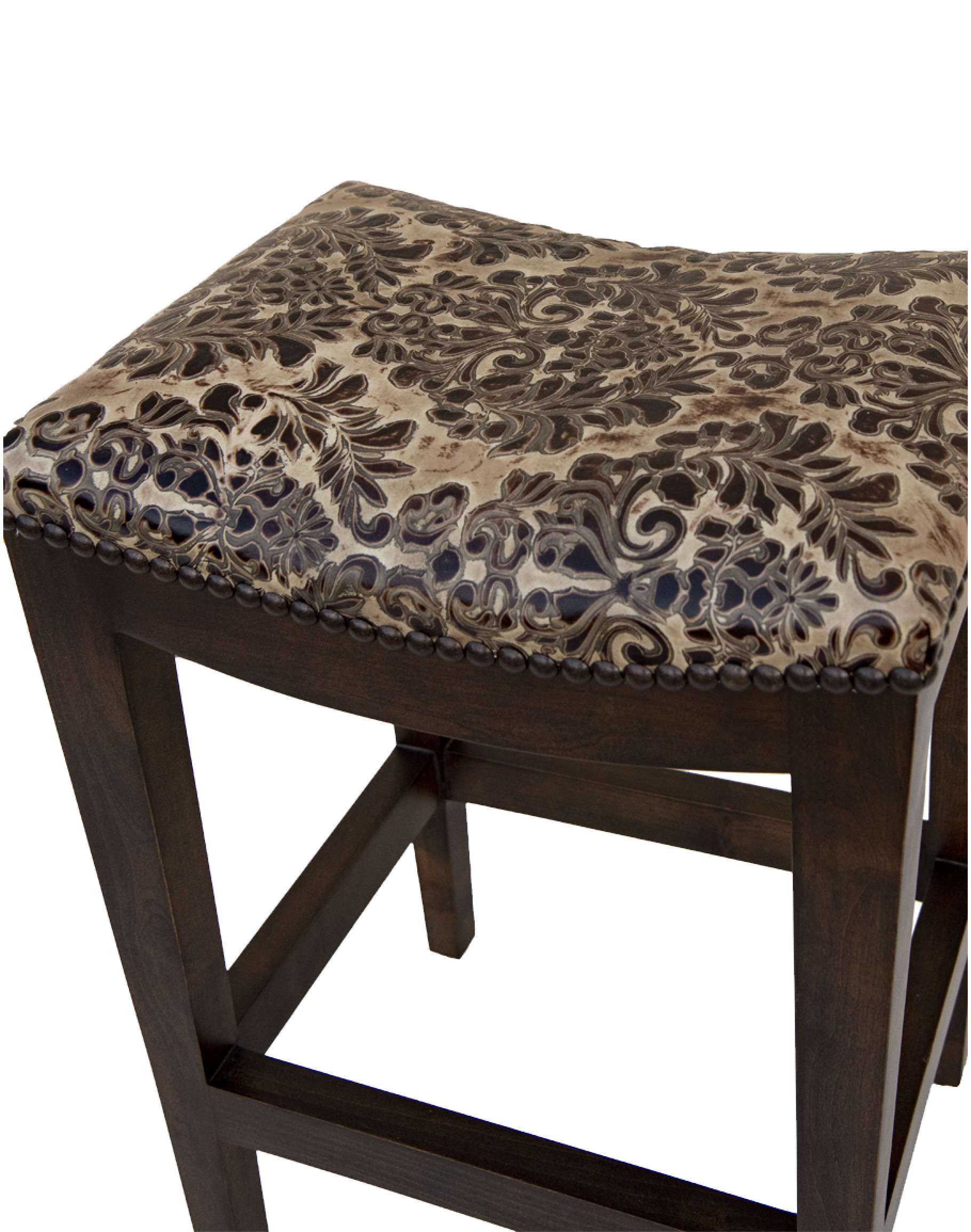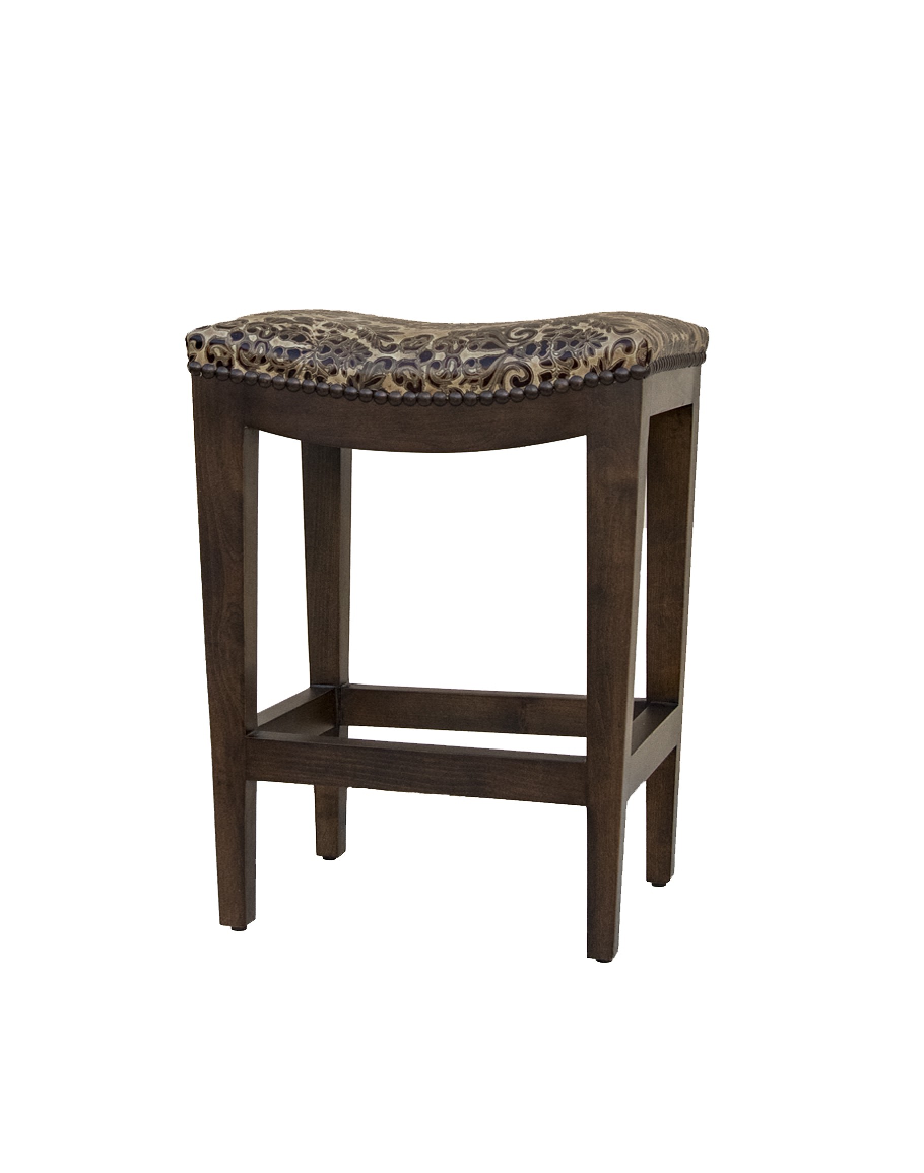 Add a touch of rustic charm and timeless beauty to your home with our Verona Stone Saddle Stool. Cleaned-lined and rustic appeal give this stool the perfect balance to be pulled up to kitchen islands, breakfast bars, and pub tables. This saddle stool is available in both bar and counter height, meaning you can use it to elevate any space! 100% top grain embossed leather features a contrasting colored design that encompasses a premium high-density foam cushion, complimented by a row of consecutively placed brass nail heads, while a solid Knotty Alder hardwood frame features a foot rest below for comfort and support. Additionally, the backless saddle seat easily conceals itself beneath counters and bar tops to save space. If your bar or kitchen area is in need of a superior statement piece guaranteed to bring comfort and style, look no further than the luxurious Verona Stone Saddle Stool. 100% Texas Made!