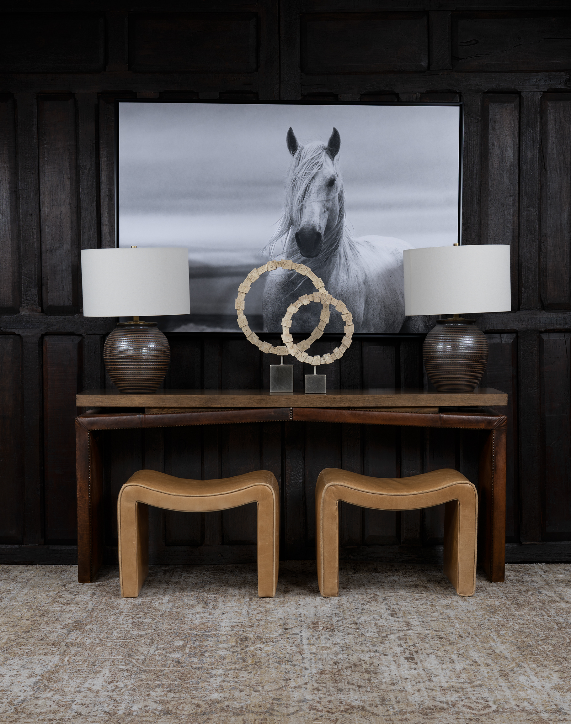 Perfect as a footrest, additional seating, or a layered accent beneath a console, the West Palomino Foot Stool integrates effortlessly into Ranch, Western, Mountain, and Contemporary interiors. It brings warmth, texture, and sculptural interest to any space with quiet confidence.