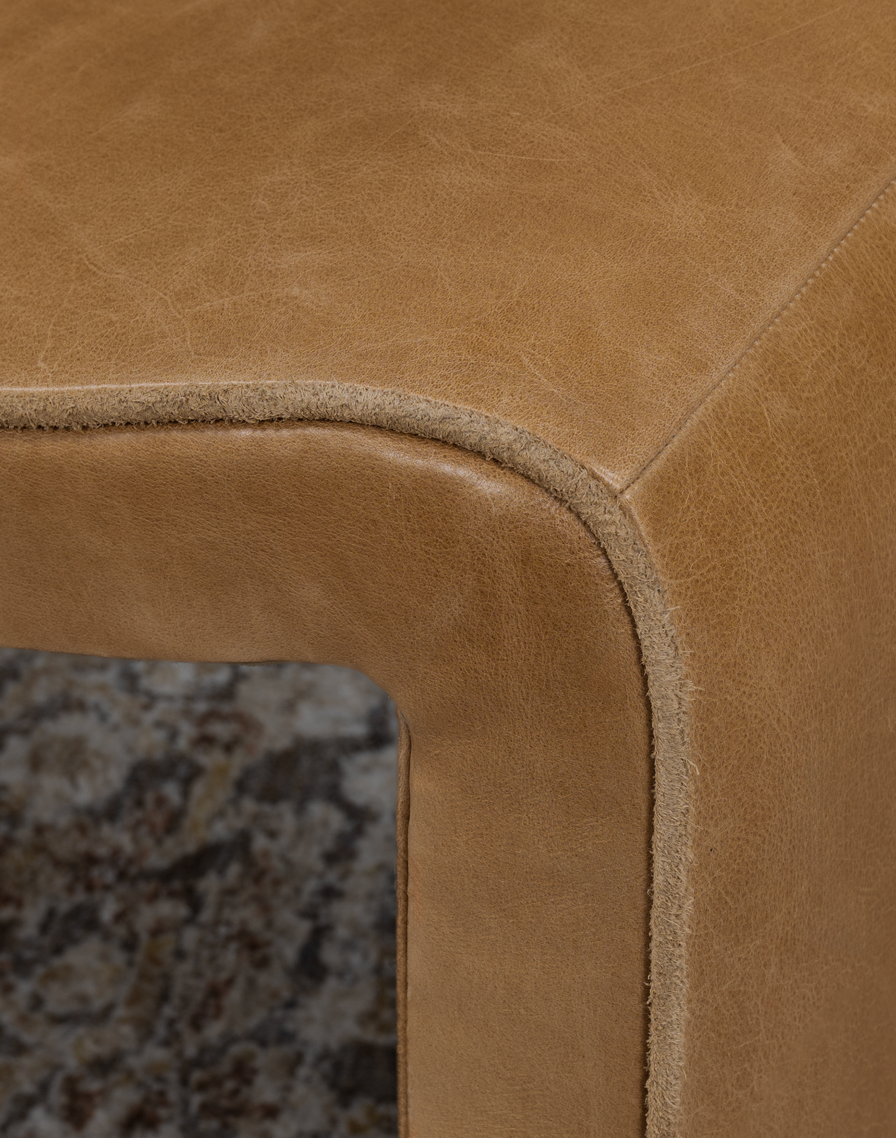 Upholstered in rich palomino full-grain leather, the color presents a warm, golden saddle tone with natural highs and lows throughout the hide. Subtle variations, soft distressing, and organic markings enhance the depth and authenticity of the leather, while the matte finish keeps the look sophisticated and understated. Over time, the leather will continue to develop a unique patina, further elevating its character.