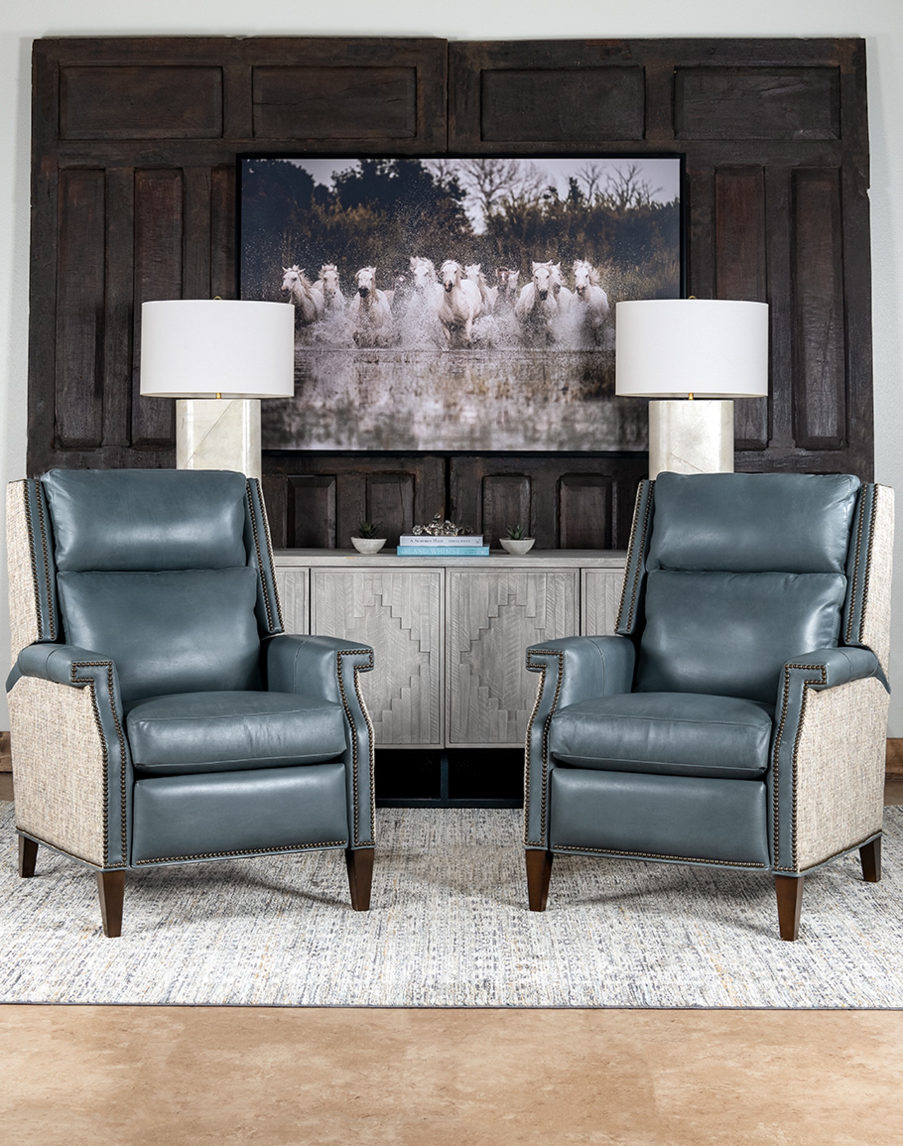Designed for ultimate relaxation, the Wylie Sky Leather Recliner is a testament to superior American craftsmanship. Its timeless design and unparalleled comfort make it a standout addition to any living space. At Adobe Interiors, we create the furniture, and you create the memories.